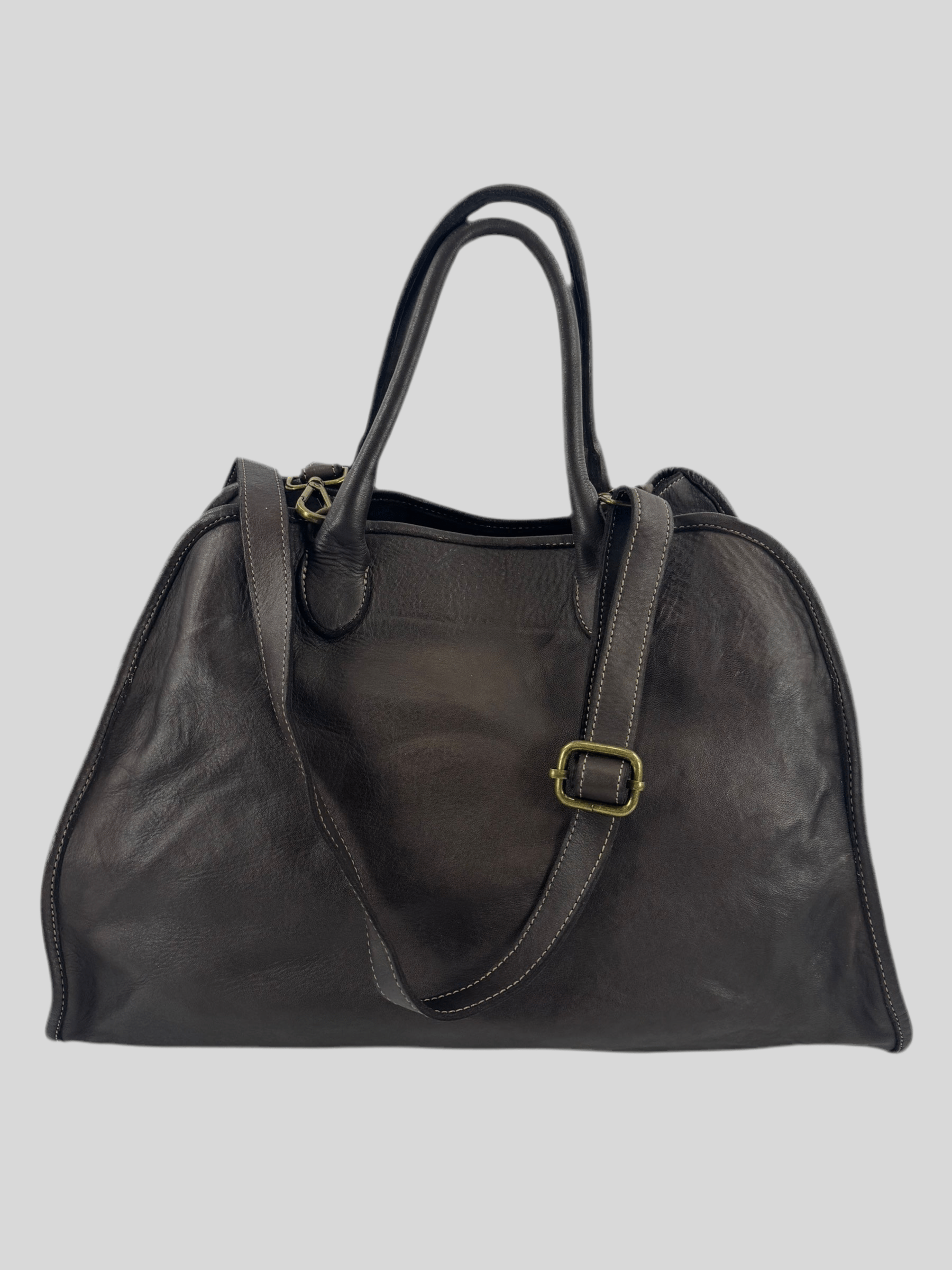 Bauletto in pelle effetto vintage, linee contemporanee, pellami di alta qualità e lavorazione artigianale per quetsa borsa, chiusura con zip e interni rivestiti ed accessoriati, capiente e leggera, si porta a mano, al braccio o a spalla grazie alla tracolla .