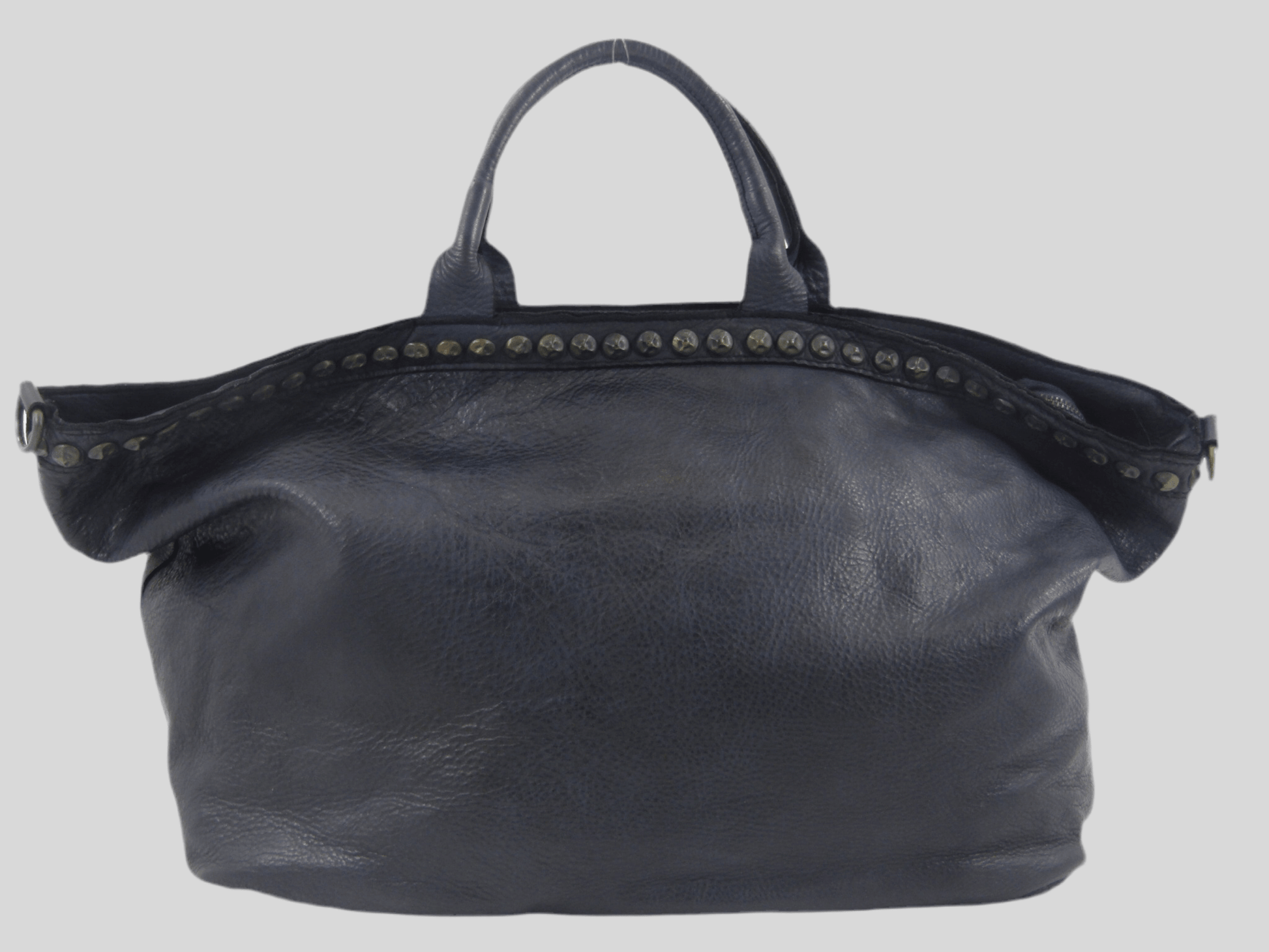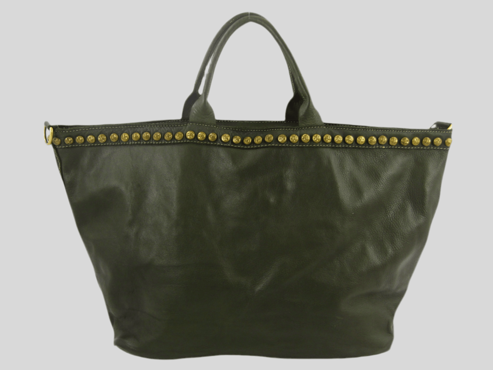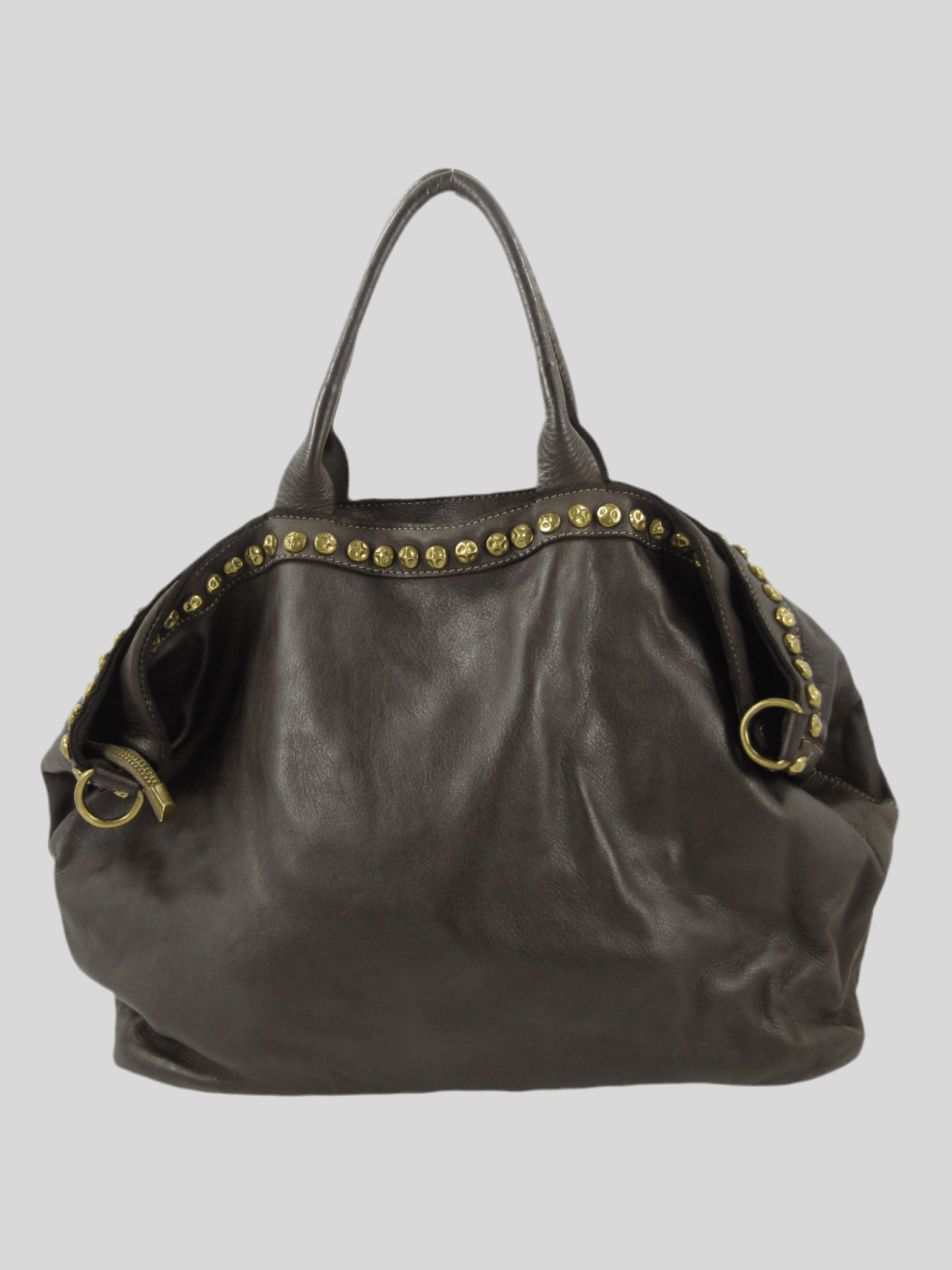 Borsa Bauletto in vacchetta tinta in capo, morbida, grande e pratica, decorata con borchie, costruita in maniera artigianale con pellami di alta qualità, morbida al tatto e calda nei colori, comoda a mano e con la tracolla anche a spalla, interno rivestito ed accessoriato
