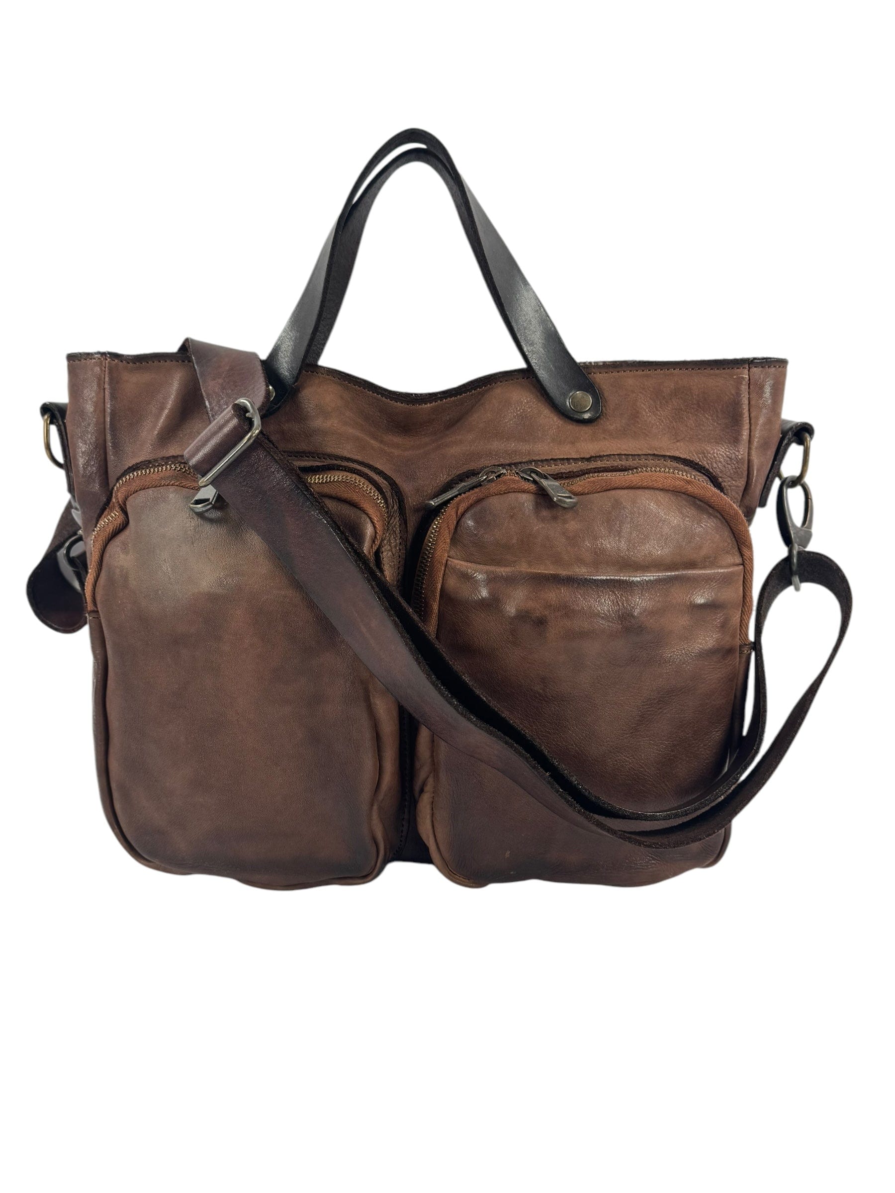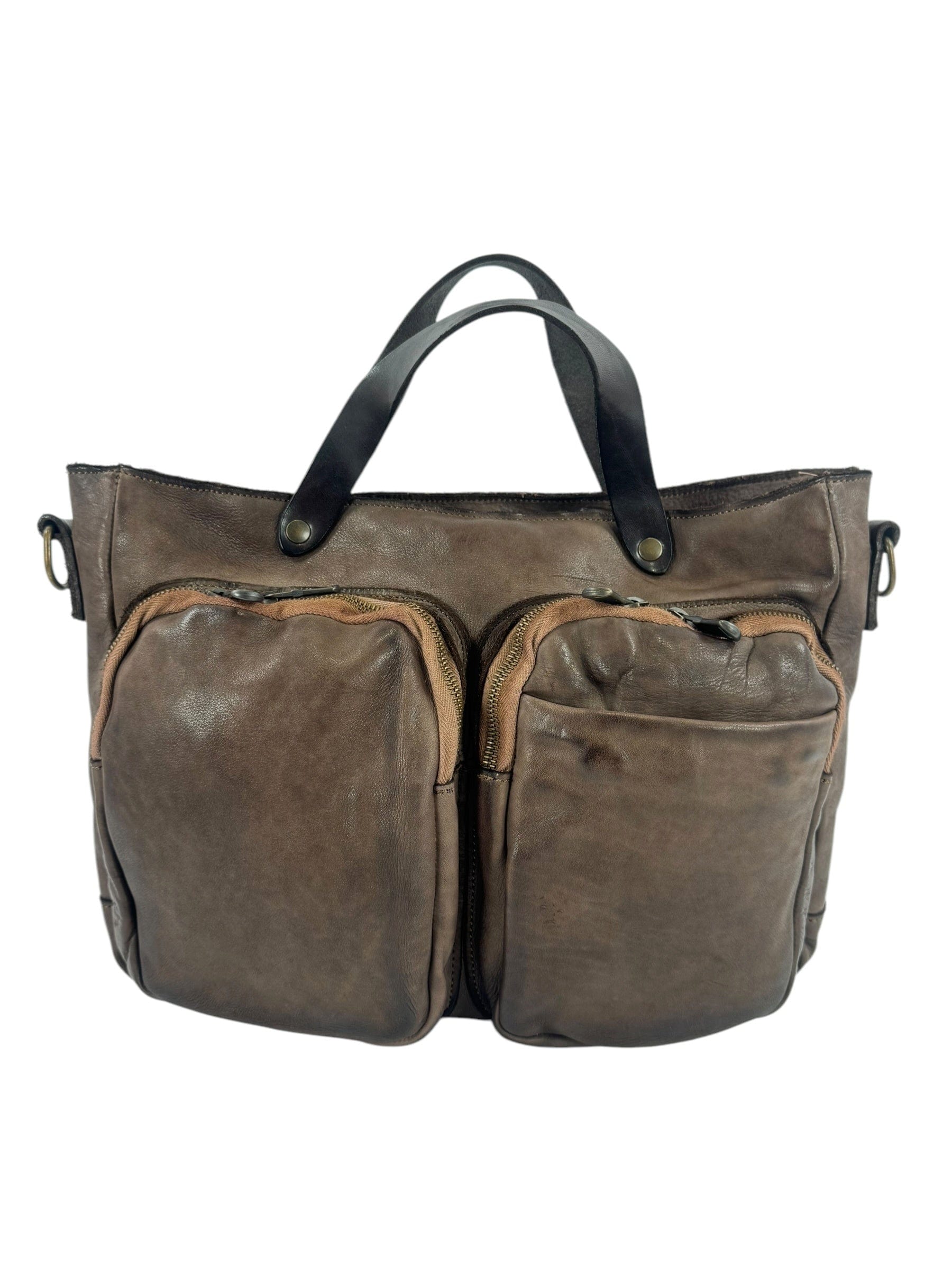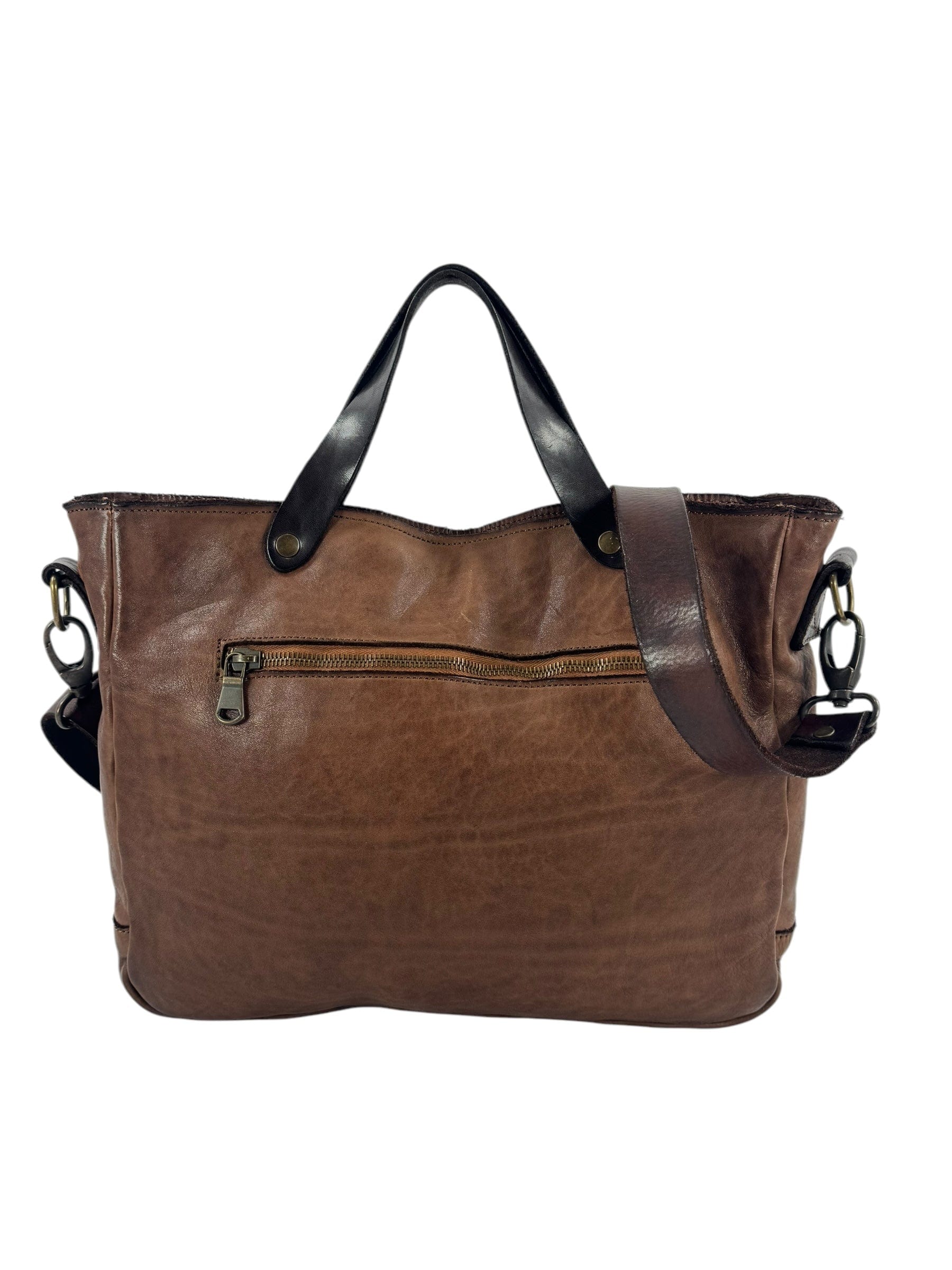 Borsa in pelle e cuoio tinta in capo, linee uniche per pellami alttrettanto preziosi, costruita in maniera artigianale con pellami di alta qualità in Toscana