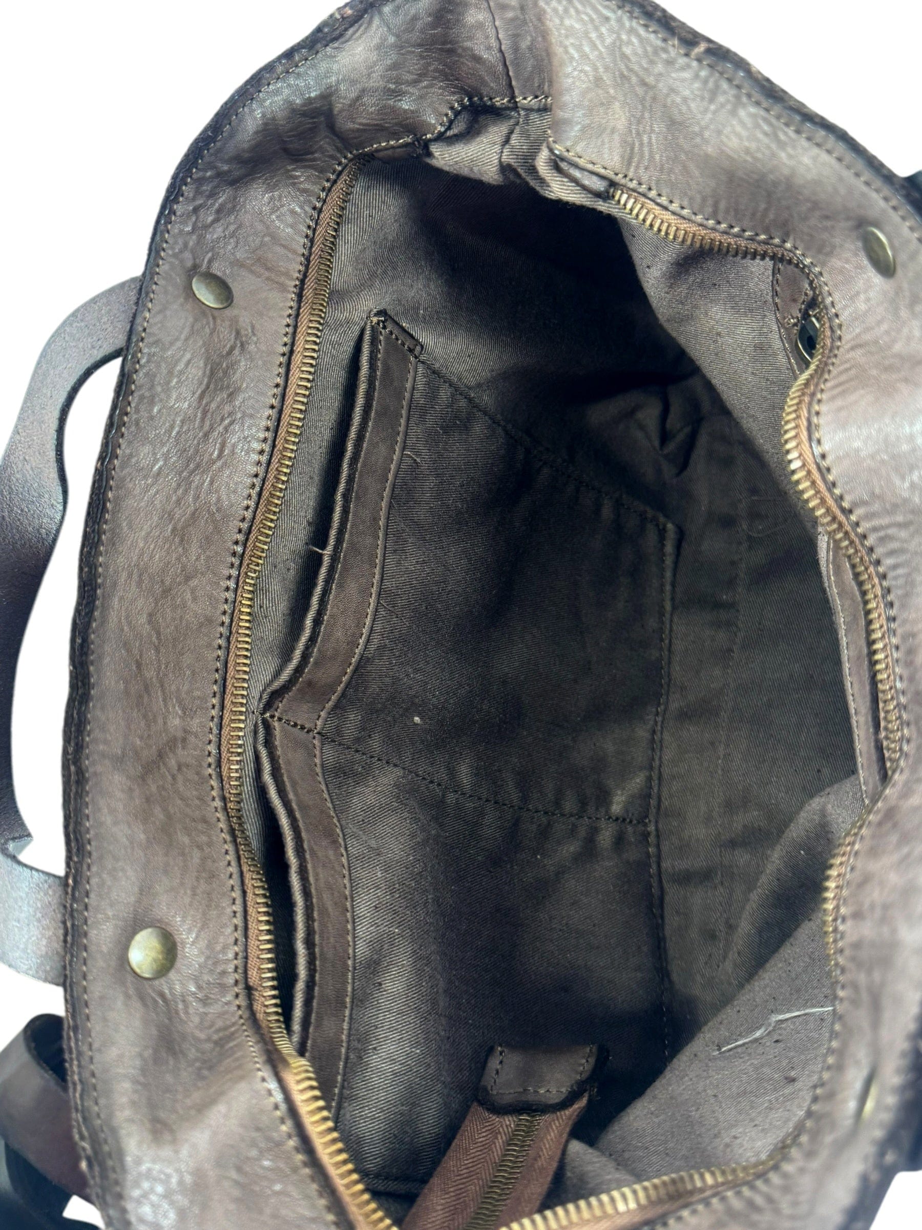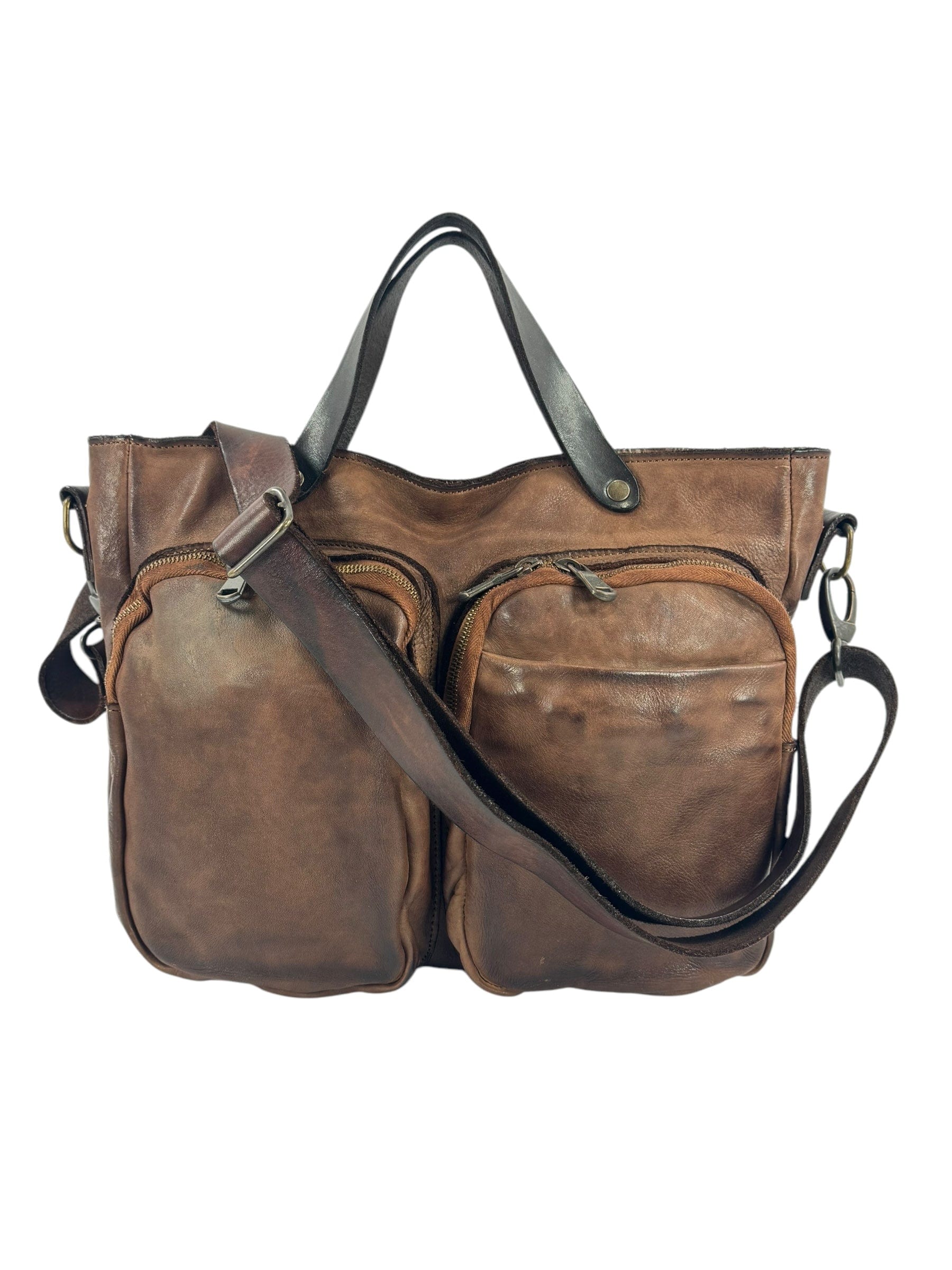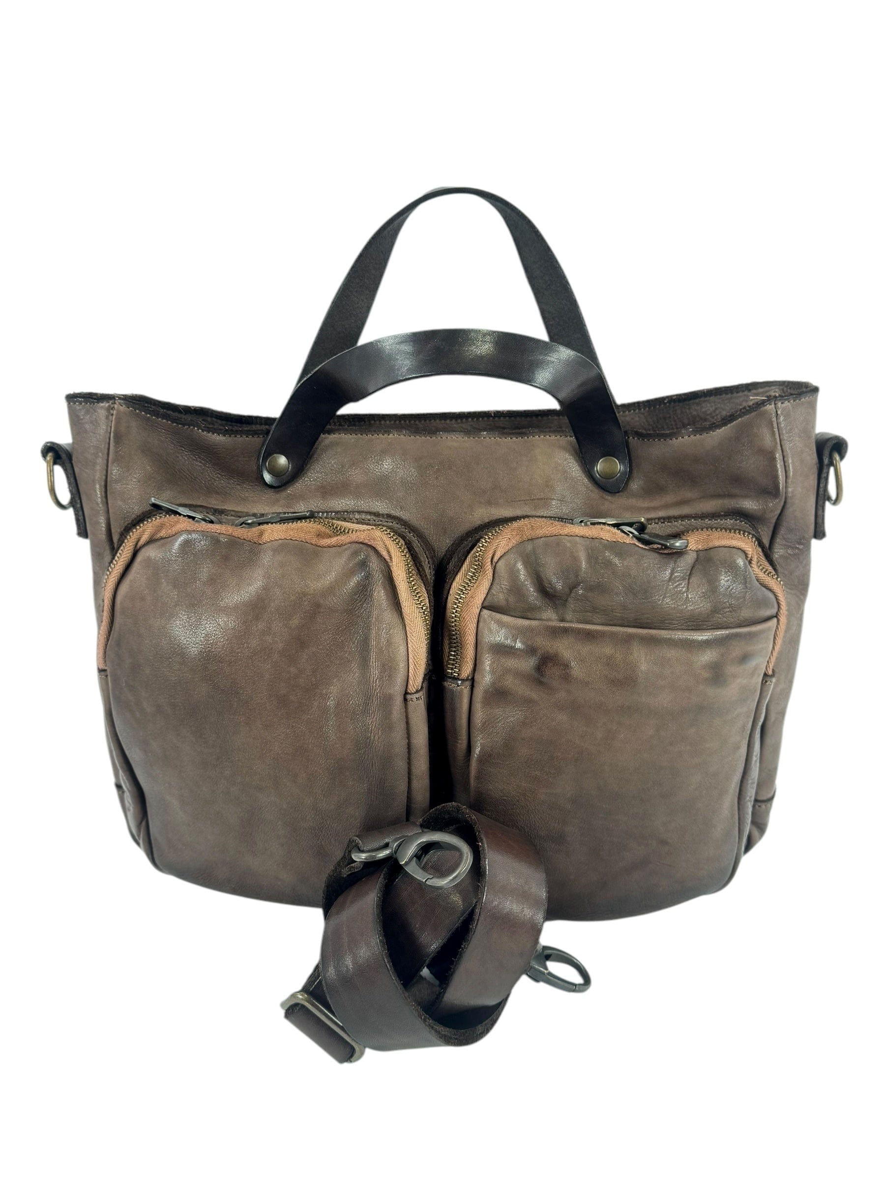 Borsa in pelle e cuoio tinta in capo, linee uniche per pellami alttrettanto preziosi, costruita in maniera artigianale con pellami di alta qualità in Toscana