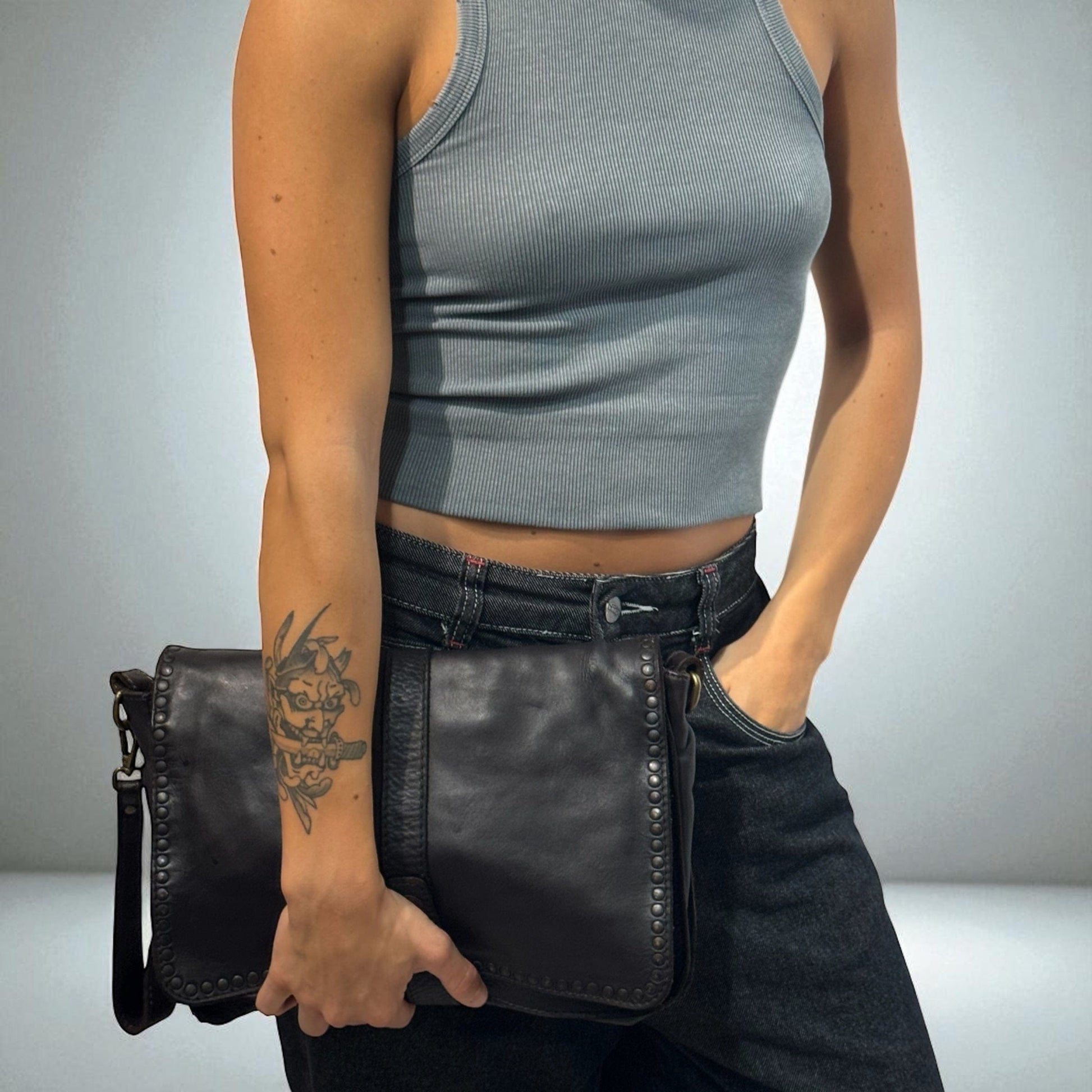 Borsa tracolla e a mano in pelle morbida decorata con borchie Giorgia-Mahzel