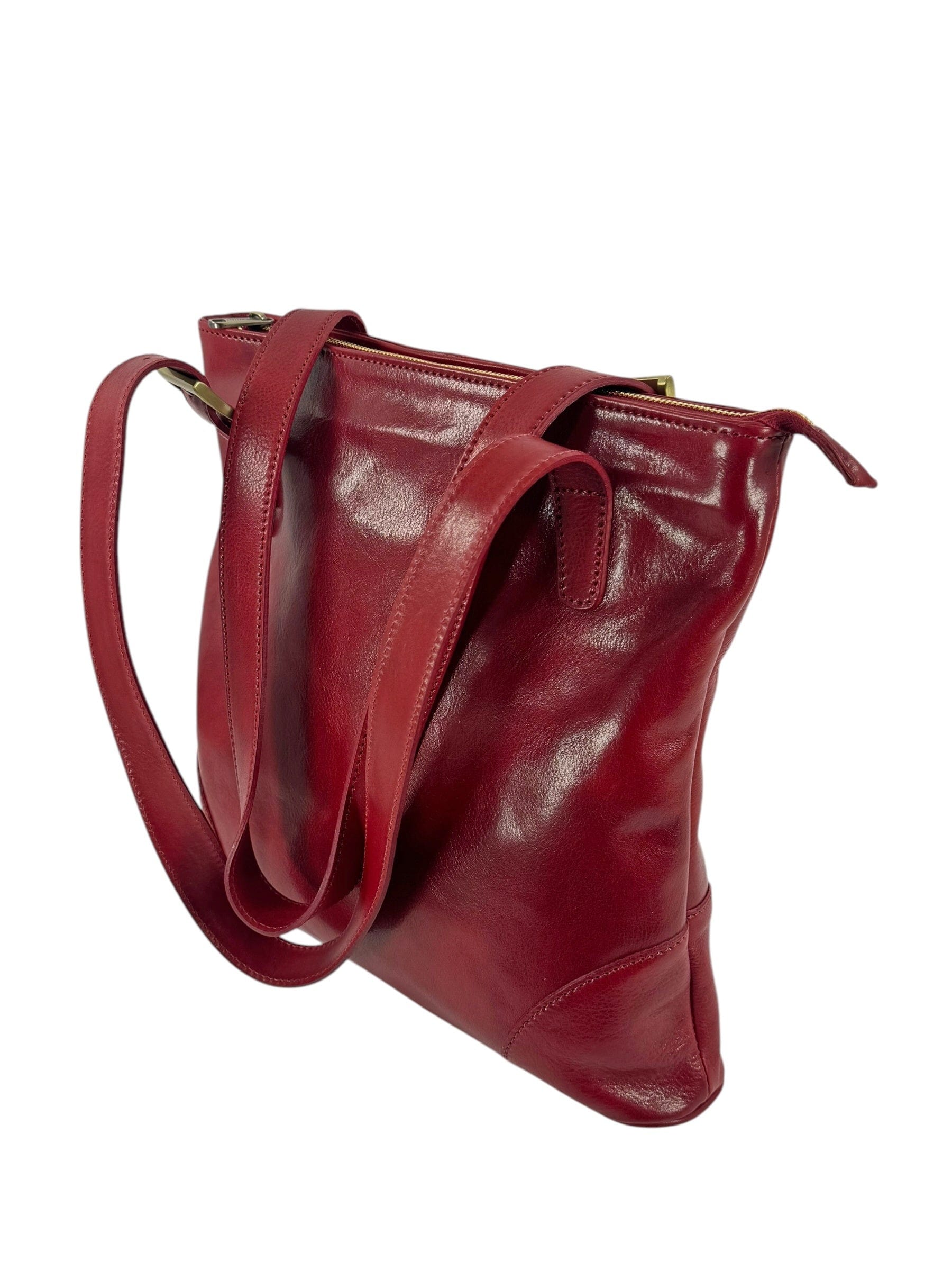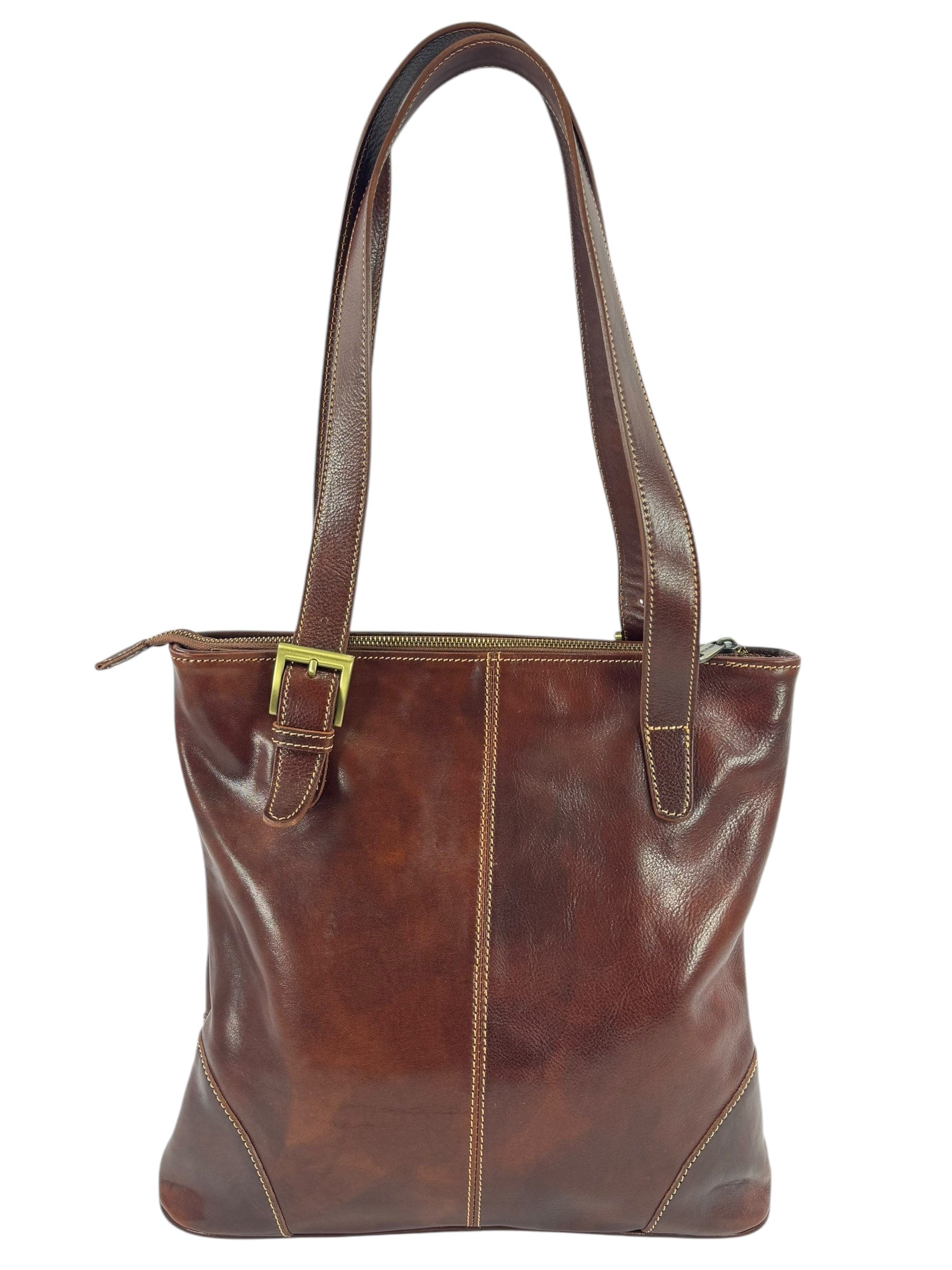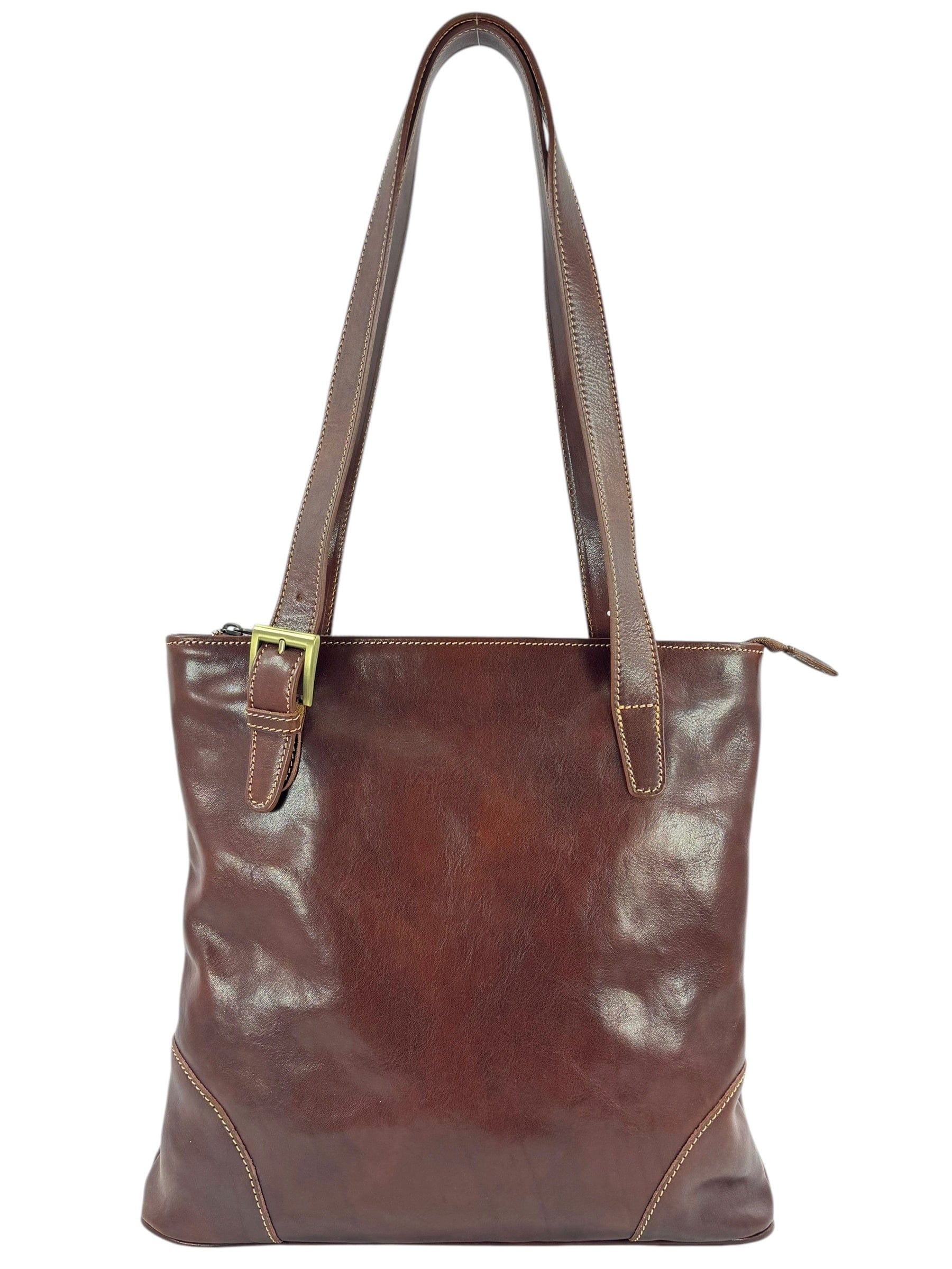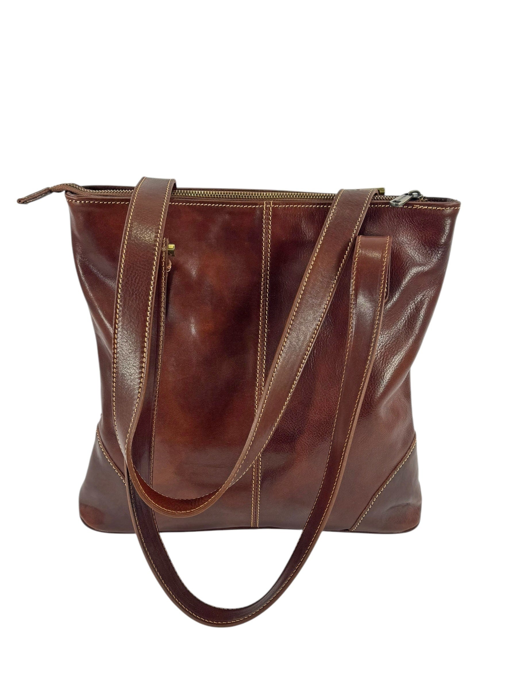 Una borsa a spalla in cuoio, interamente realizzata in Italia. Pratica e comoda, perfetta per il tuo shopping. Il cuoio tamponato a mano le conferisce un aspetto unico e di alta qualità. Aggiungi un tocco di carattere al tuo look con questa borsa shopper!