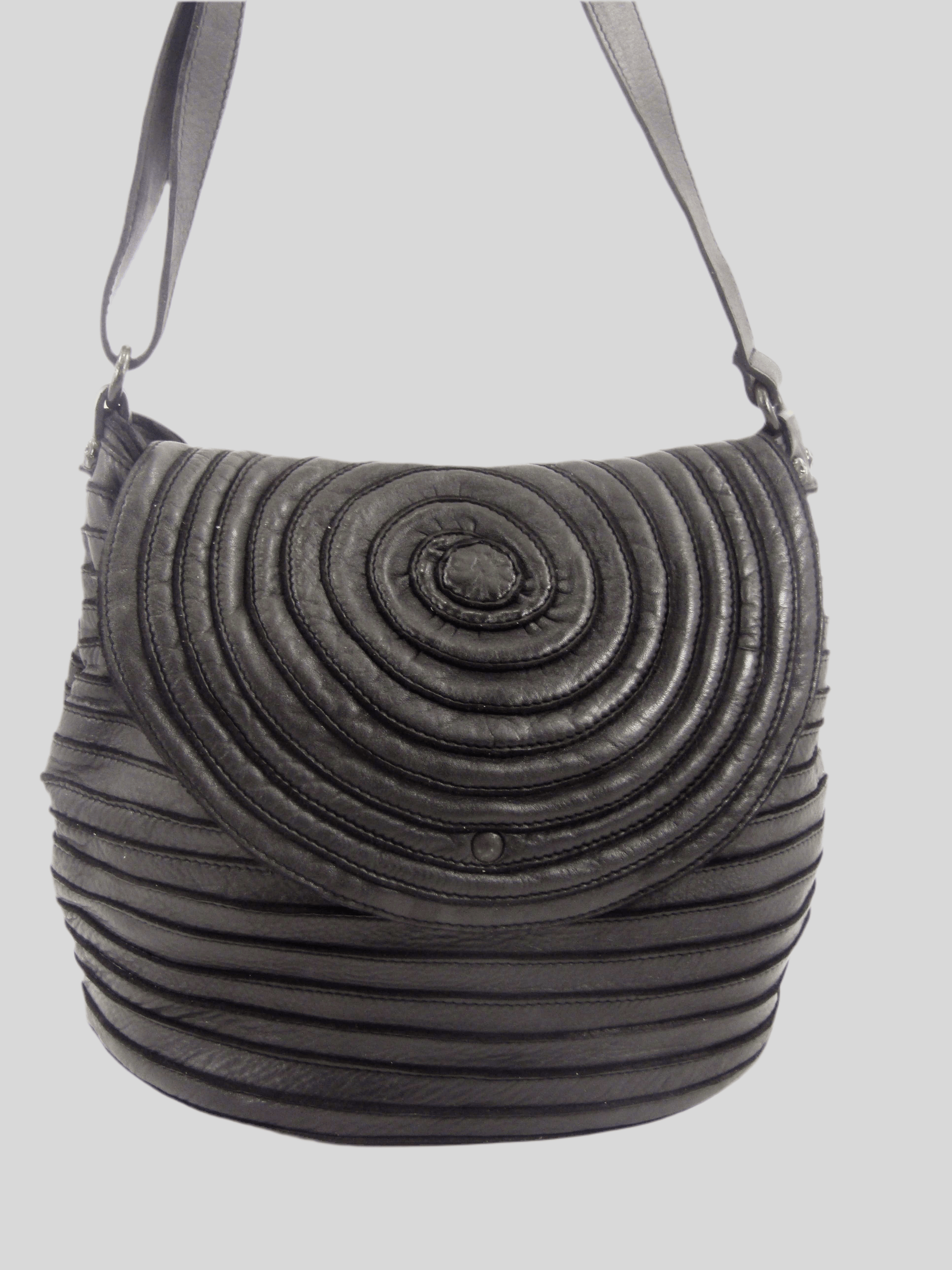 Borsa a spalla o tracolla in pelle morbida tinta in capo, chiusura con zip e pattina, interno unico scomparto rivestito accessoriato da tasca chiusa da zip e tasca di cortesia aperta, tracolla in pelle regolabile, linee armoniose amplificate dalla particolare costruzione.