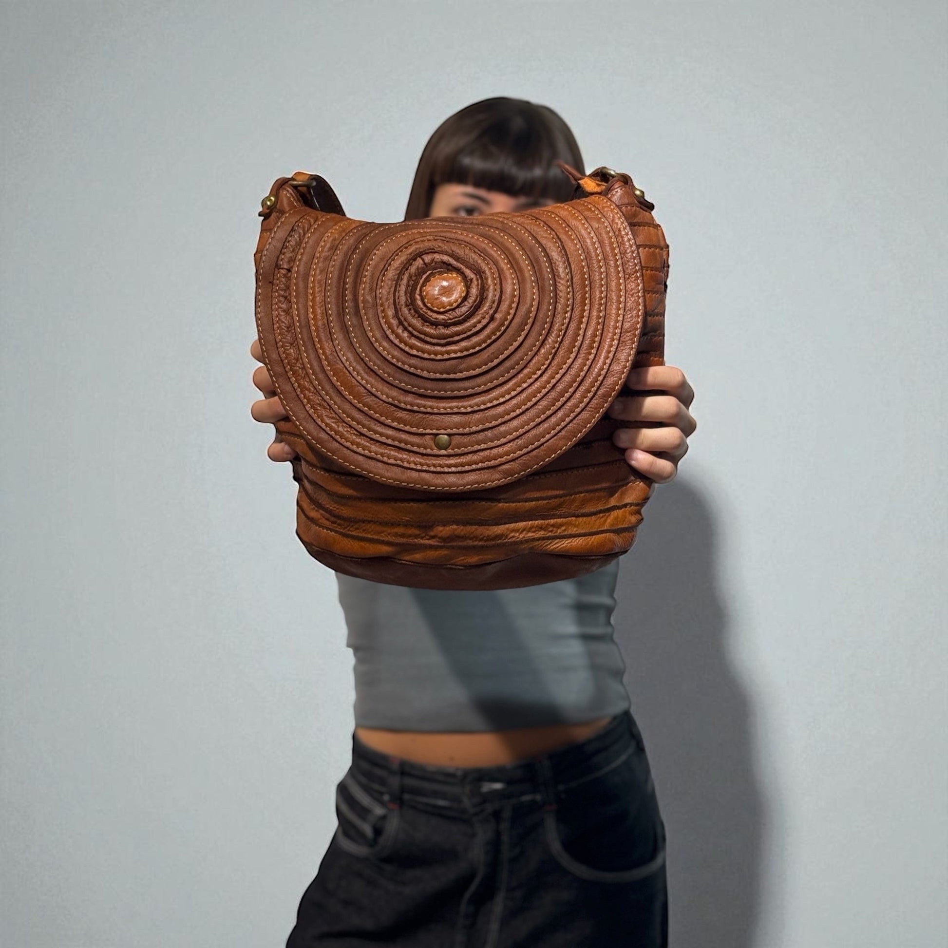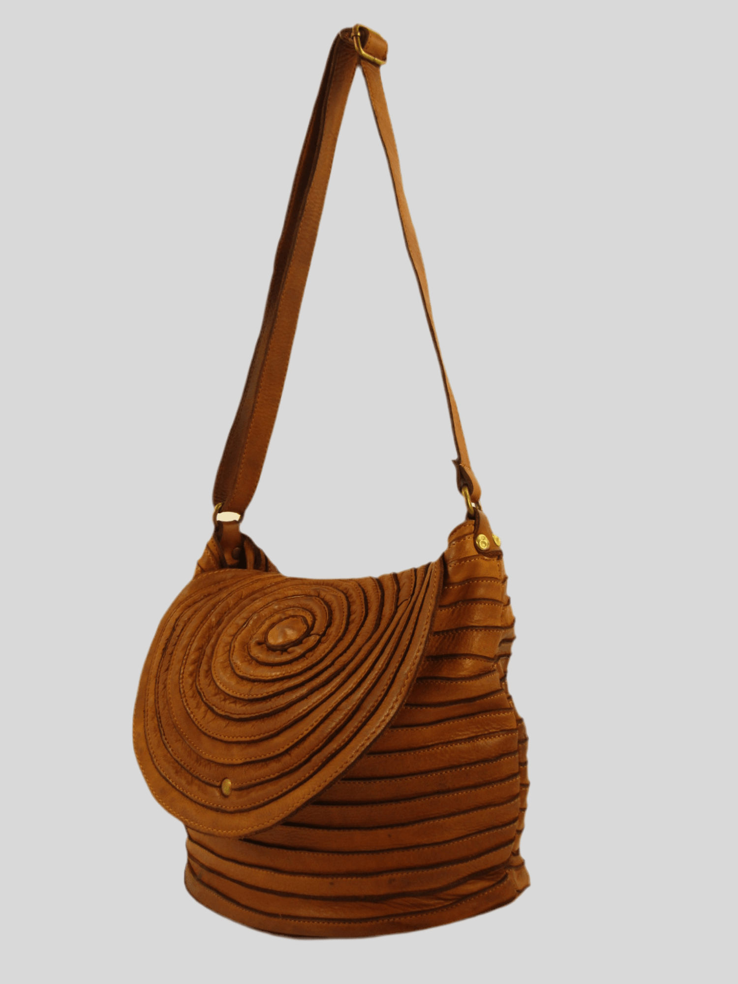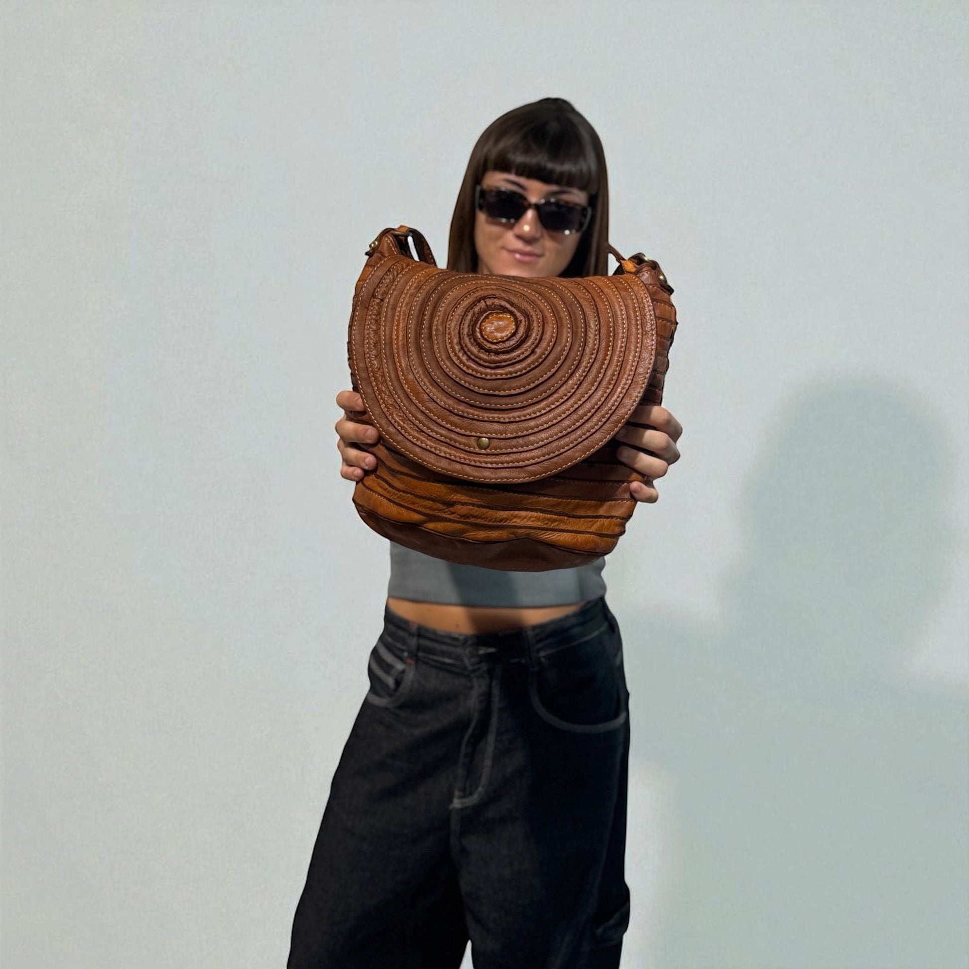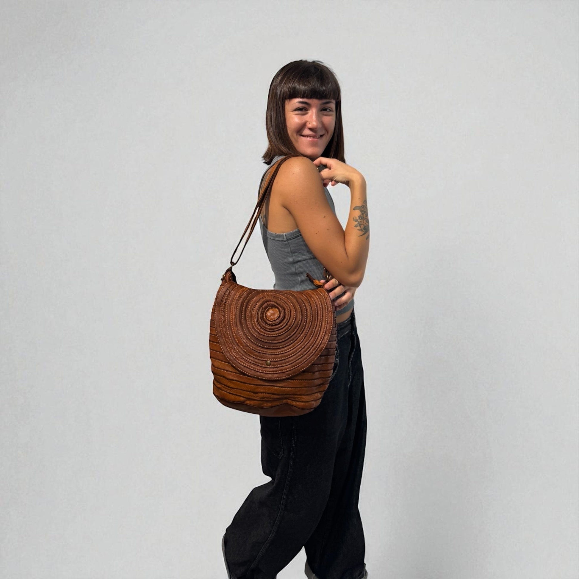 Borsa a spalla e tracolla stringata fatta a mano in pelle morbida - Mahzel