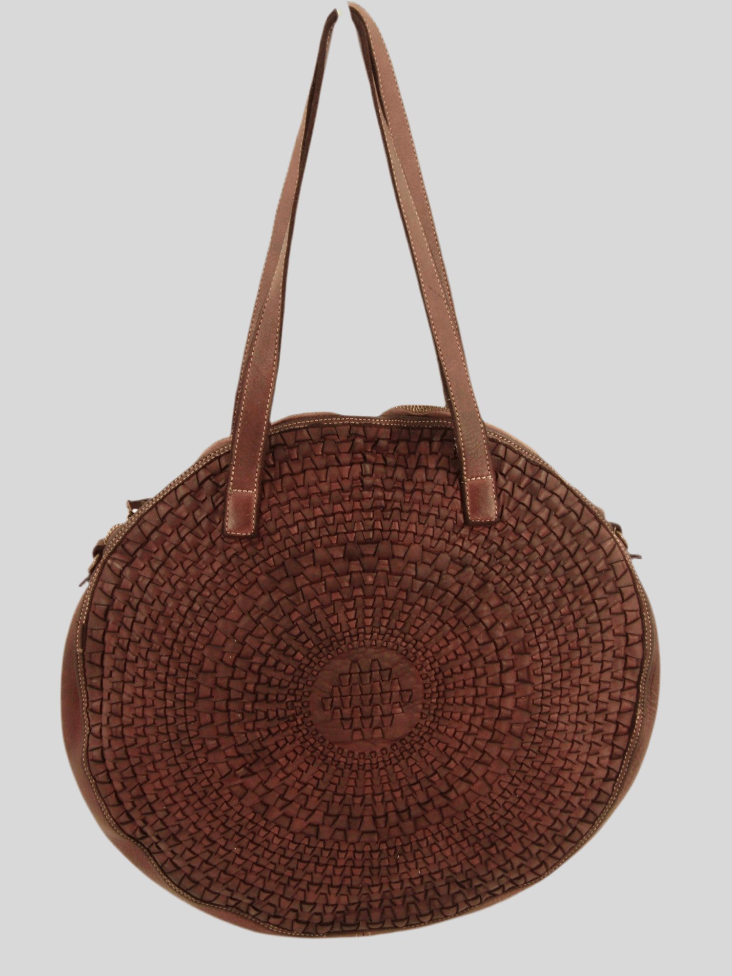Borsa rotonda in pelle morbida con disegno intrecciato Nausica - Mahzel