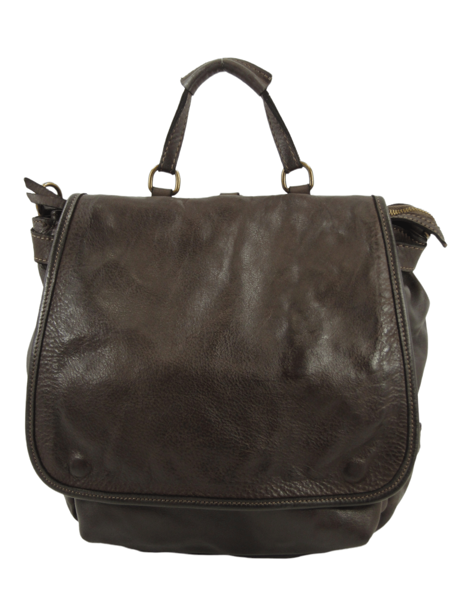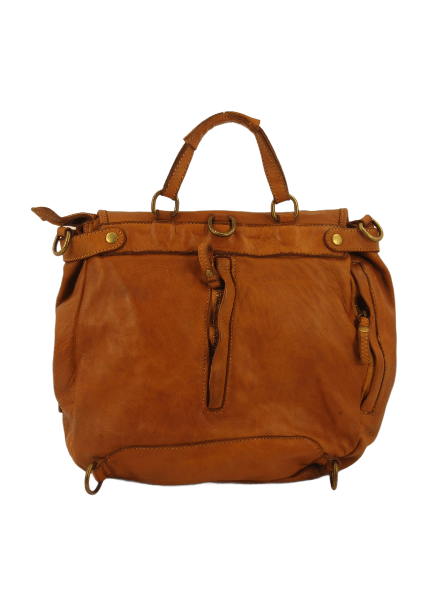 Borsa multifunzione in pelle tinta in capo, chiusura con zip, interno rivestito ed accessoriato da tasca chiusa da zip e tasche di cortesia aperte, due tracolle in pelle regolabili e rimovibili, pattina chiusa con bottoni, sotto la pattina due tasche chiuse da zip, sul retro due tasche chiuse da zip ed una ulteriore tasca ricavata nella pattina stessa, borsa comoda e molto accessoriata, le due tracolle permettono di indossarla come più si preferisce, zaino, tracolla, spalla, borsa moderna realizzata con pellami di alta qualità in maniera artigianale