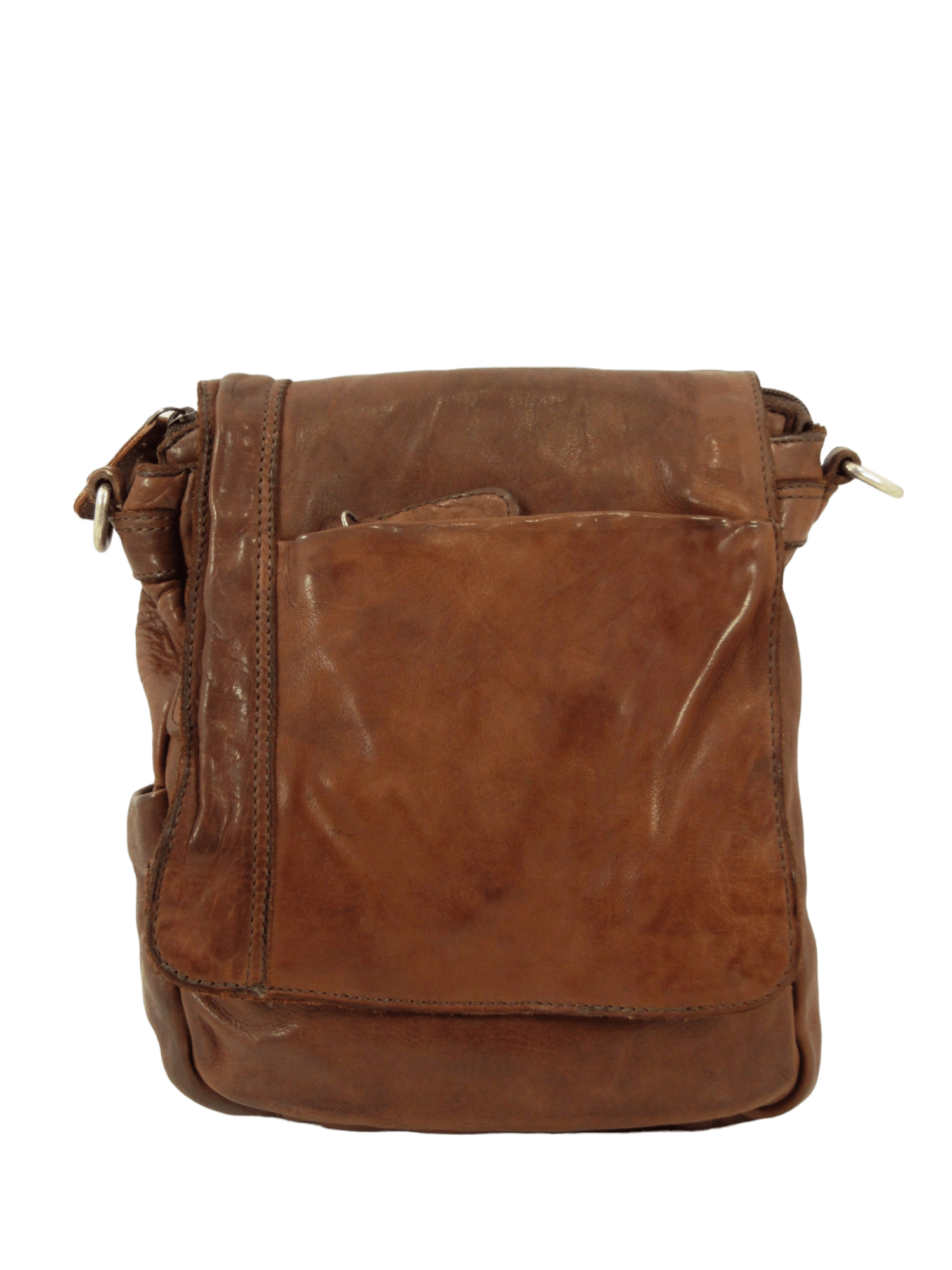 Borsello in pelle lavata effetto vintage, colori caldi e morbidezza, borsa materica , chiusura della pattina con clip magnetica, chiusura della bocca con zip, costruito in maniera artigianale con pellami di alta qualità