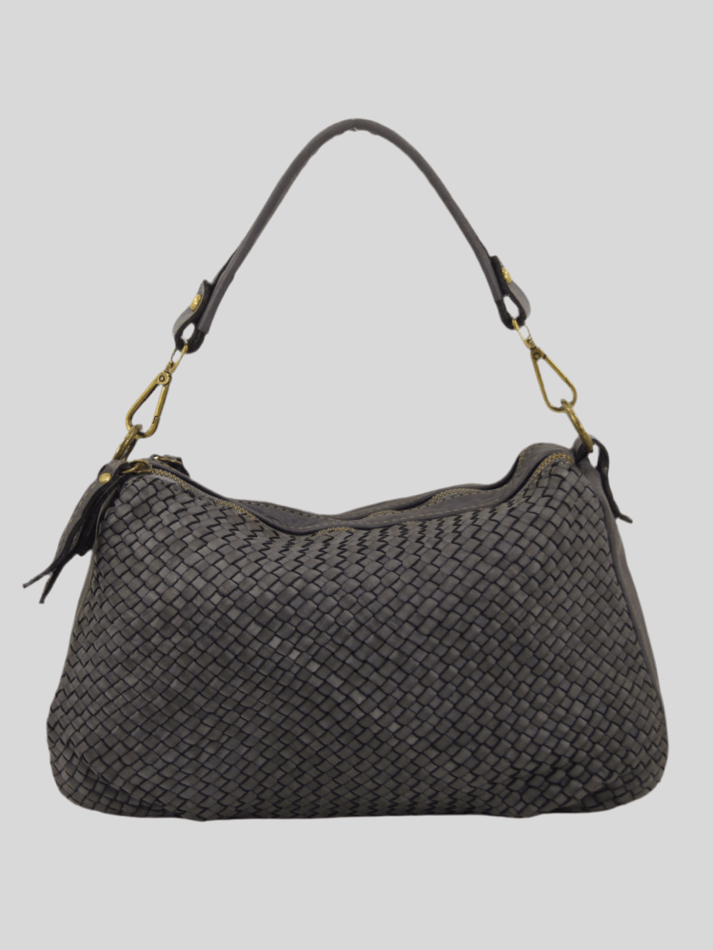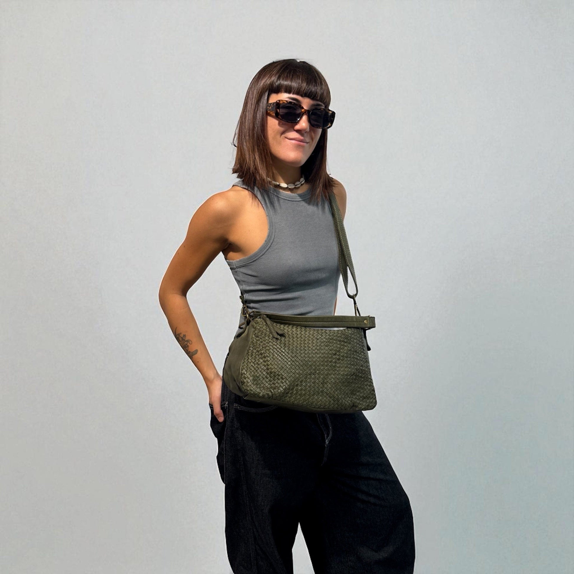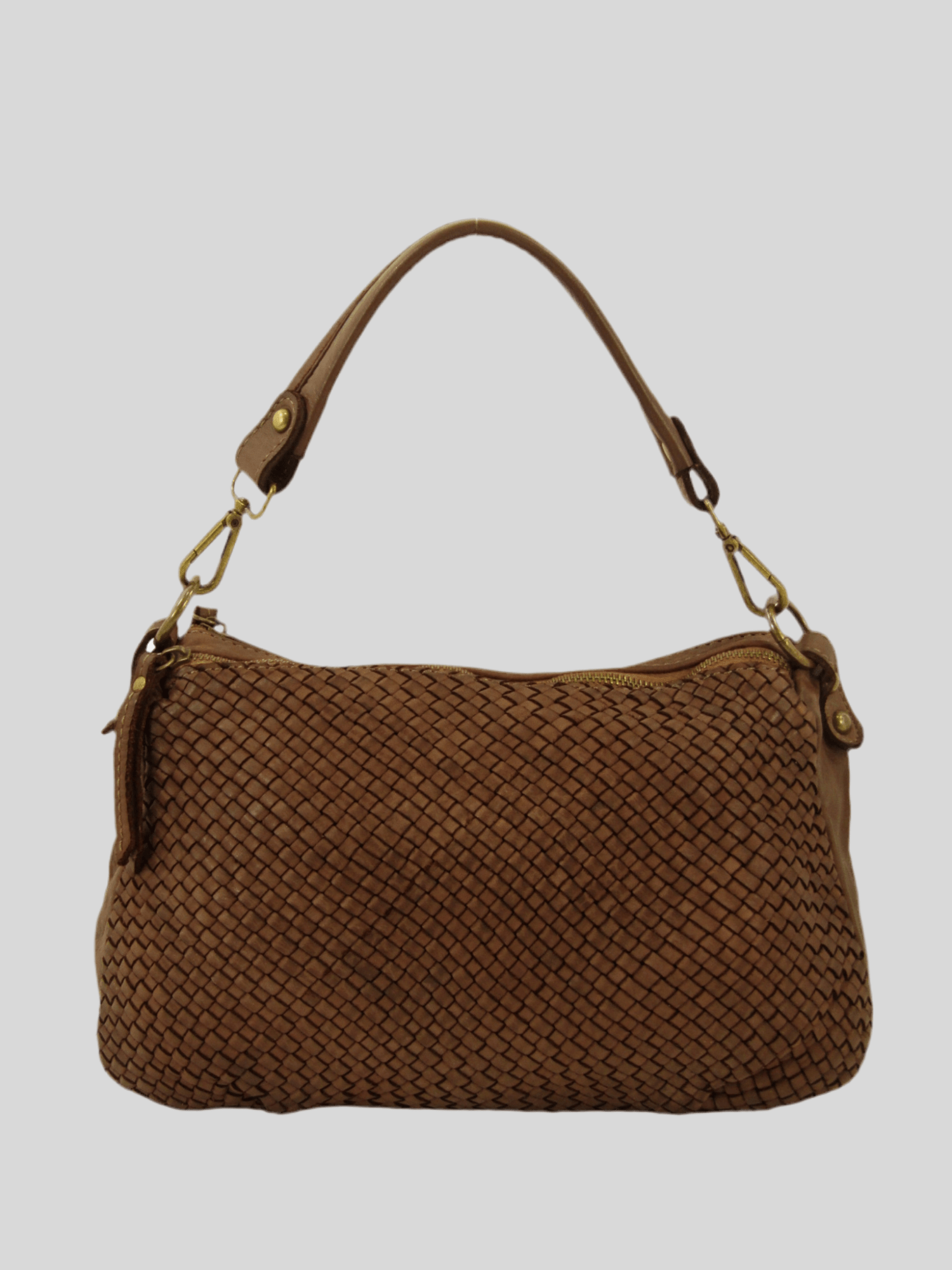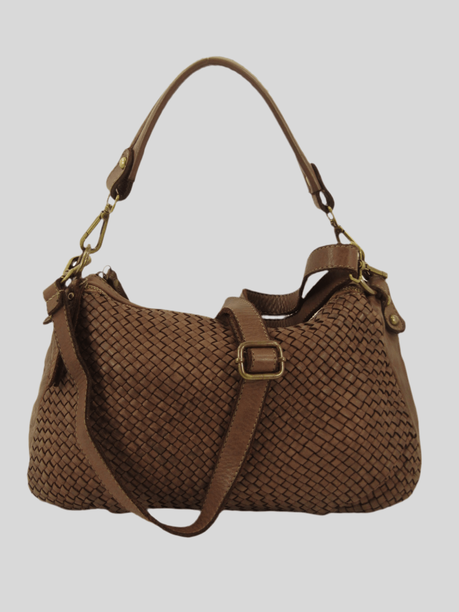 Borsetta a spalla e tracolla con frontale intrecciato. Realizzata in pelle di qualità, questa borsa a spalla è comoda e morbida, offre praticità ed eleganza. Il design intrecciato del frontale aggiunge un tocco di stile ad un look classico. Un accessorio versatile per mood sempre positivo