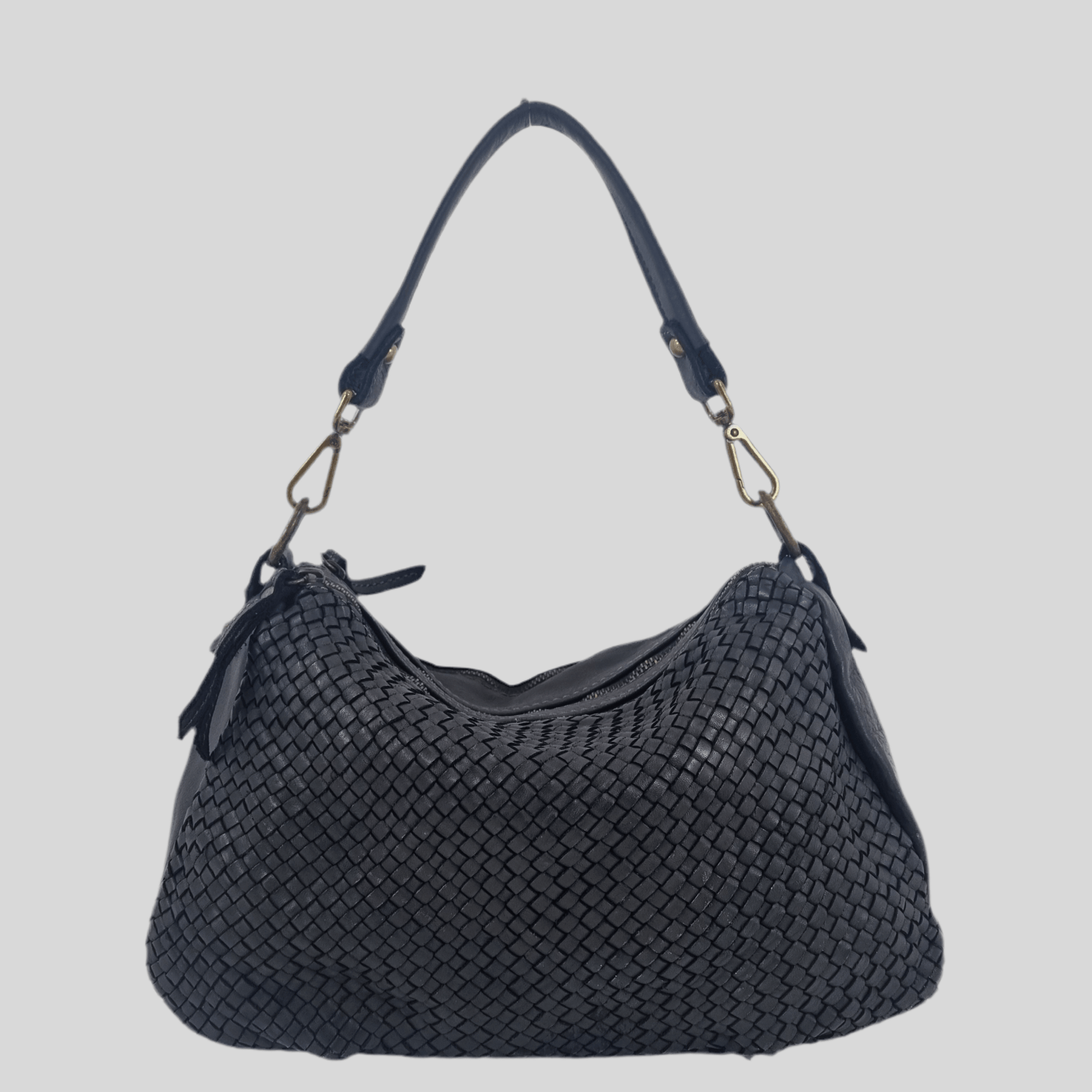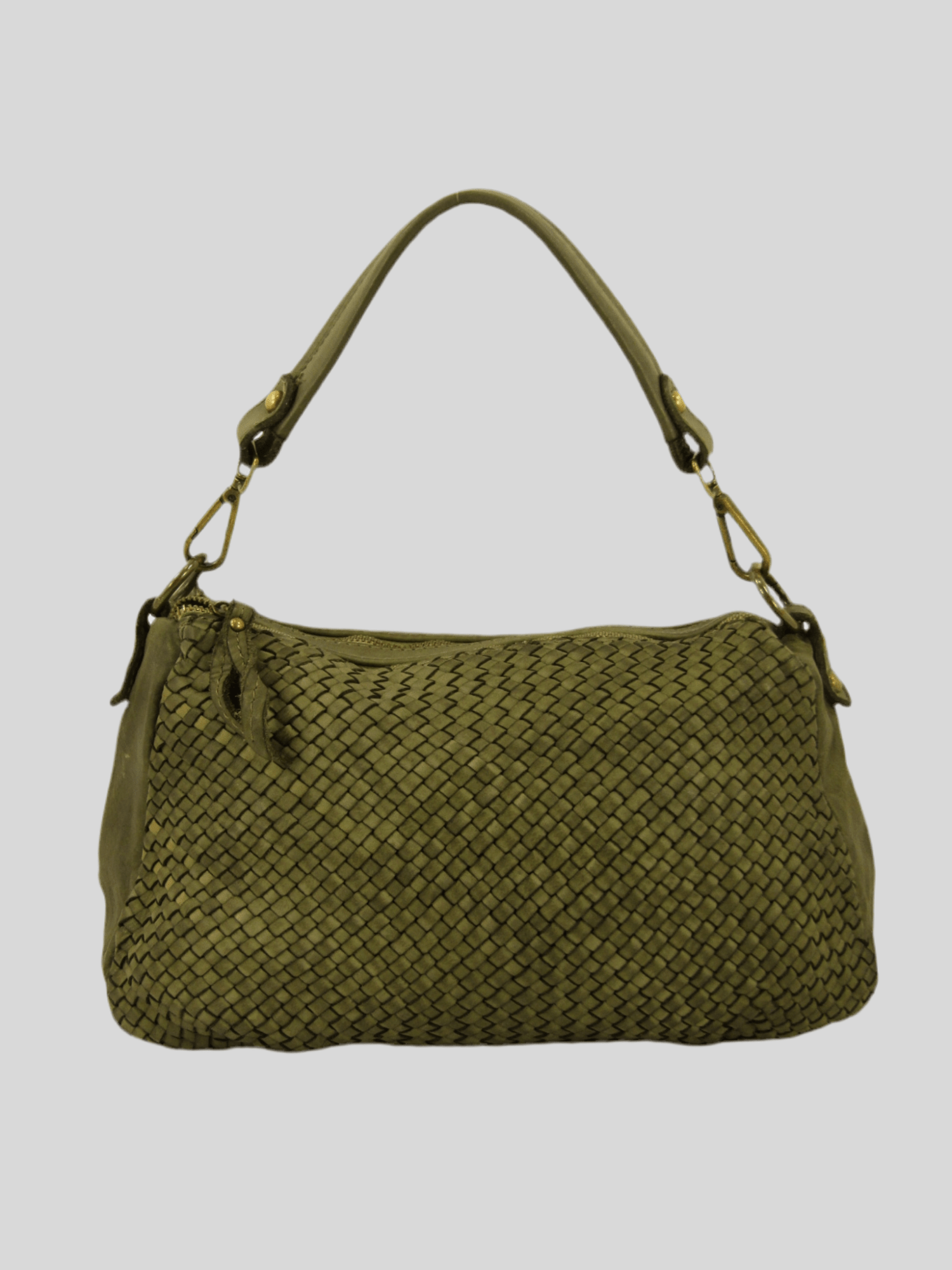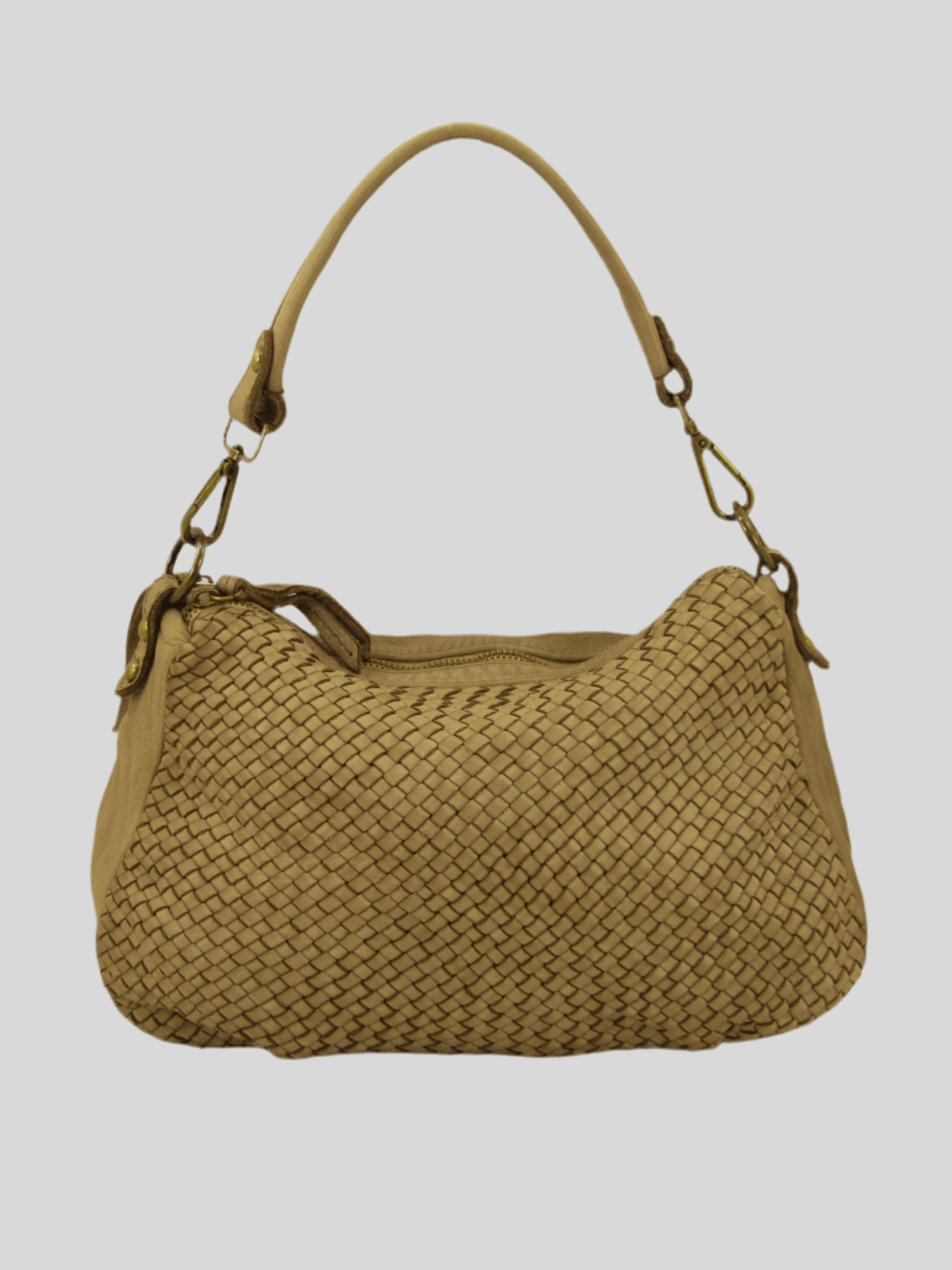Borsetta a spalla e tracolla con frontale intrecciato. Realizzata in pelle di qualità, questa borsa a spalla è comoda e morbida, offre praticità ed eleganza. Il design intrecciato del frontale aggiunge un tocco di stile ad un look classico. Un accessorio versatile per mood sempre positivo