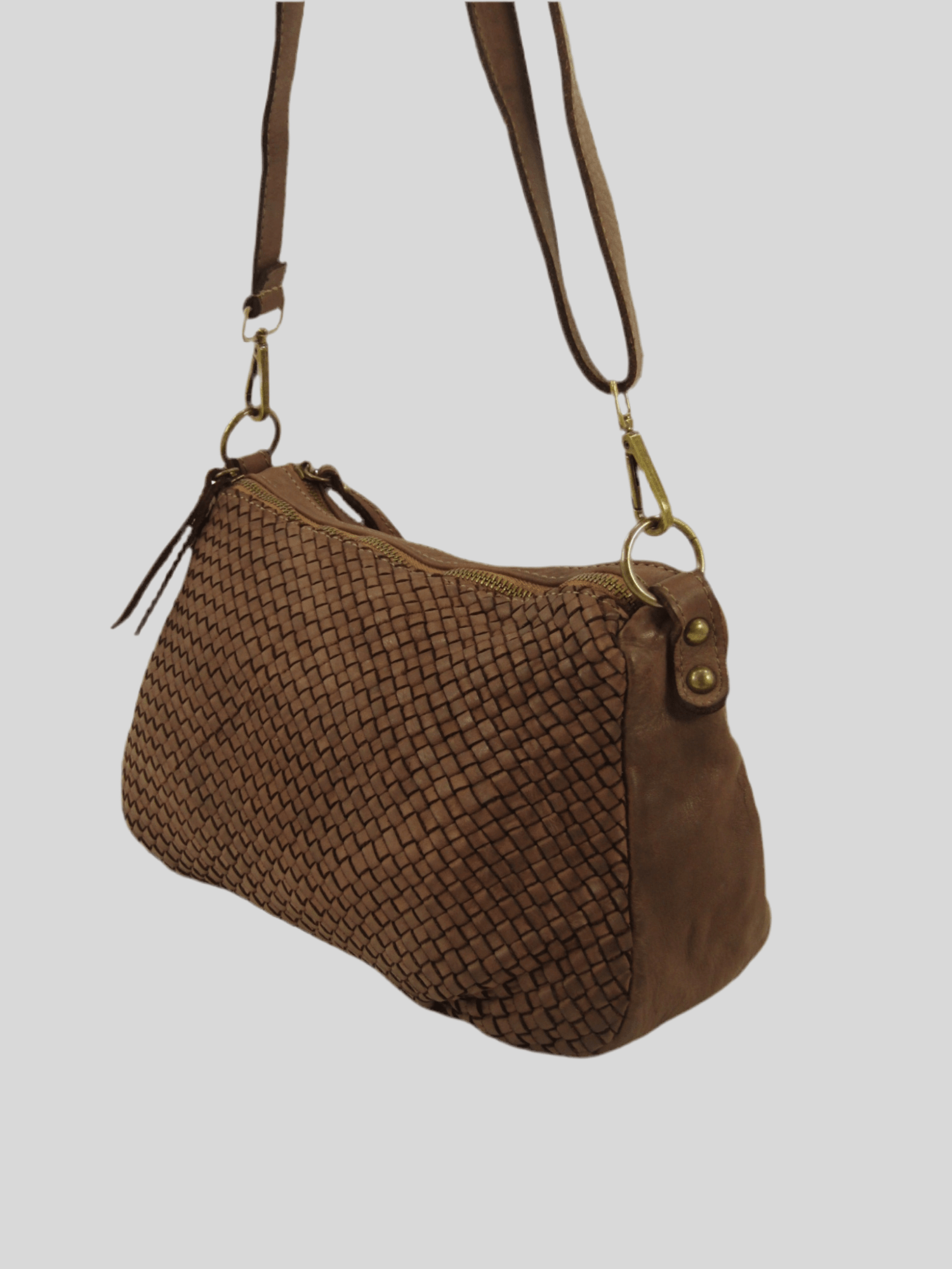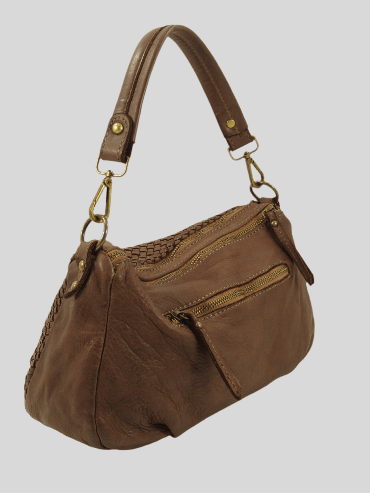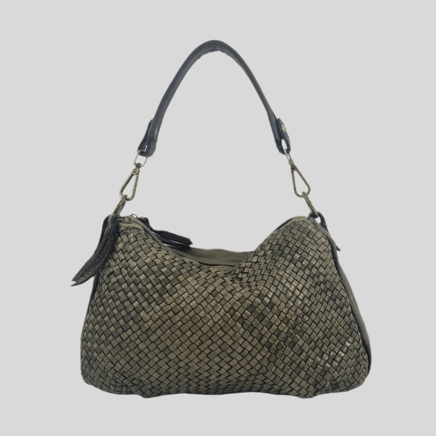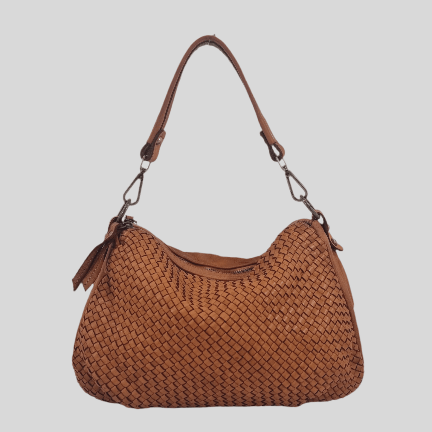 Borsetta a spalla e tracolla con frontale intrecciato. Realizzata in pelle di qualità, questa borsa a spalla è comoda e morbida, offre praticità ed eleganza. Il design intrecciato del frontale aggiunge un tocco di stile ad un look classico. Un accessorio versatile per mood sempre positivo