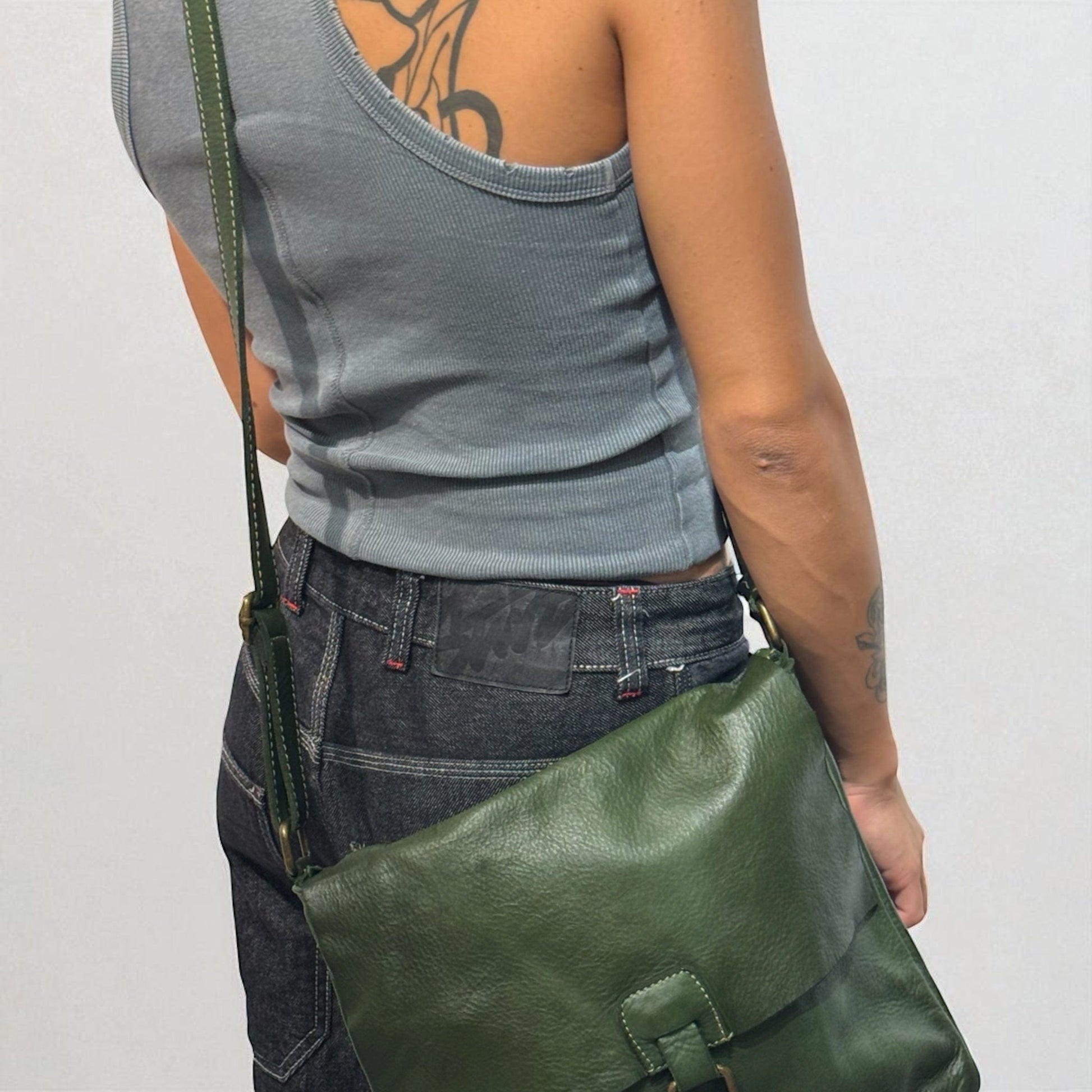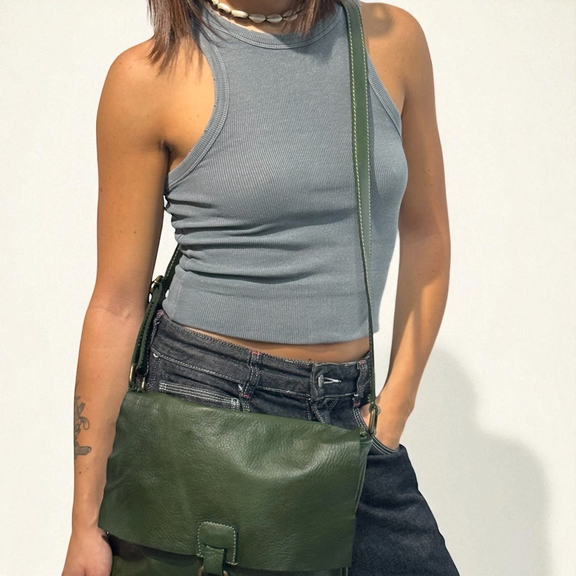 Borsetta a tracolla con pattina a taglio vivo effetto vintage -Mahzel