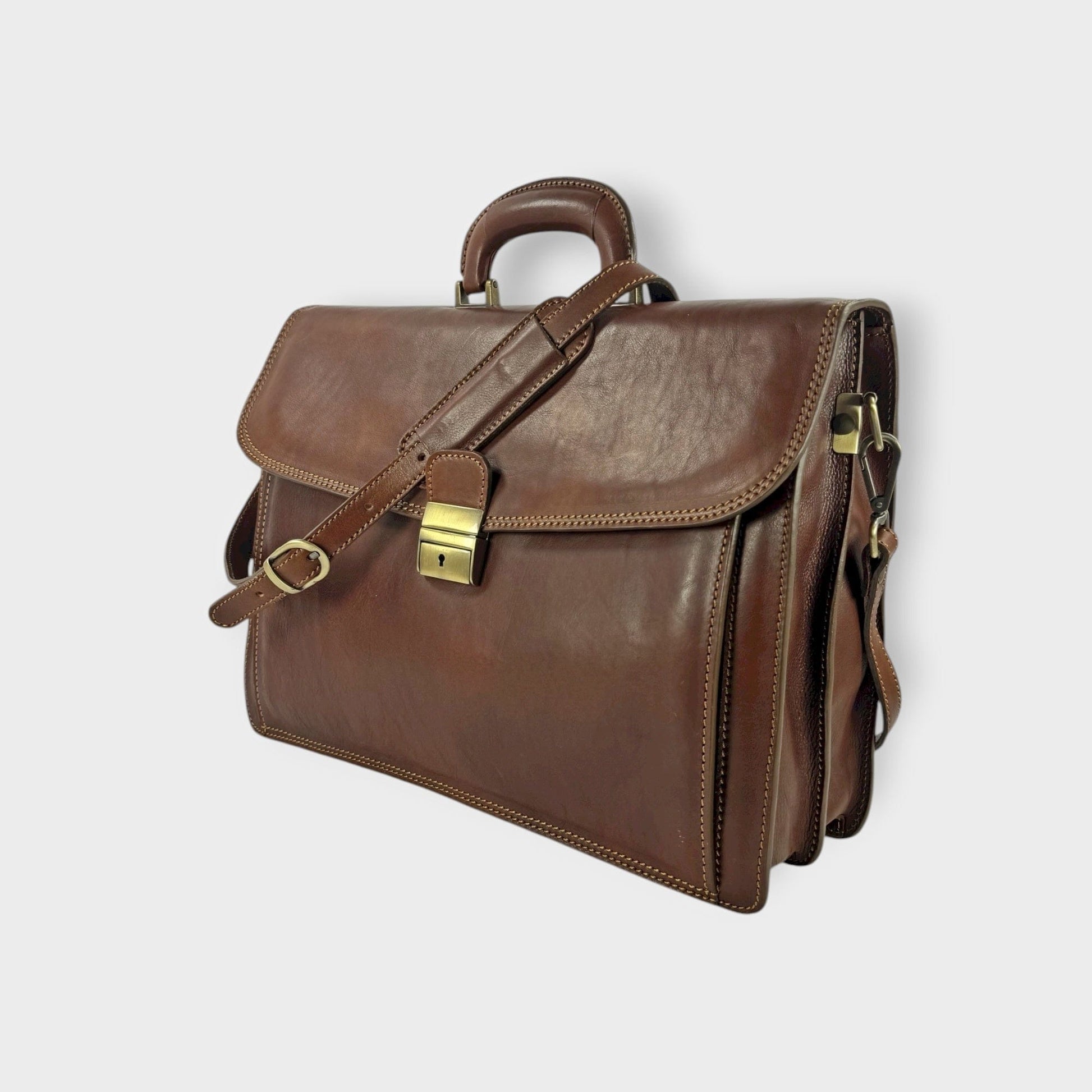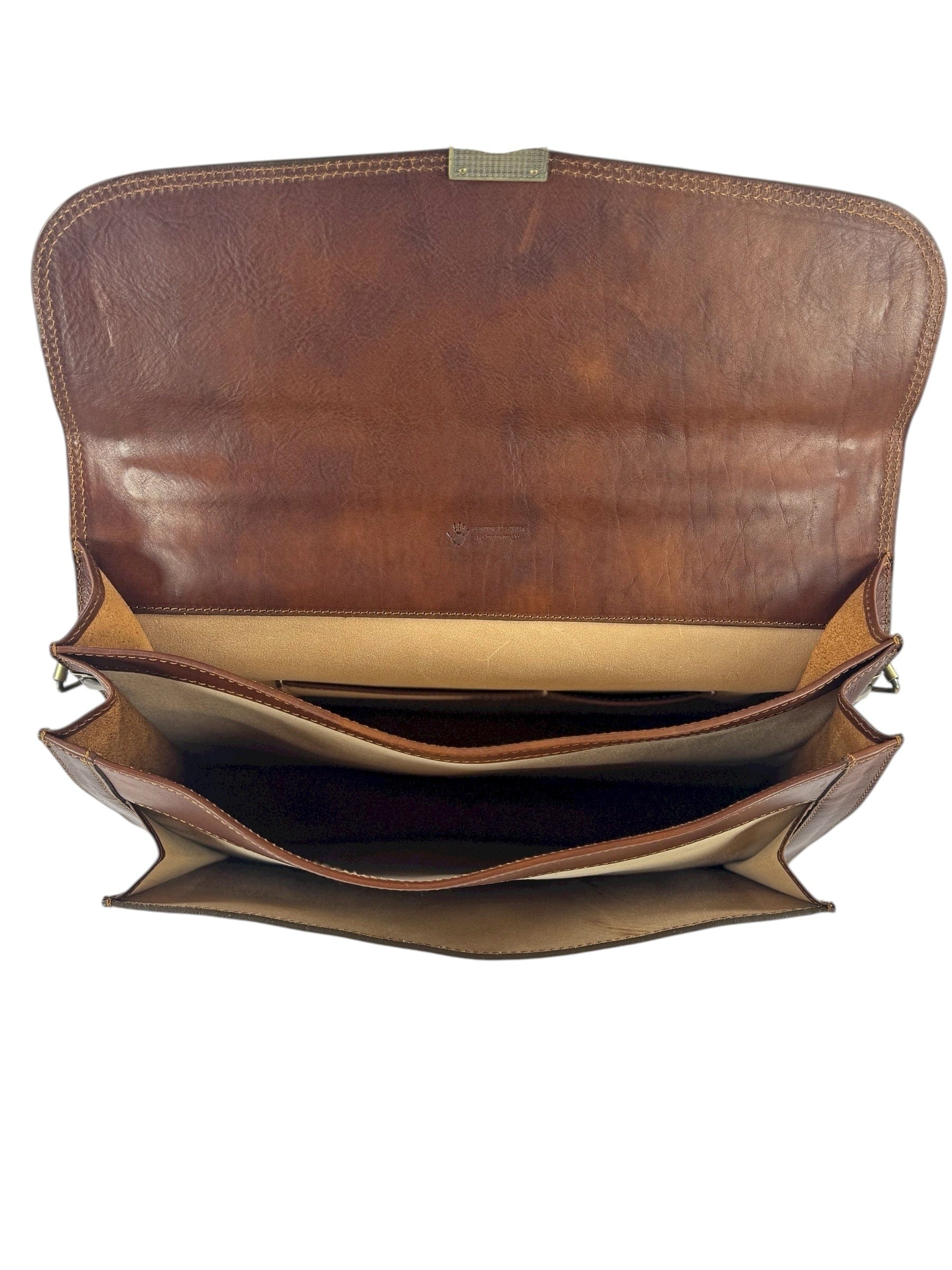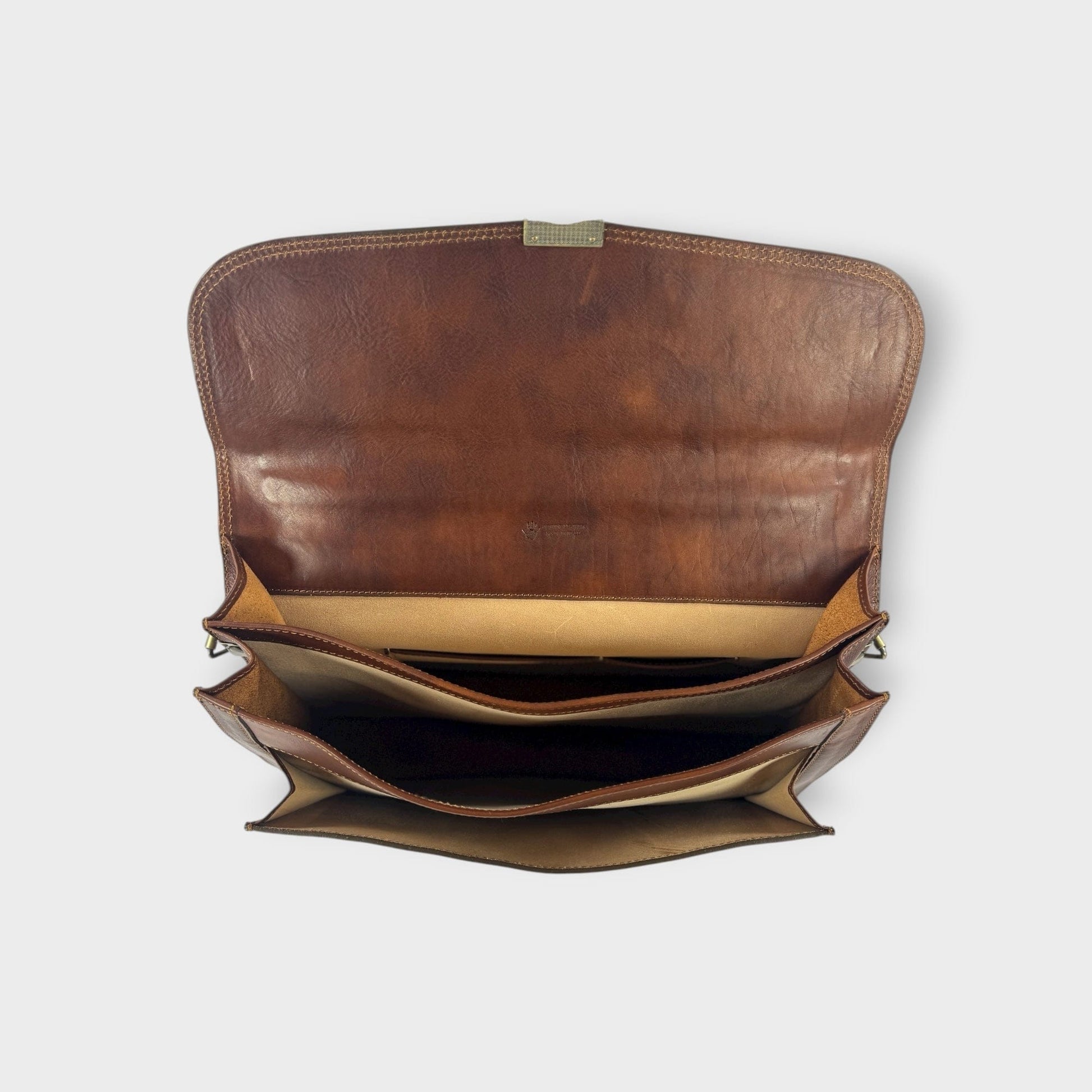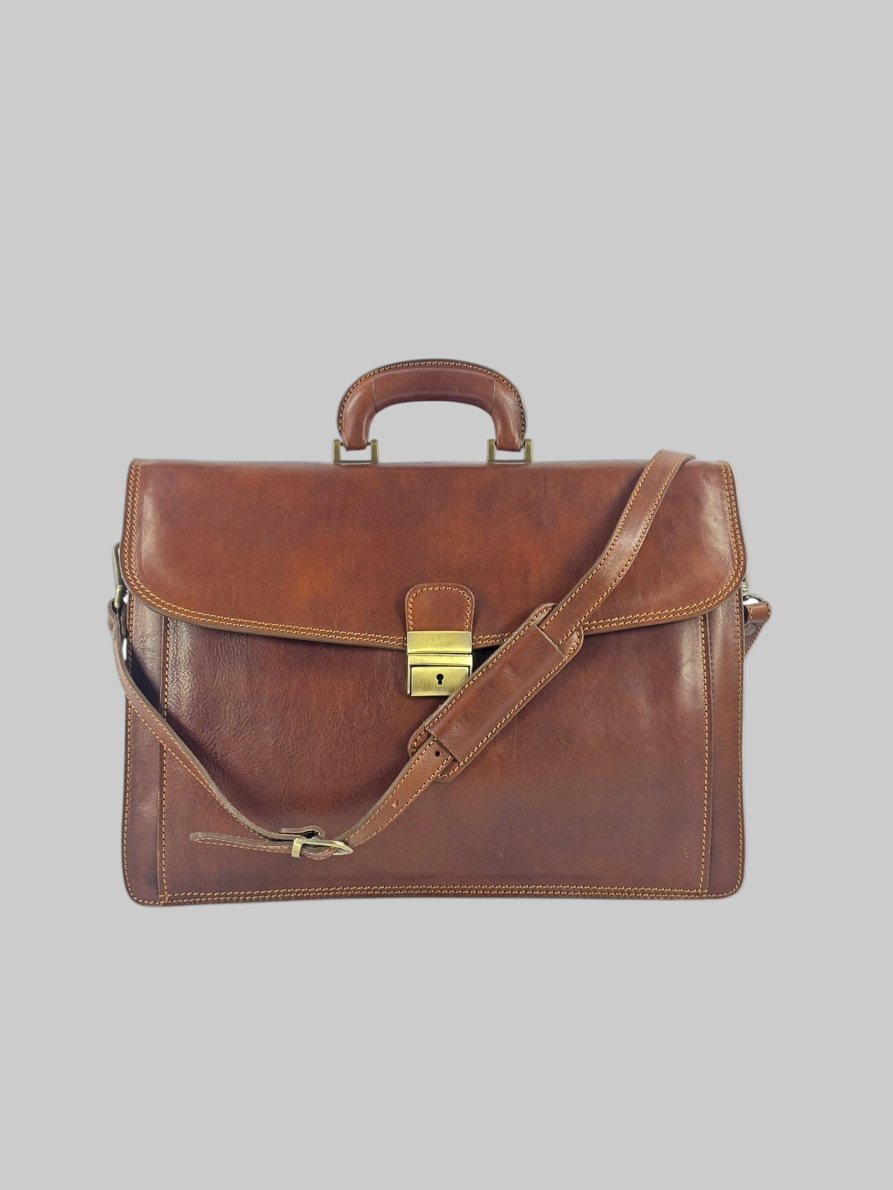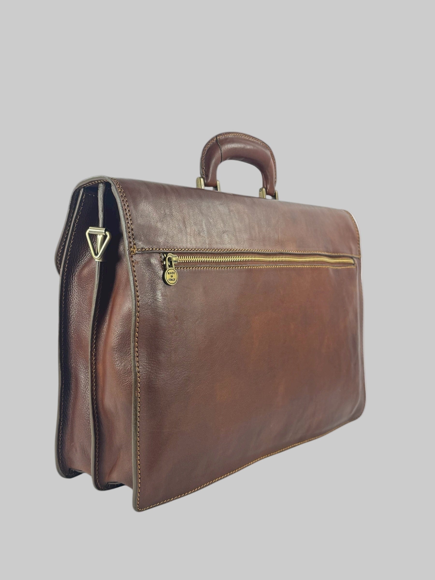 La Cartella Dallas incarna l'essenza della borsa da lavoro italiana: eleganza senza compromessi e funzionalità autentica. Realizzata in pelle conciata al vegetale, garantisce durabilità e una patina naturale che migliora nel tempo. Lo spazio generoso accoglie documenti, laptop e accessori quotidiani, mentre il design classico si adatta a qualsiasi contesto professionale. Un investimento in qualità artigianale che accompagna la tua carriera con stile consapevole.