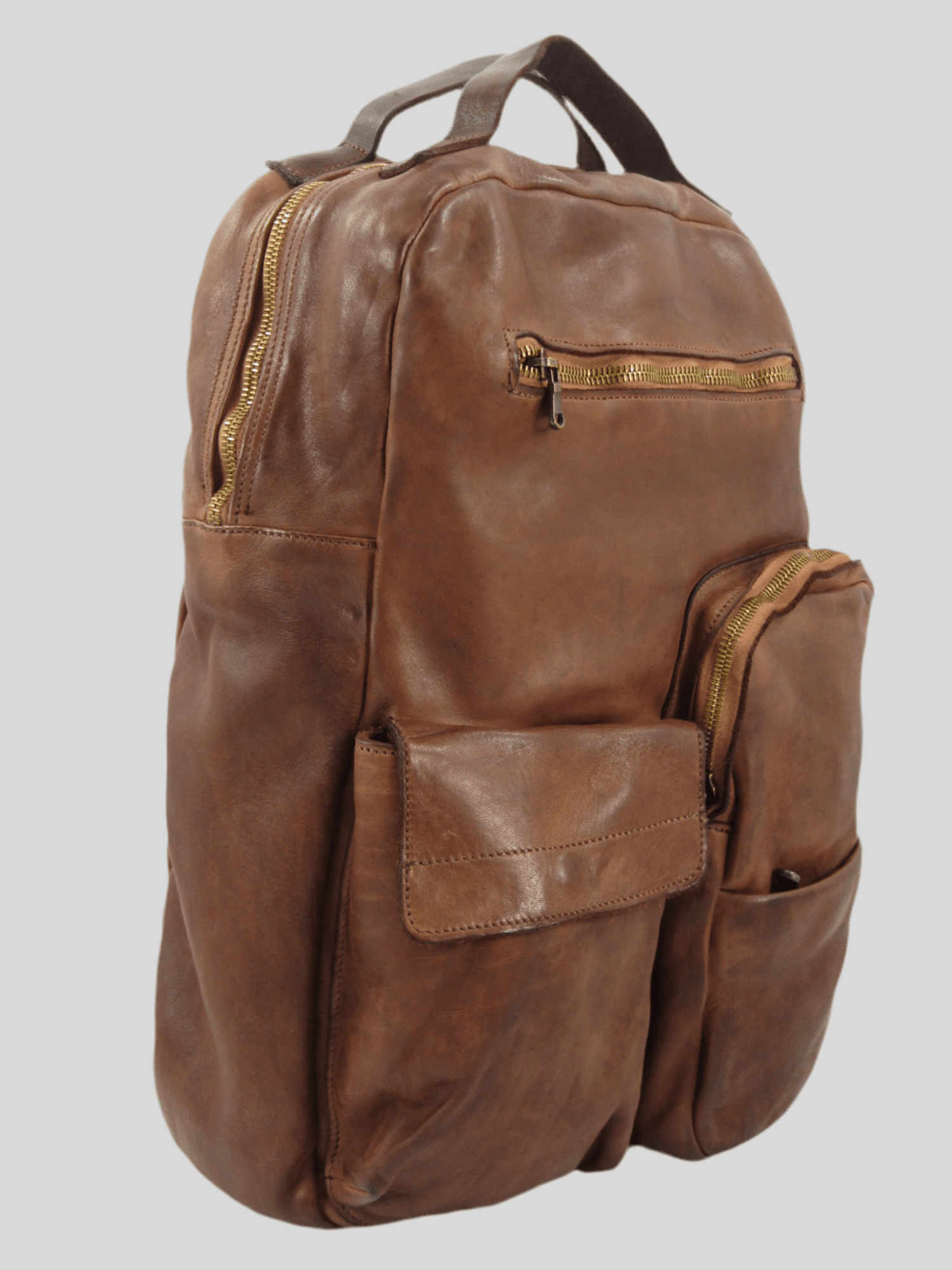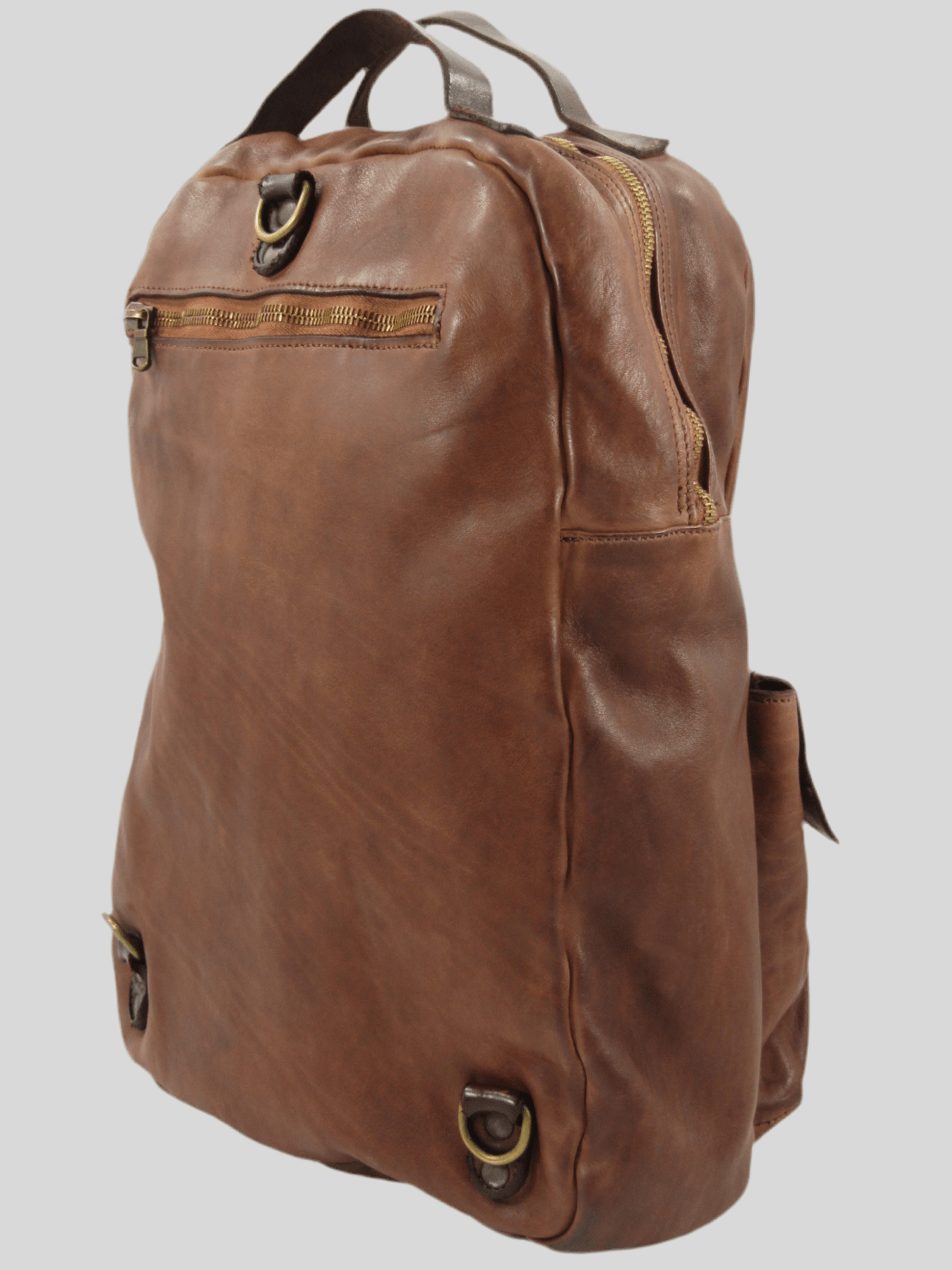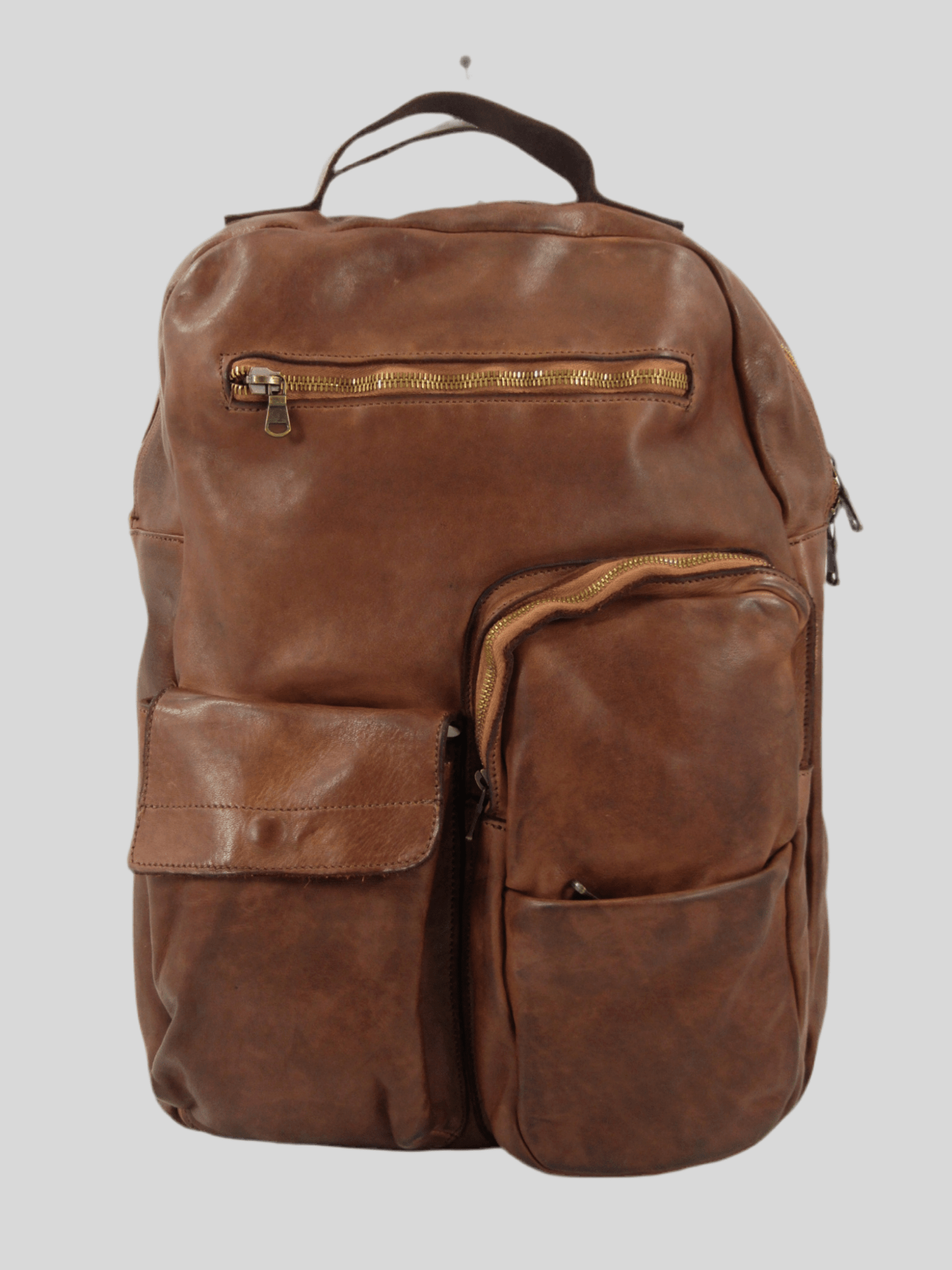 Zaino e cartella in vacchetta con inserti in Cuoio tinto in capo al vegetale, i due spallacci sono rimovibili e trasformano lo zaino in una borsa, oggetto ricercato nelle linee e nei materiali, adatto in più situazioni e fortemente caratteriale, interno rivestito ed accessoriato da tasca chiusa da zip e tasche aperte, costruito in maniera artigianale con pellami di alta qualità da veri maestri del cuoio