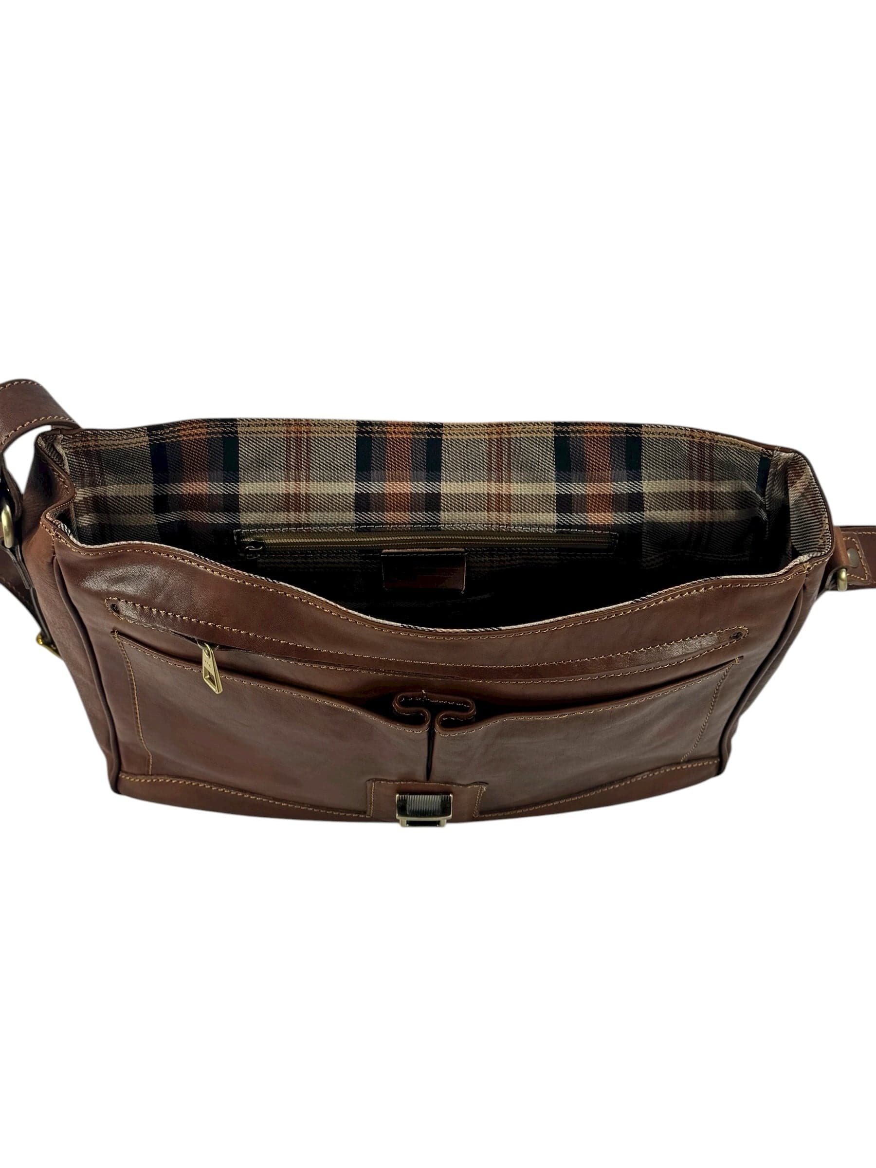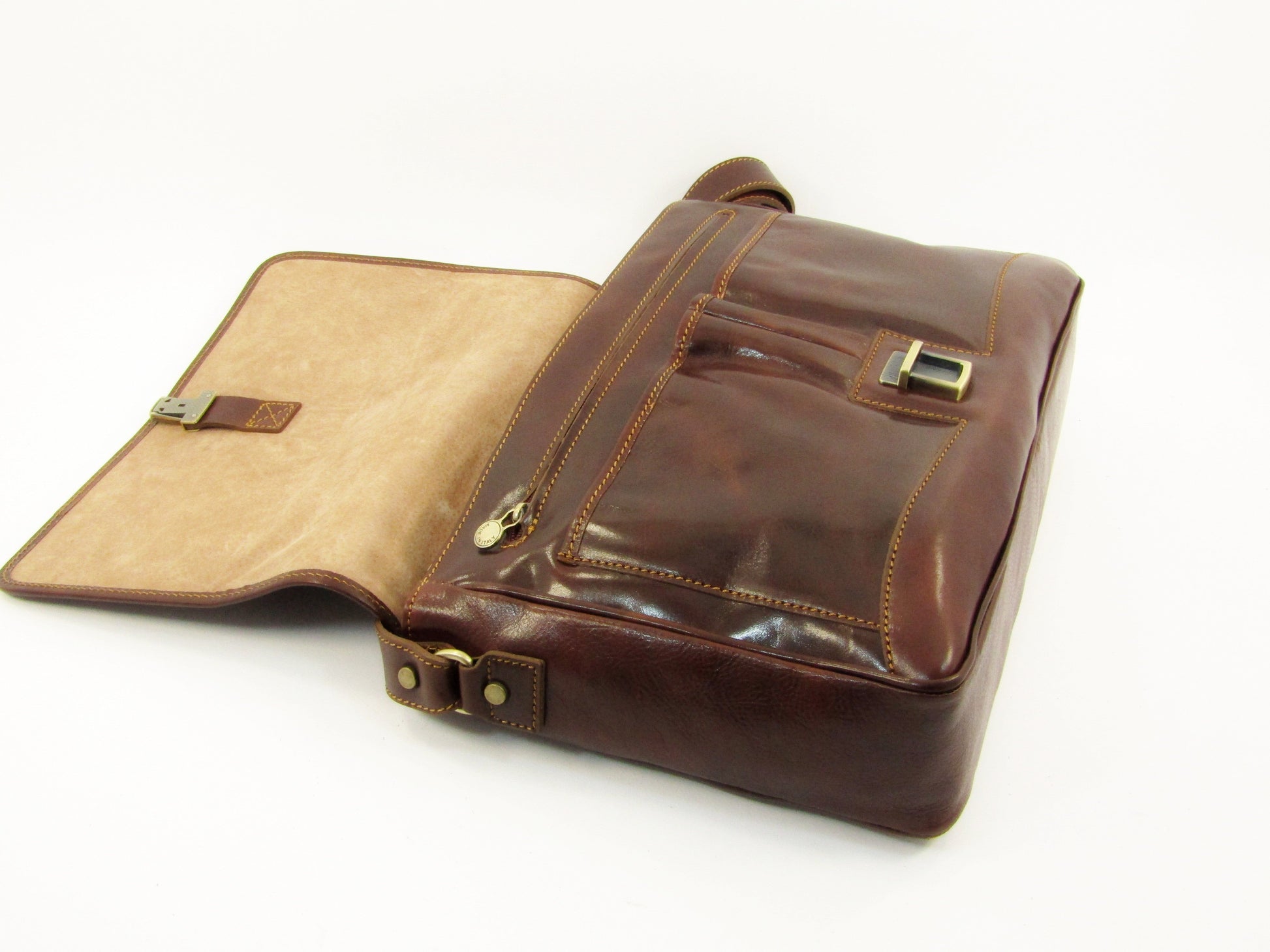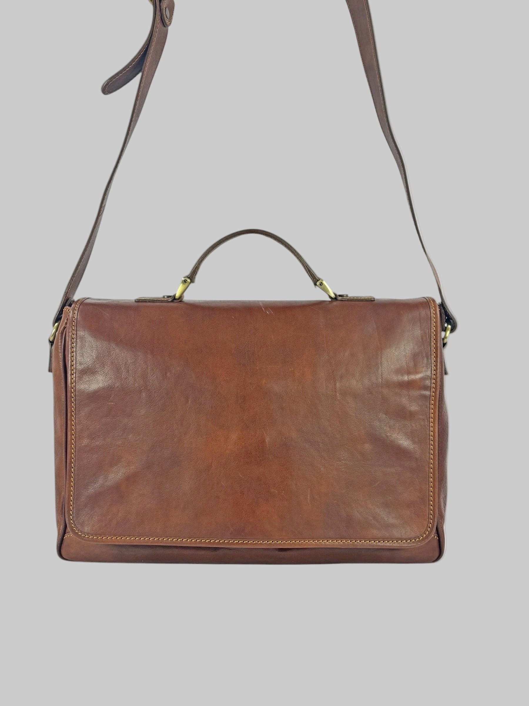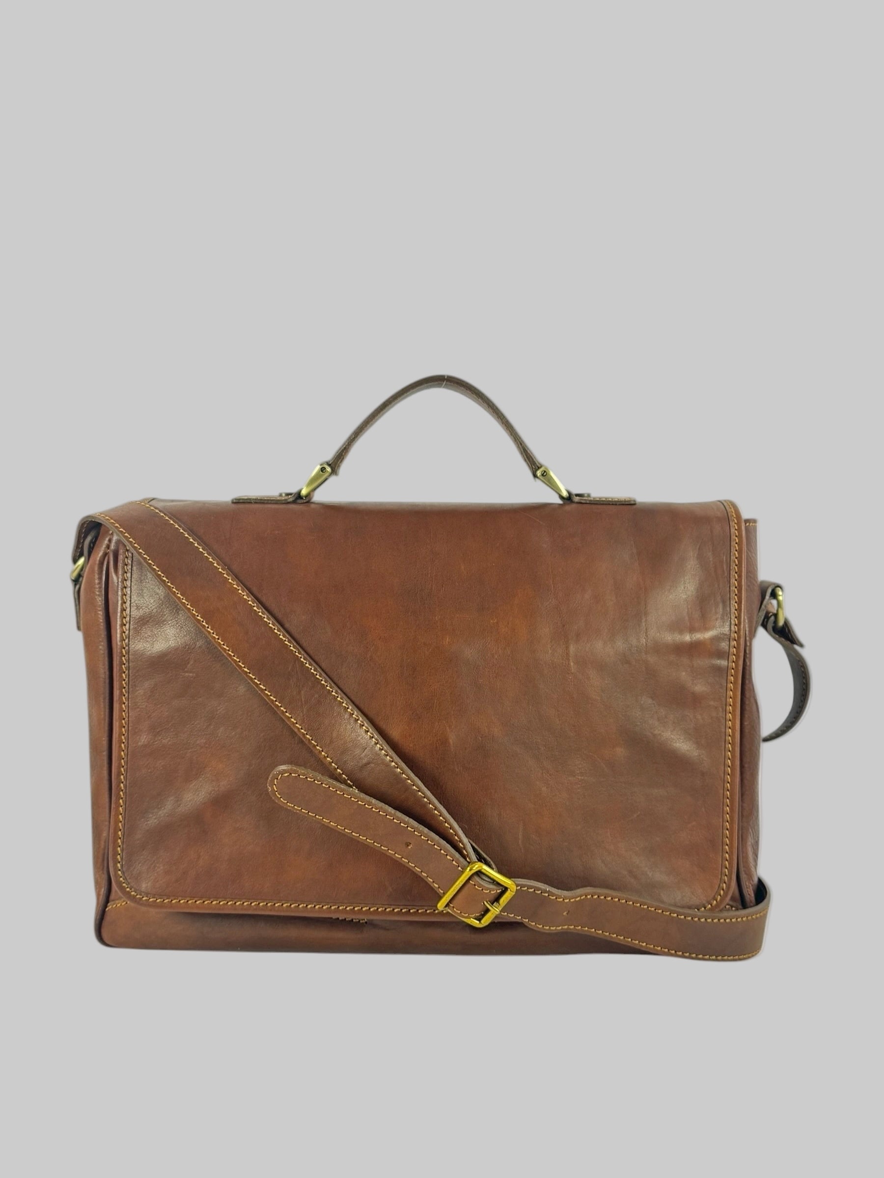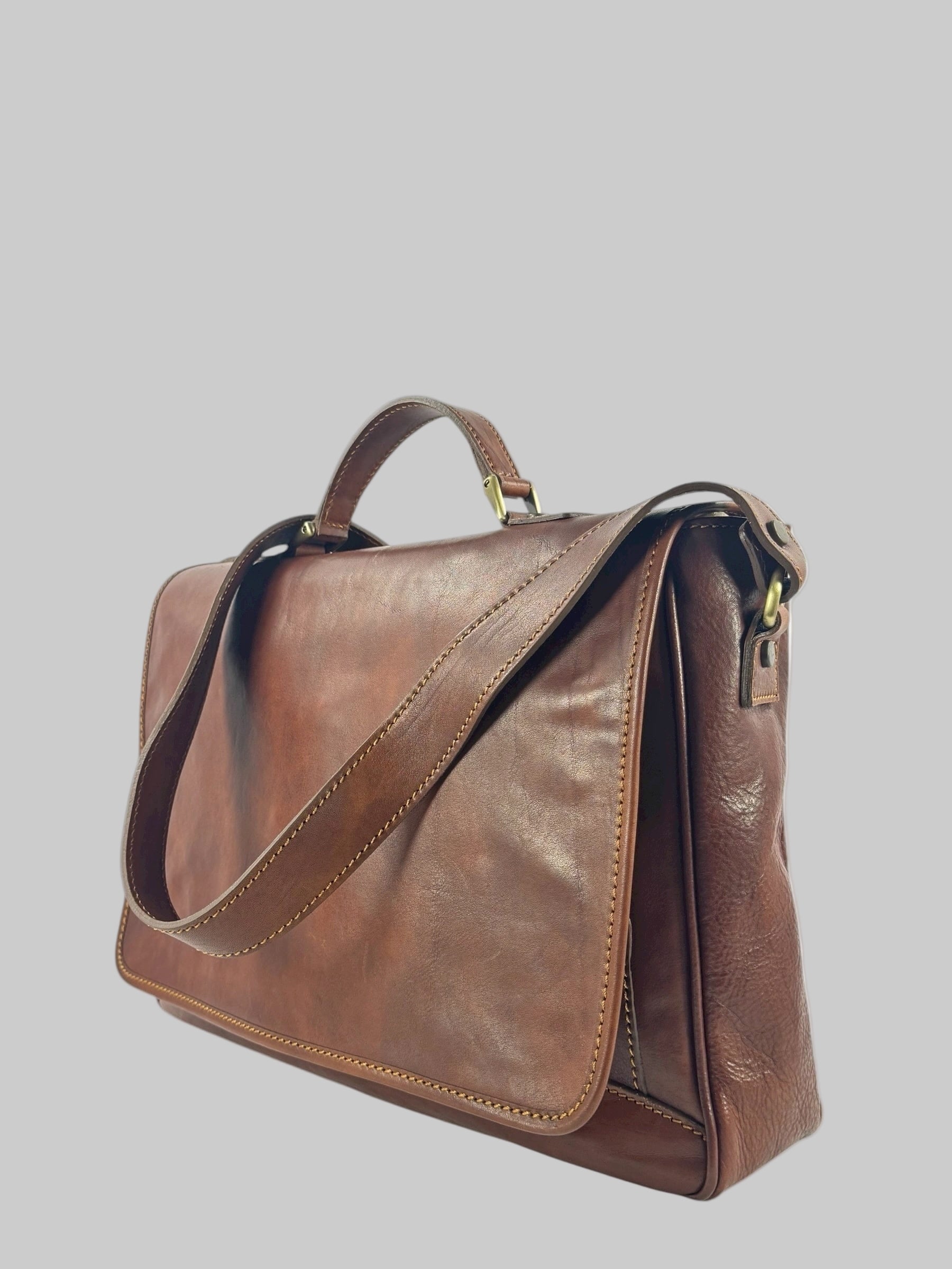 cartella e messenger in cuoio pieno fiore conciato al vegetale Savona - Mahzel