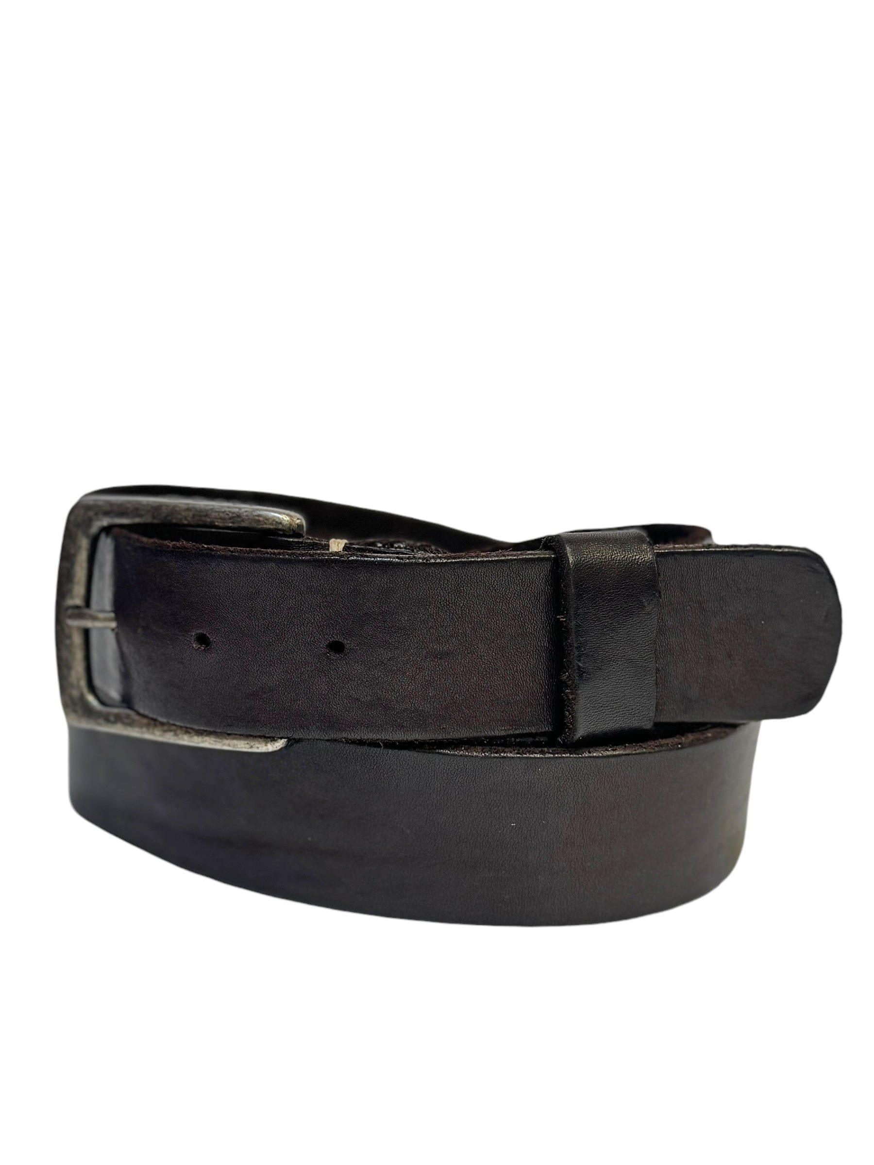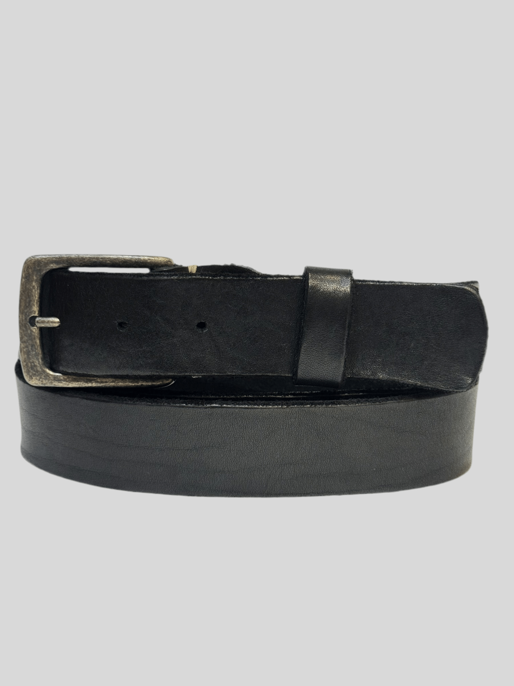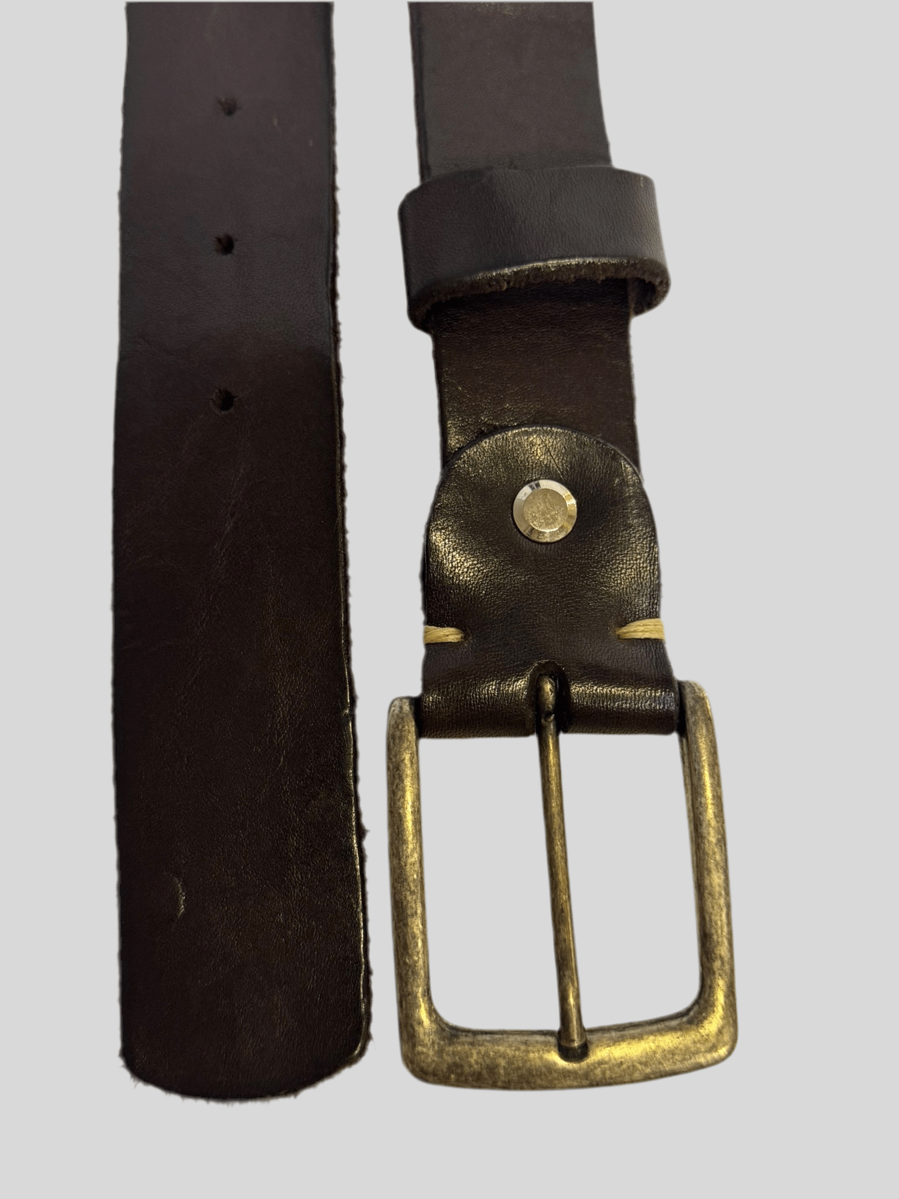 Cintura in cuoio tinta in capo, altezza 3.5 cm, fibbia anticata, rifinita con cuciture a mano, costruita in maniera artigianale con pellami di alta qualità
