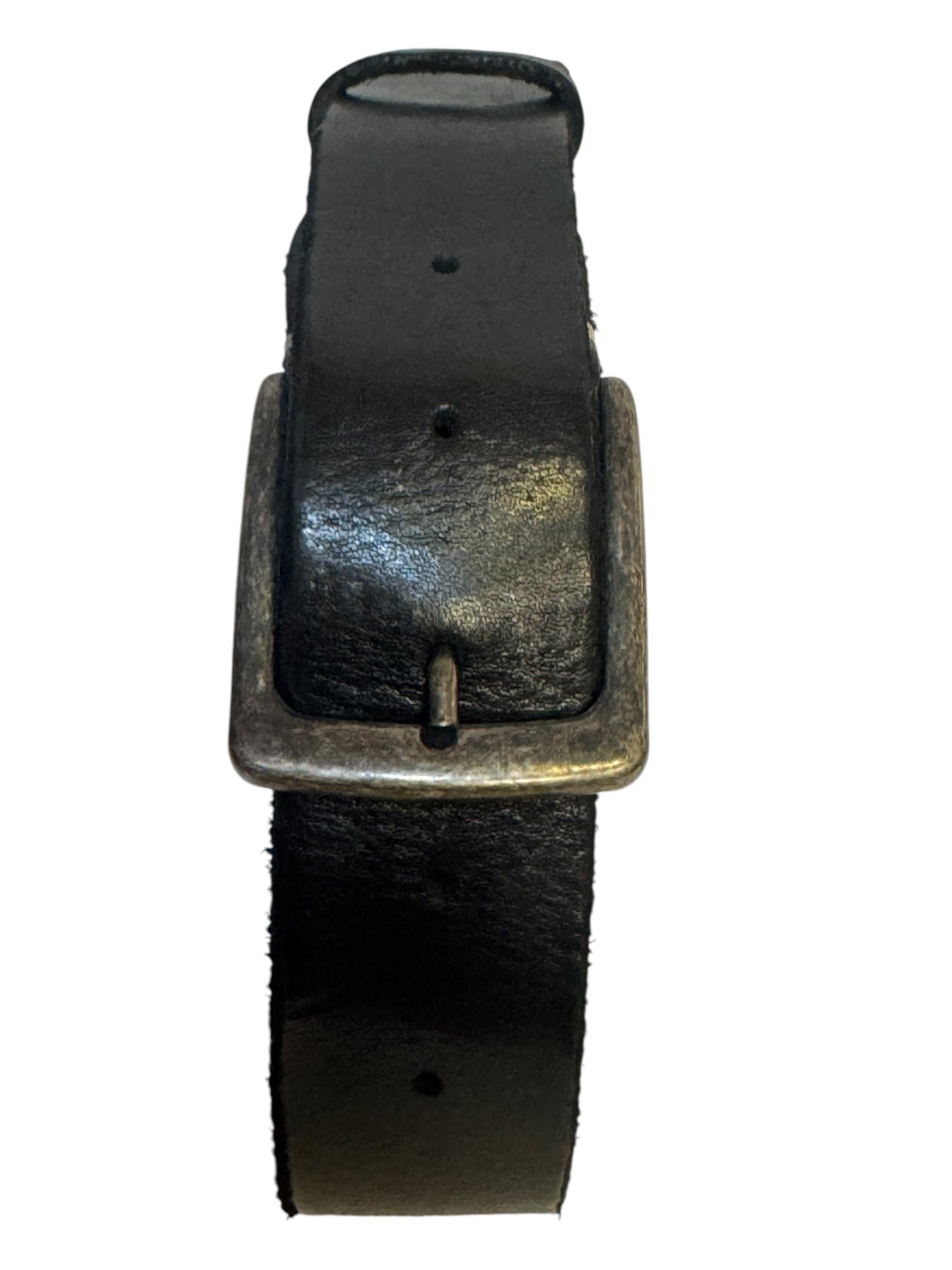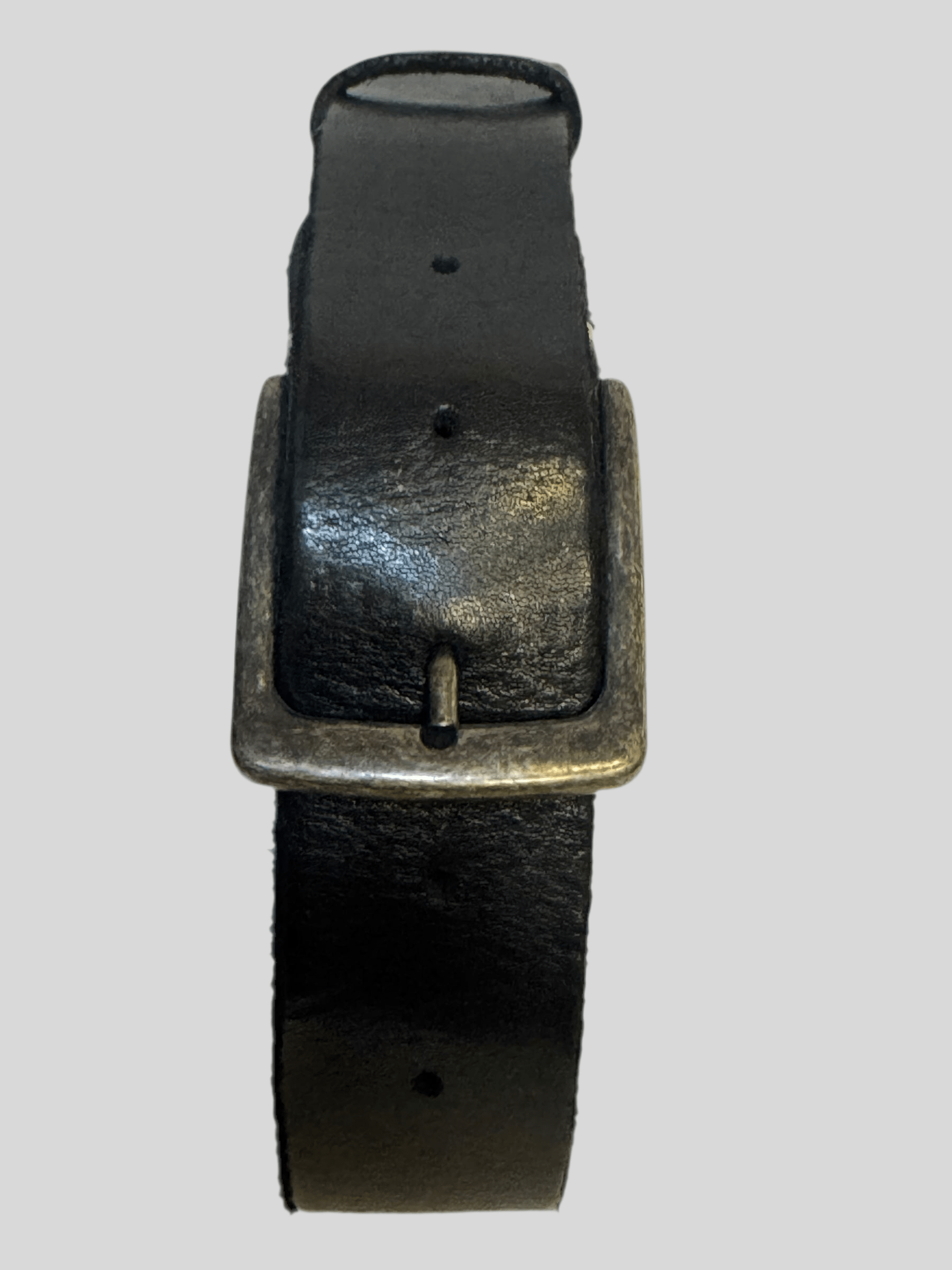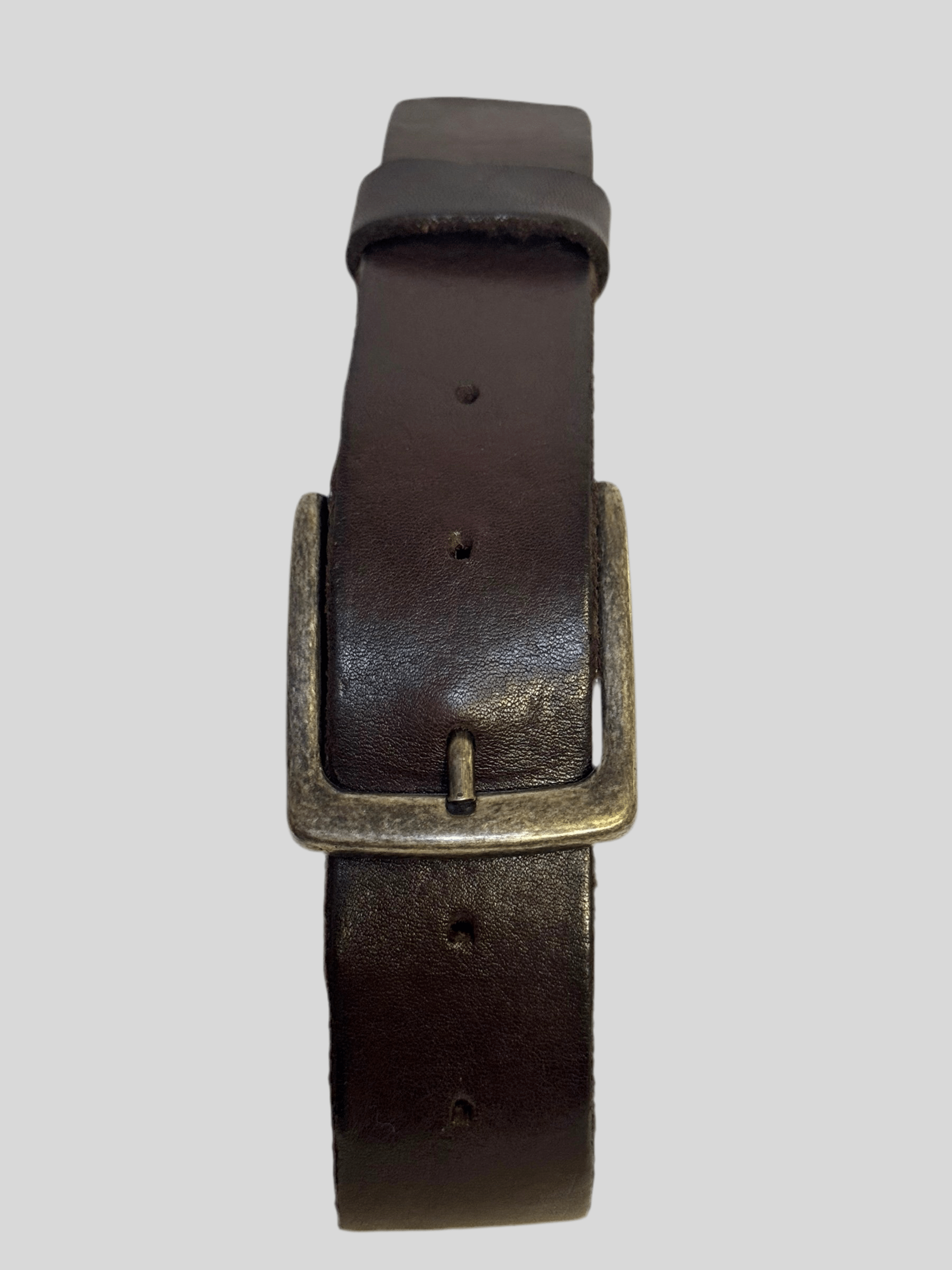 Cintura in cuoio tinta in capo, altezza 3.5 cm, fibbia anticata, rifinita con cuciture a mano, costruita in maniera artigianale con pellami di alta qualità