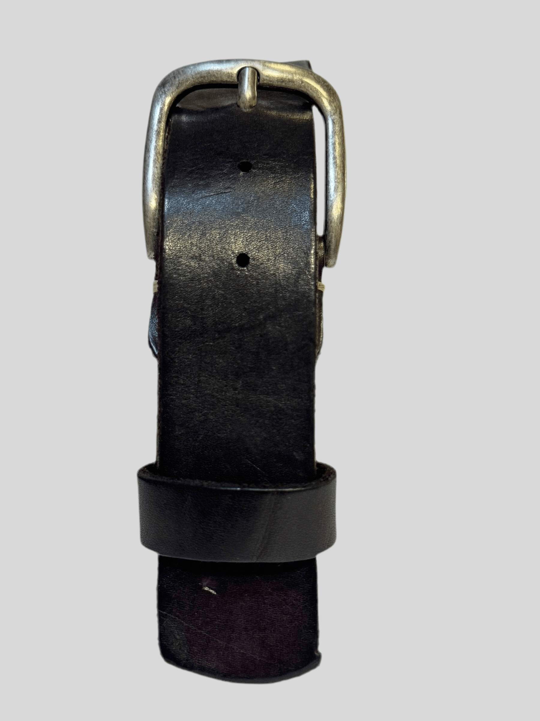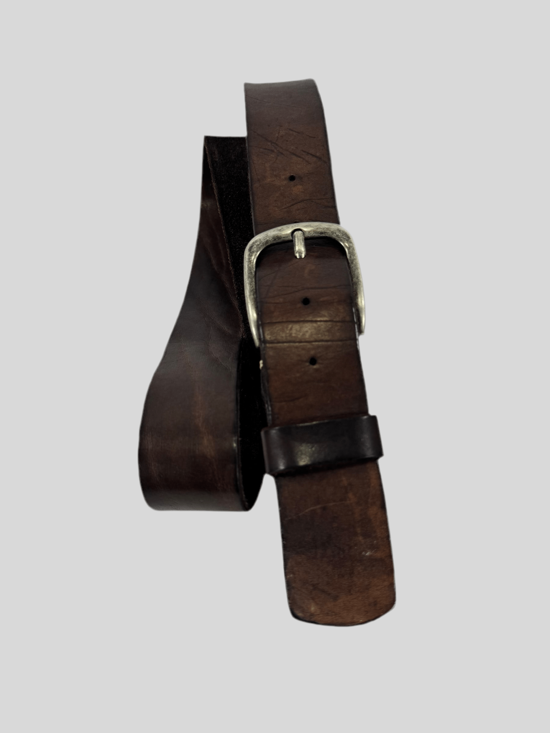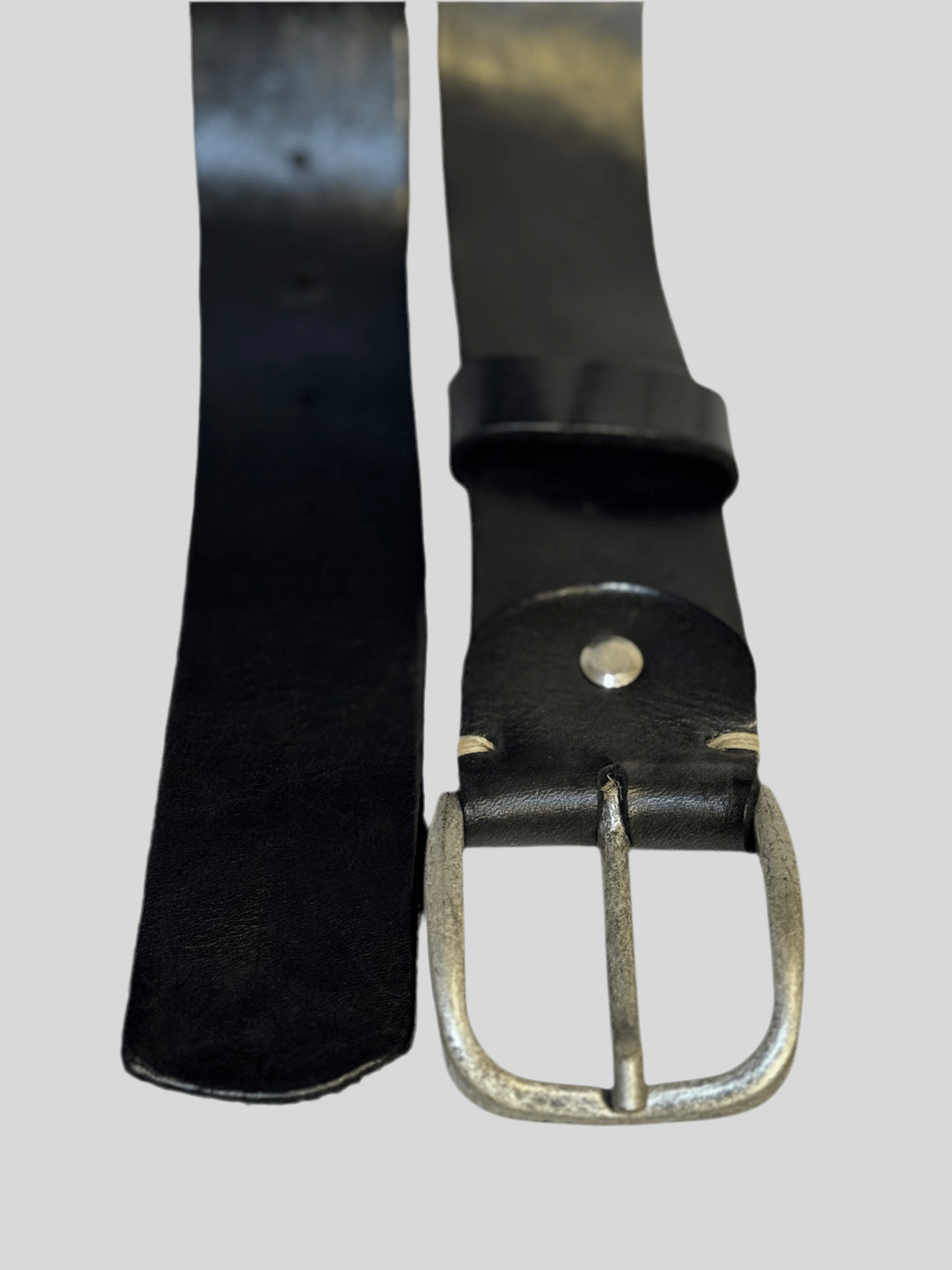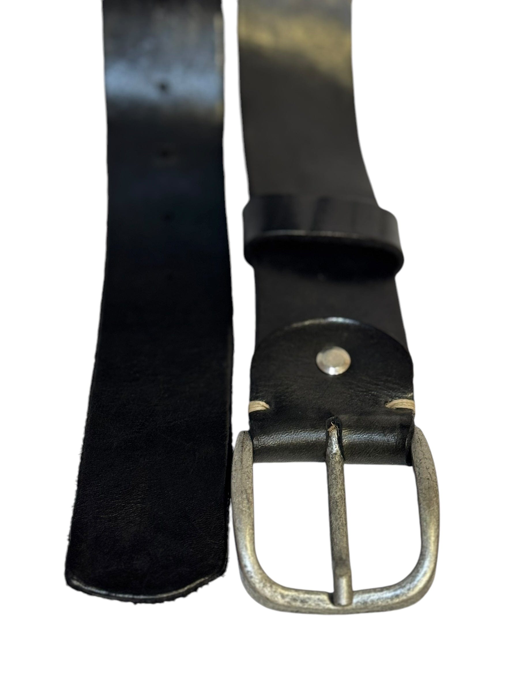 Cintura in cuoio tinta in capo, altezza 4 cm, fibbia anticata, rifinita con cuciture a mano, costruita in maniera artigianale con pellami di alta qualità
