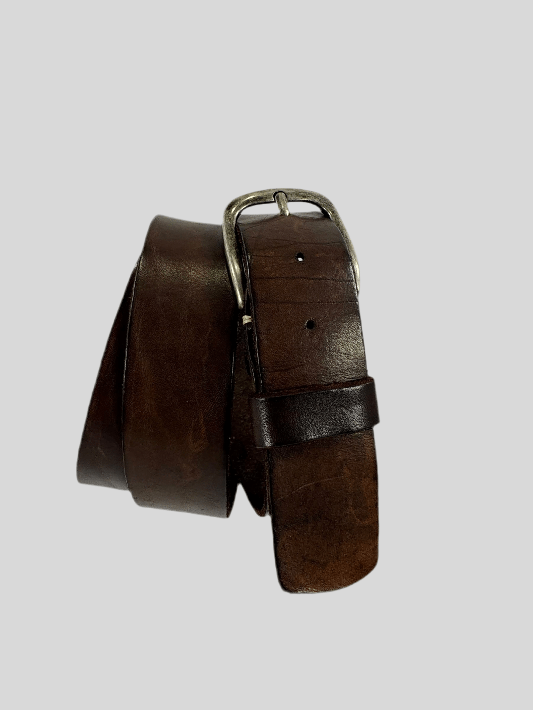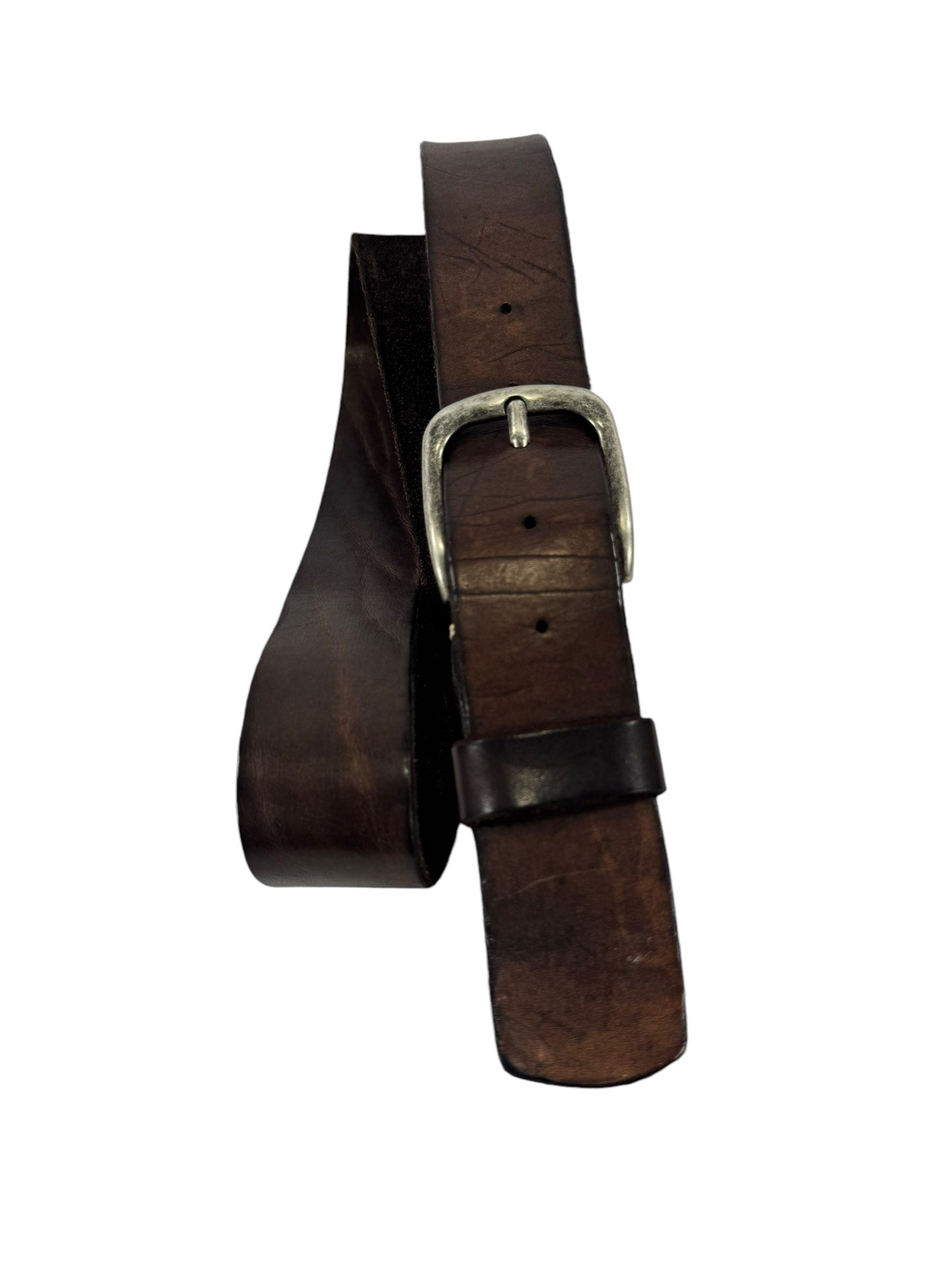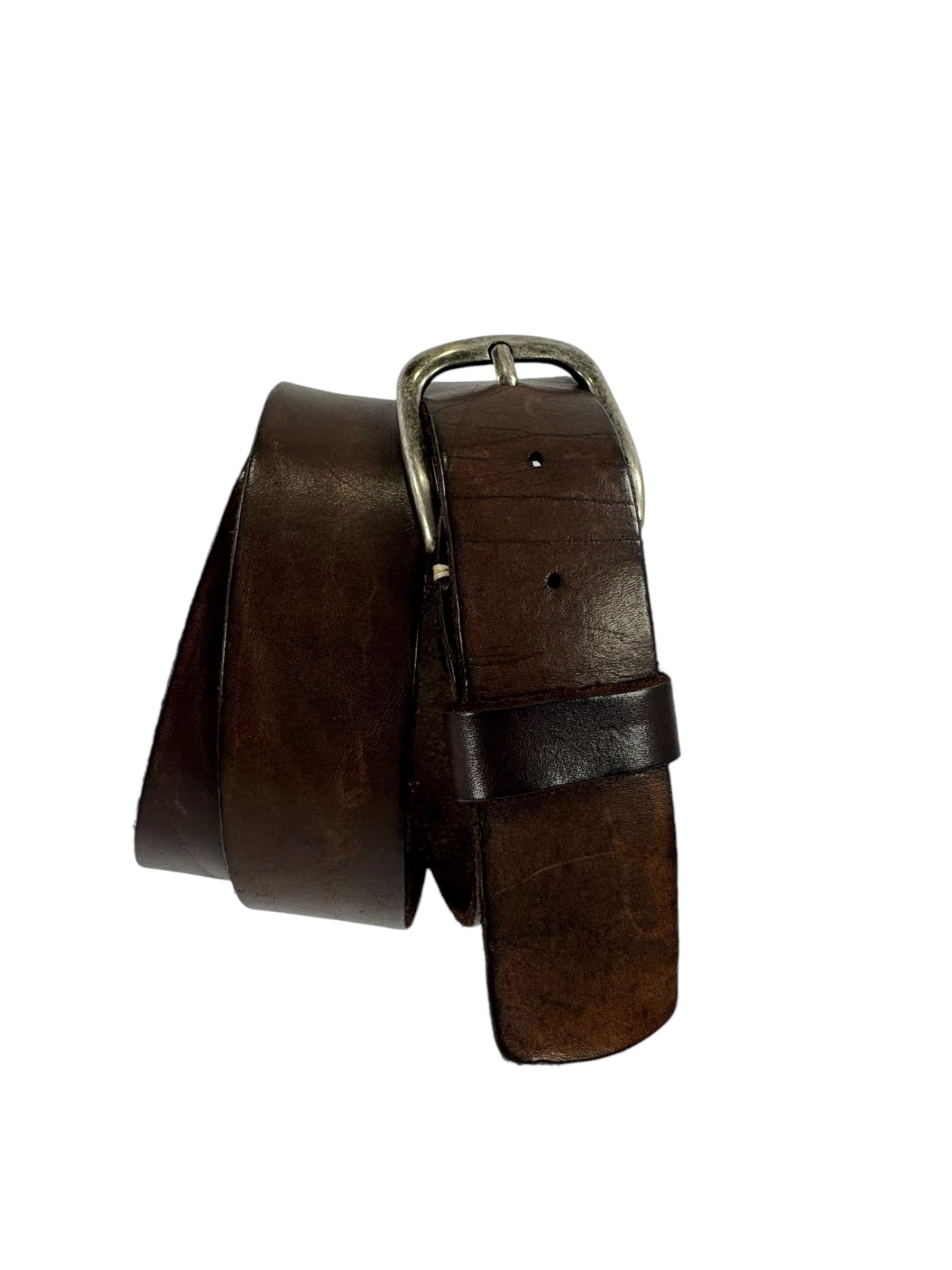 Cintura in cuoio tinta in capo, altezza 4 cm, fibbia anticata, rifinita con cuciture a mano, costruita in maniera artigianale con pellami di alta qualità