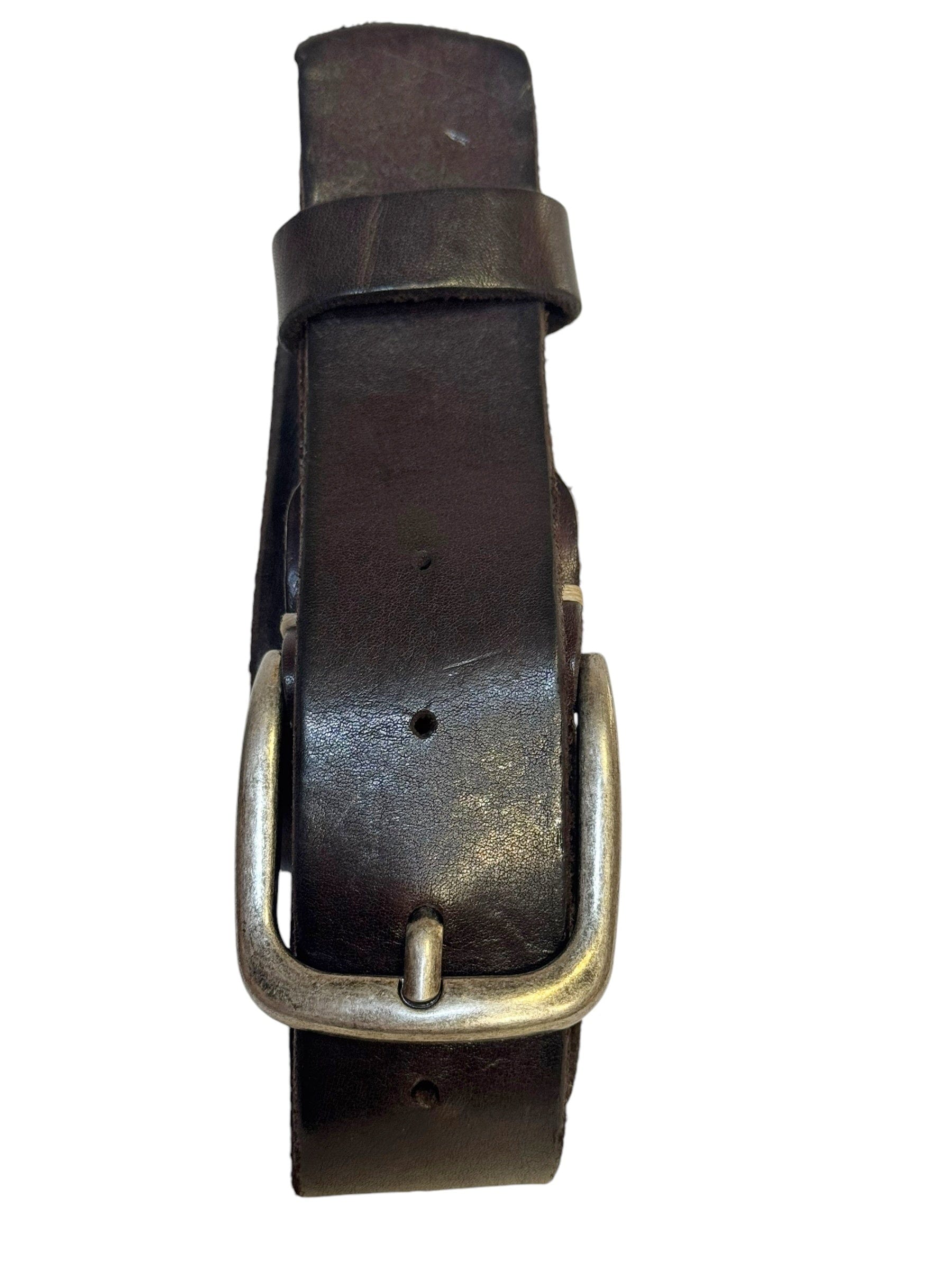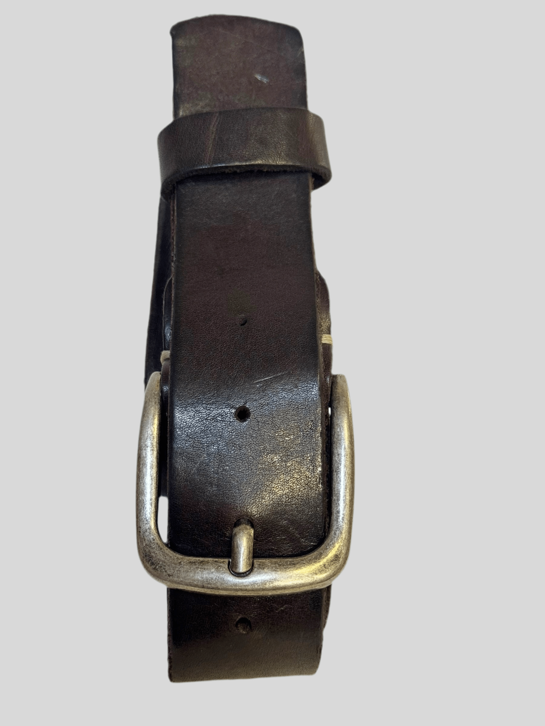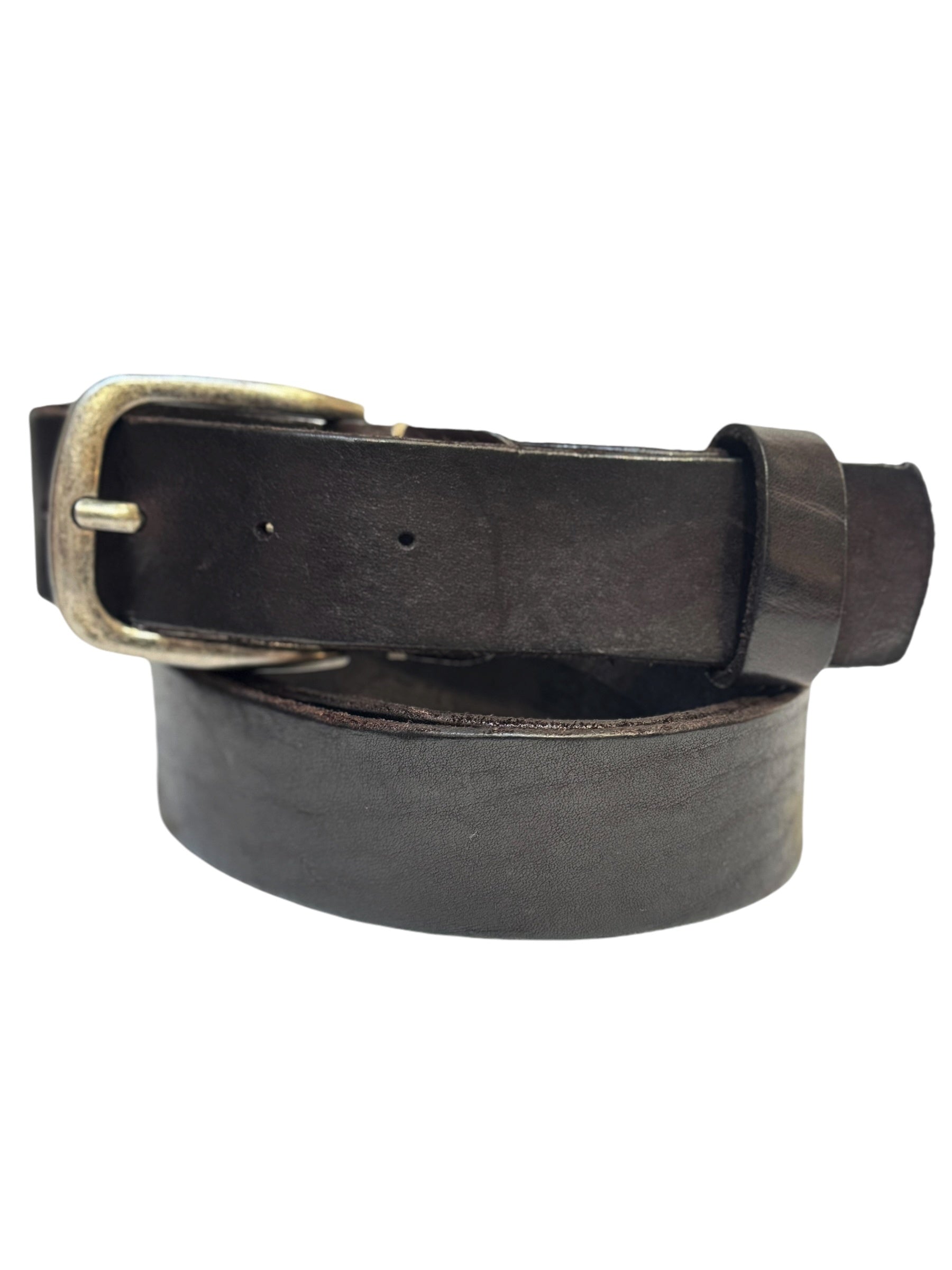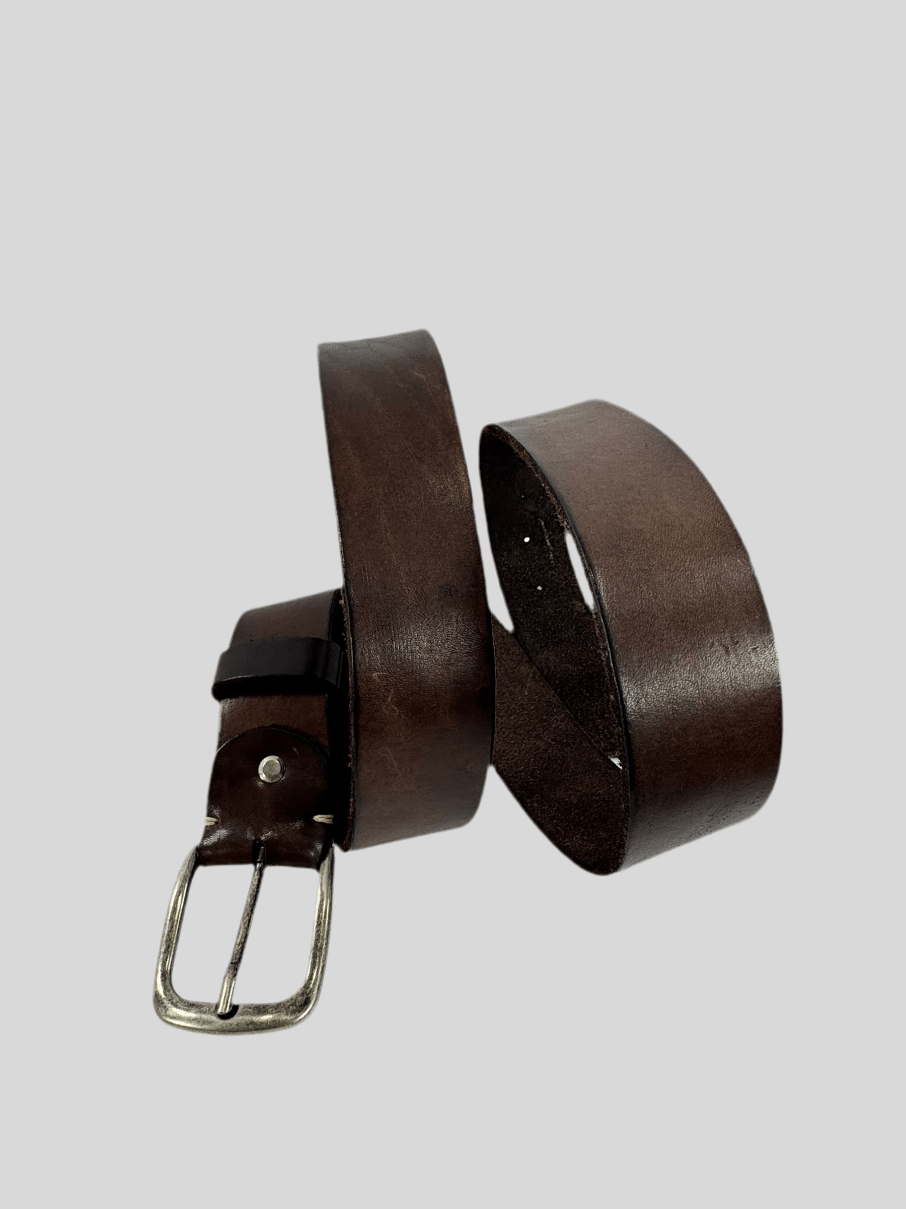 Cintura in cuoio tinta in capo, altezza 4 cm, fibbia anticata, rifinita con cuciture a mano, costruita in maniera artigianale con pellami di alta qualità