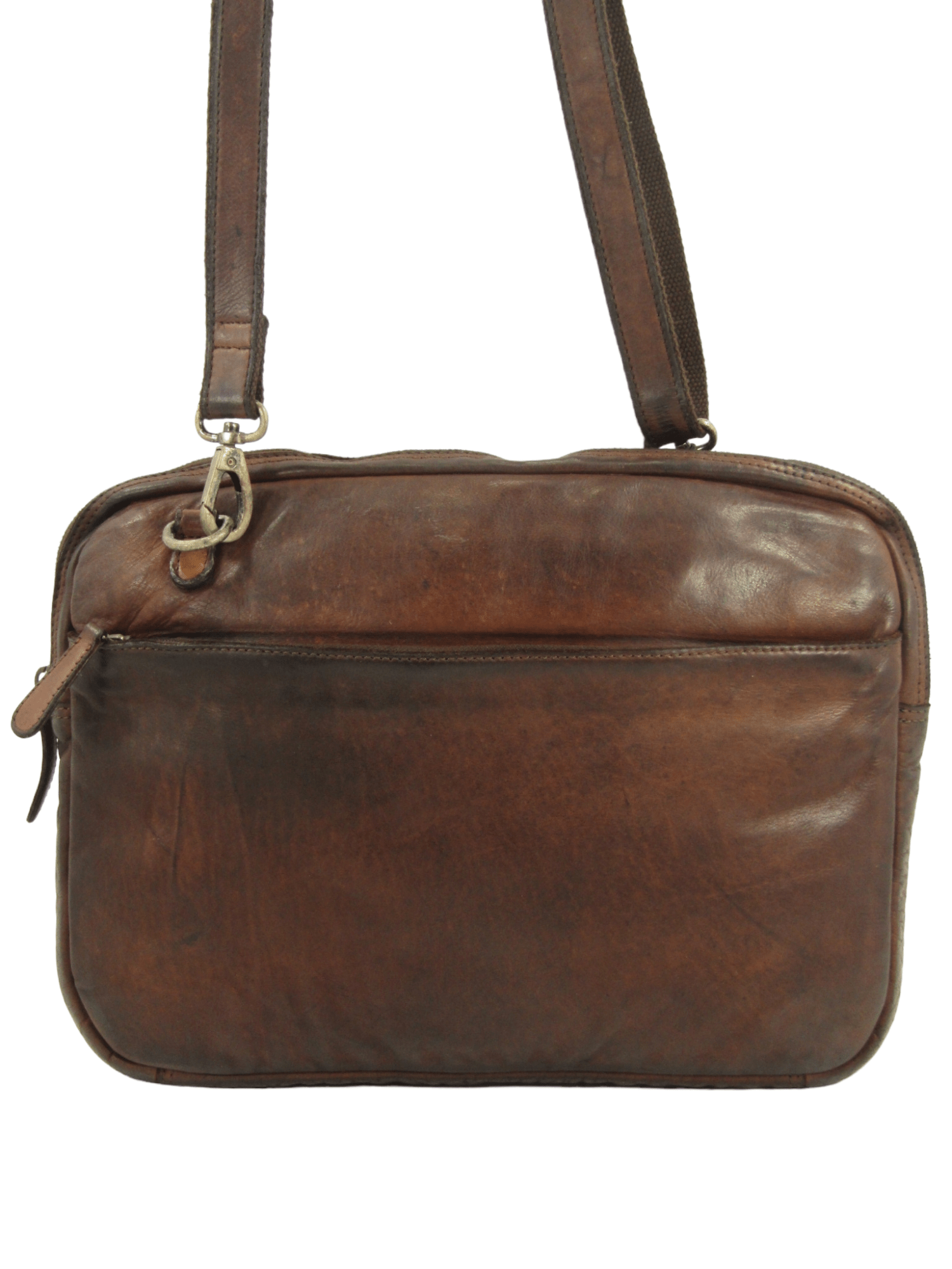 Porta documenti e laptop 14 pollici, interno imbottito rivestito ed accessoriato con tasca chiusa da zip e tasca aperta, la tracolla è removibile, sull'esterno altra tasca chiusa da zip, borsa costruita con pellami di alta qualità