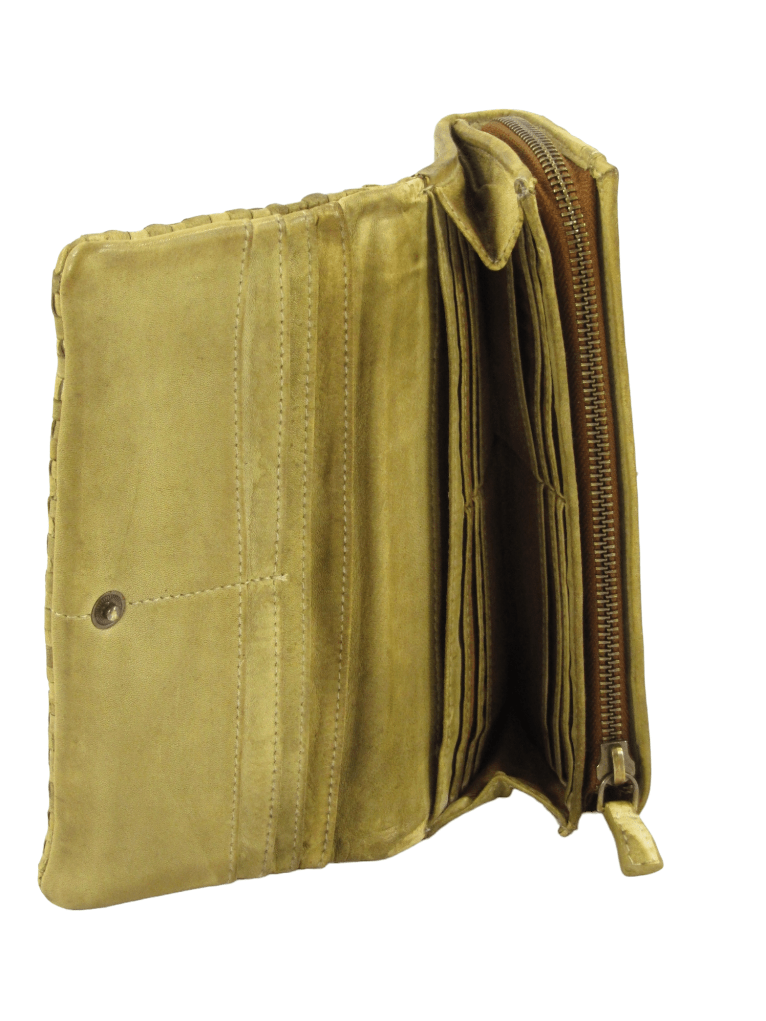 Il nostro portafoglio in pelle intrecciata è elegante, funzionale e di alta qualità. Dotato di tasche per carte e documenti, e di una tasca con zip per i contanti, è l'accessorio perfetto per tenere tutto organizzato e al sicuro. Aggiungi un tocco di stile al tuo quotidiano con questo portafoglio raffinato.