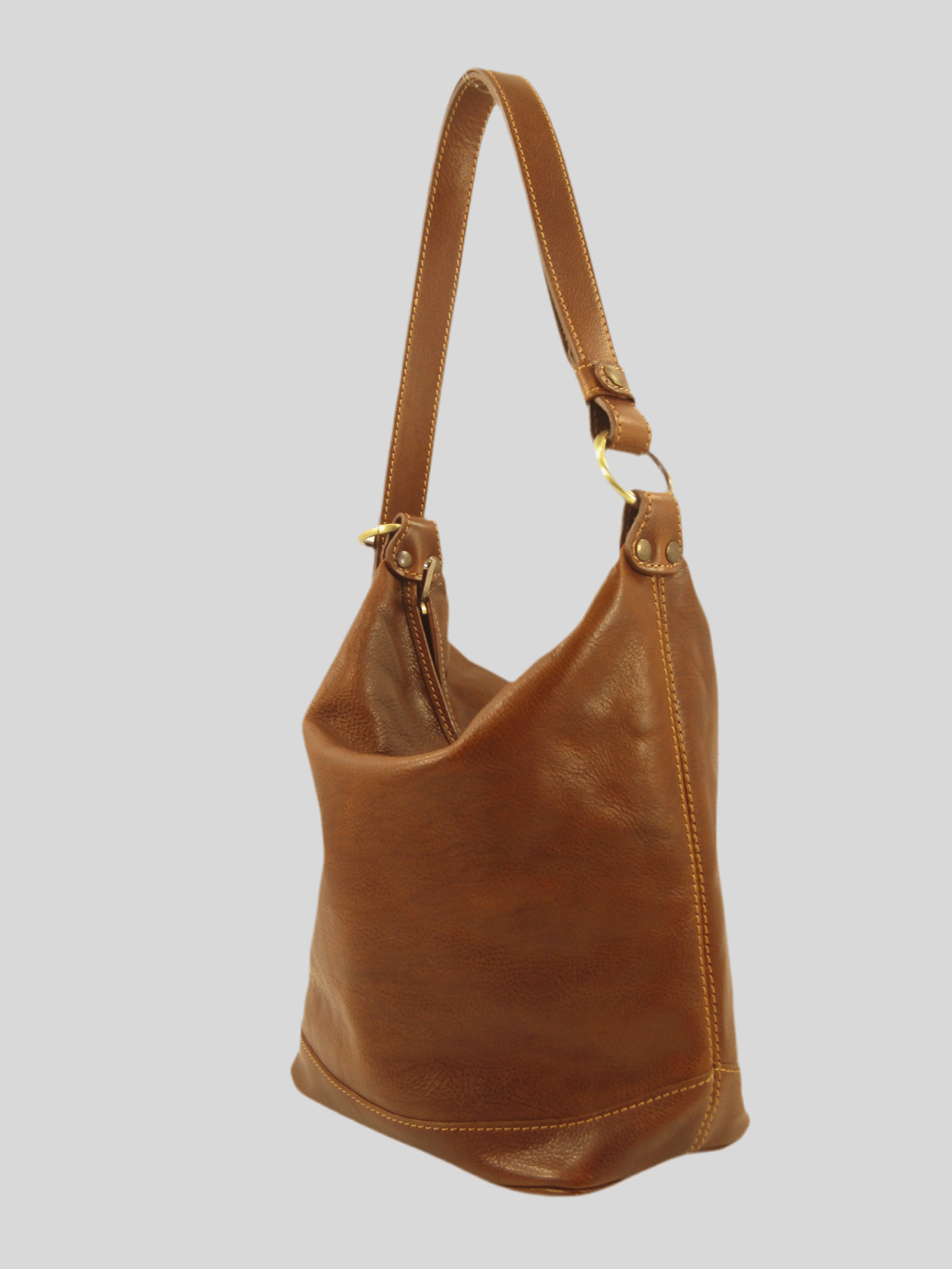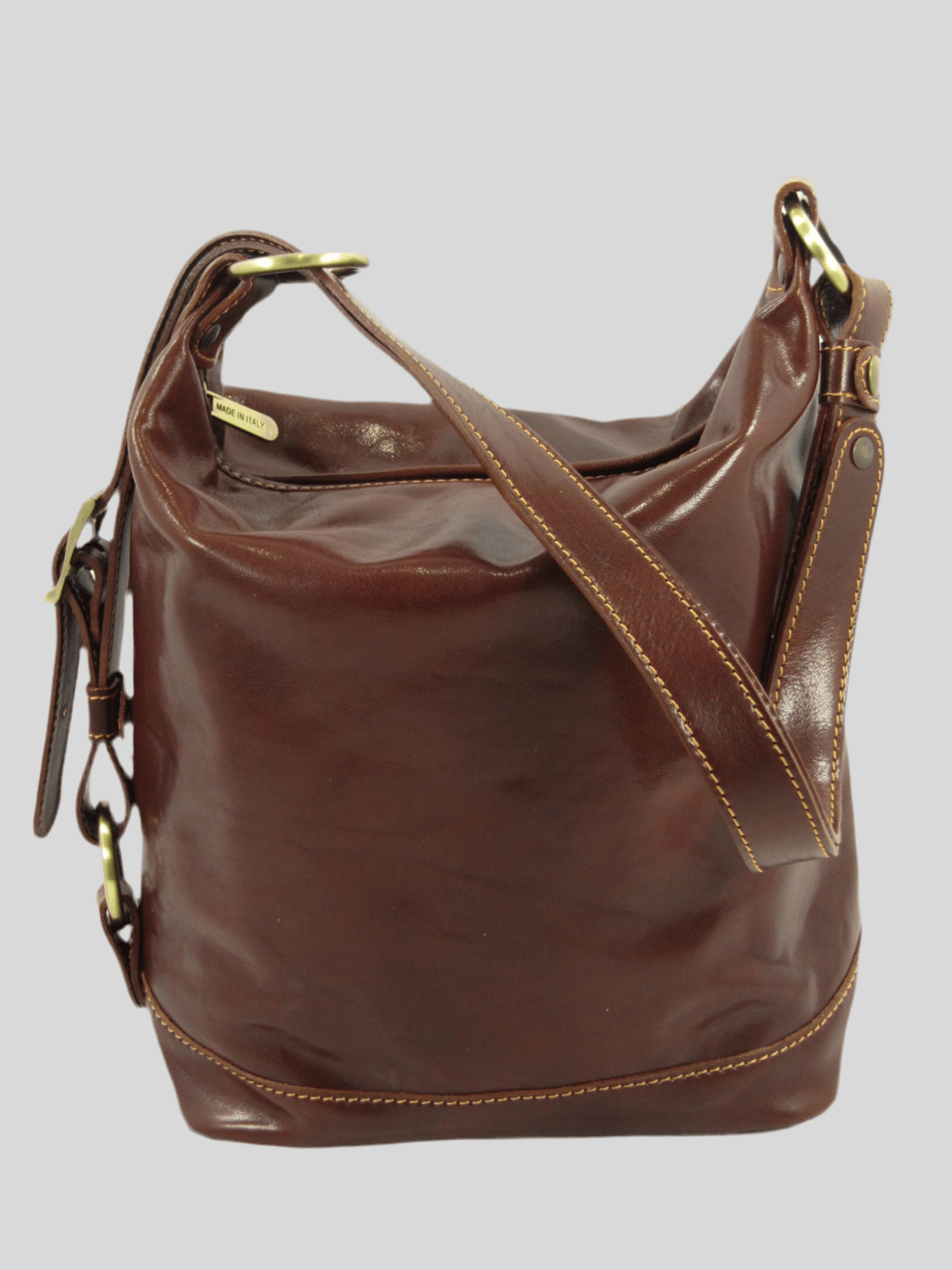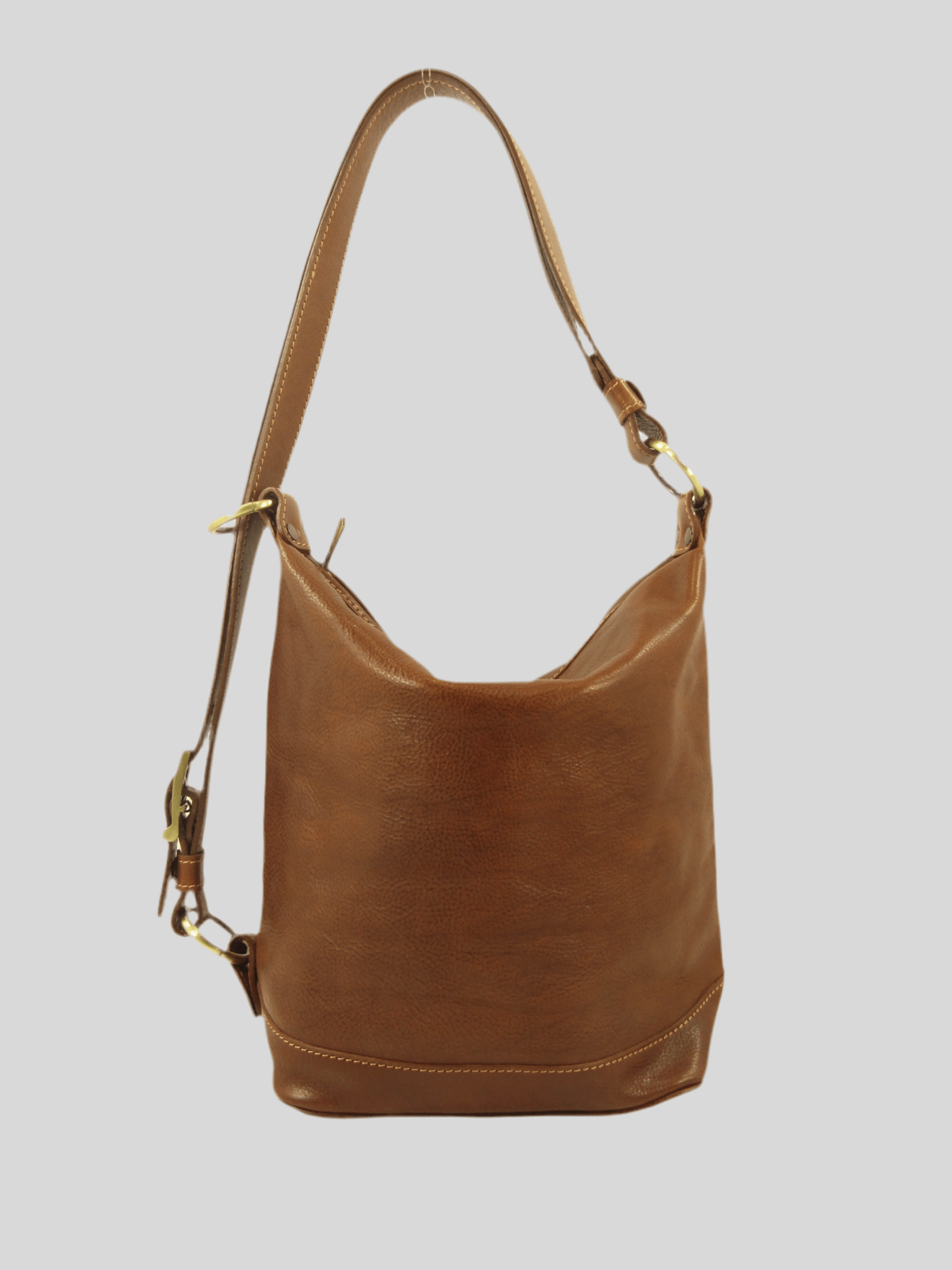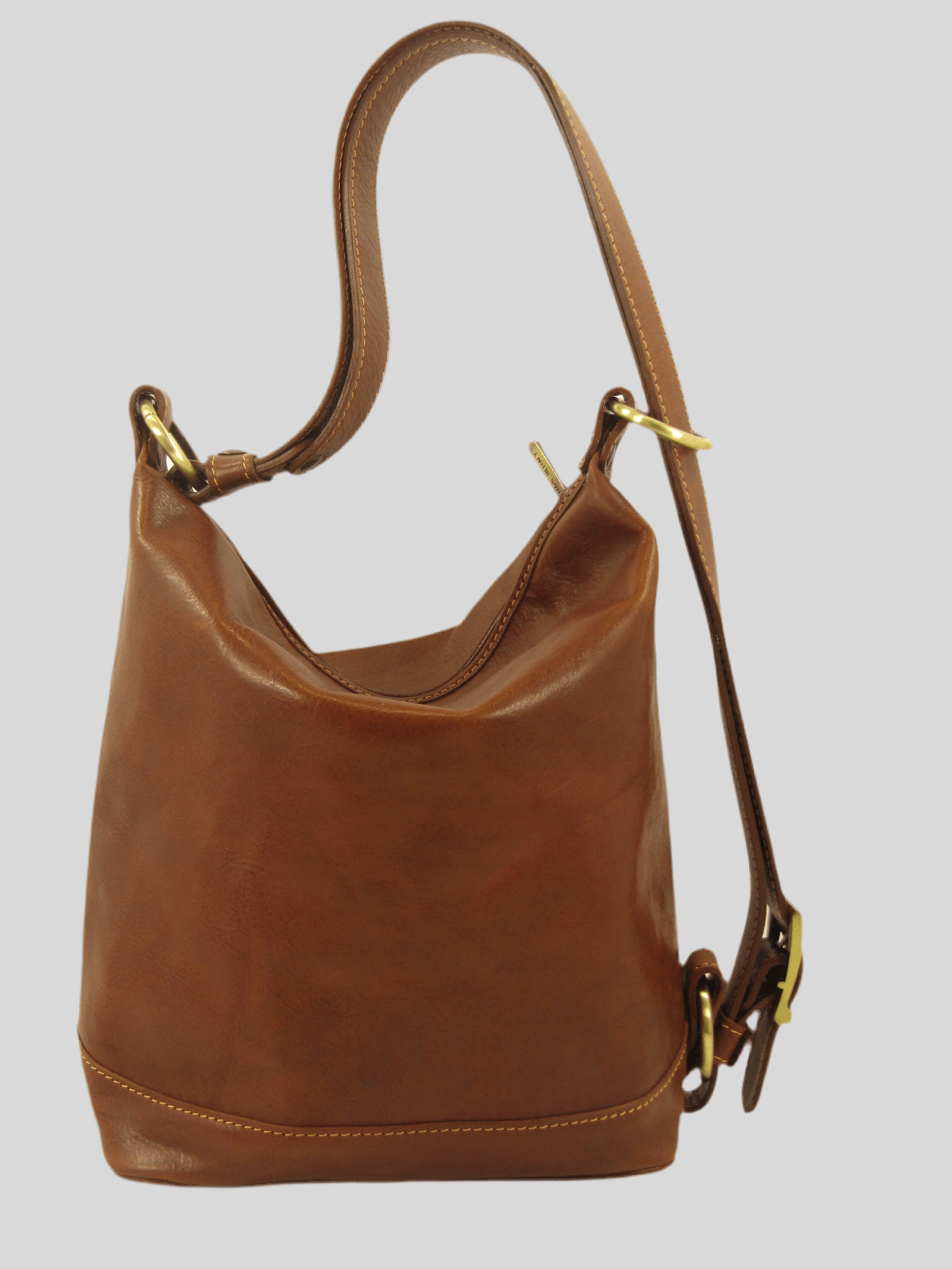secchiello in cuoio conciato al vegetale, versatile, tracolla regolabile chiusura con zip, interno foderato dove troviamo due taschini porta accessori ed una tasca chiusa da zip, costruito in maniera artigianale da veri maestri del cuoio