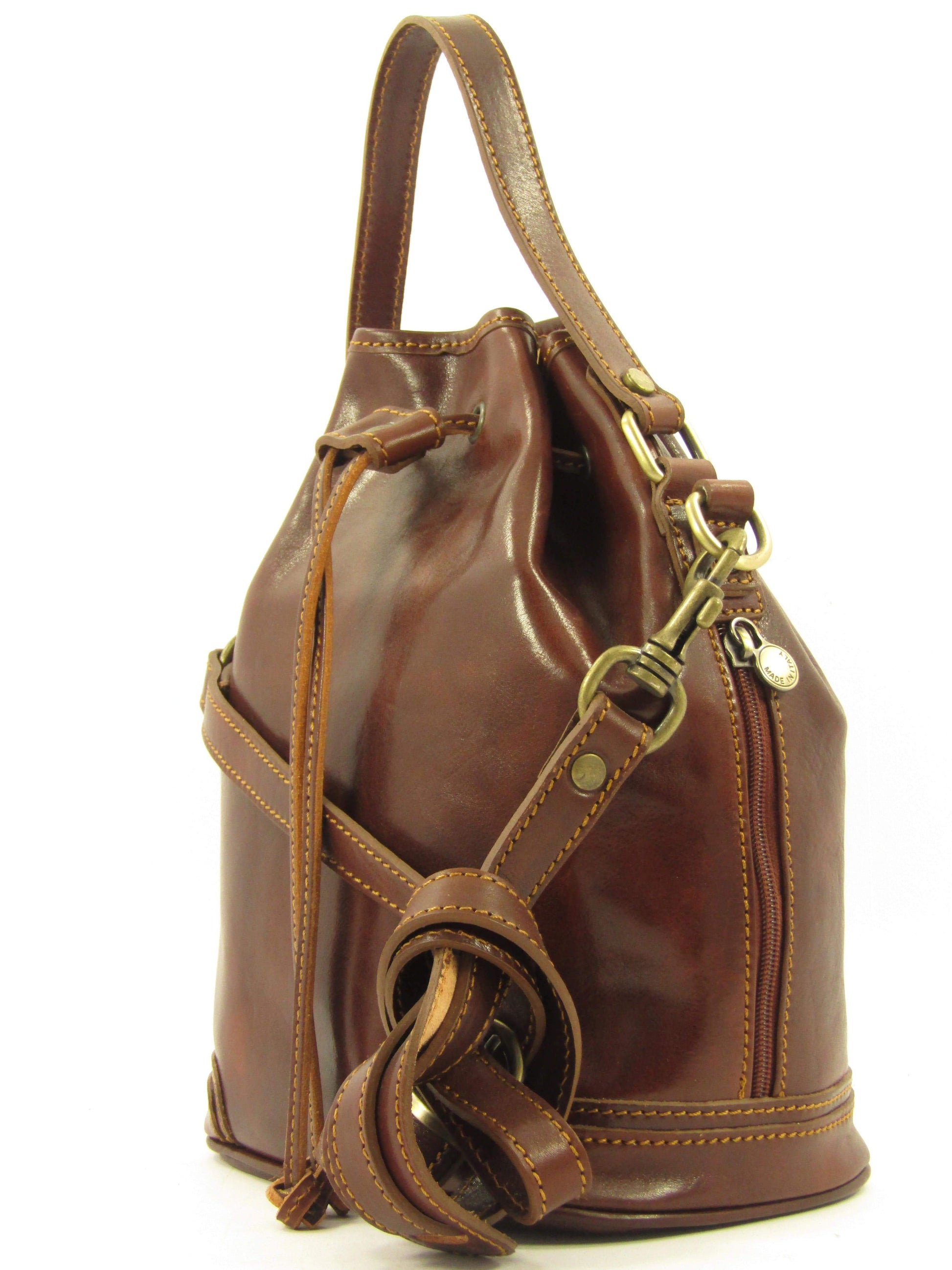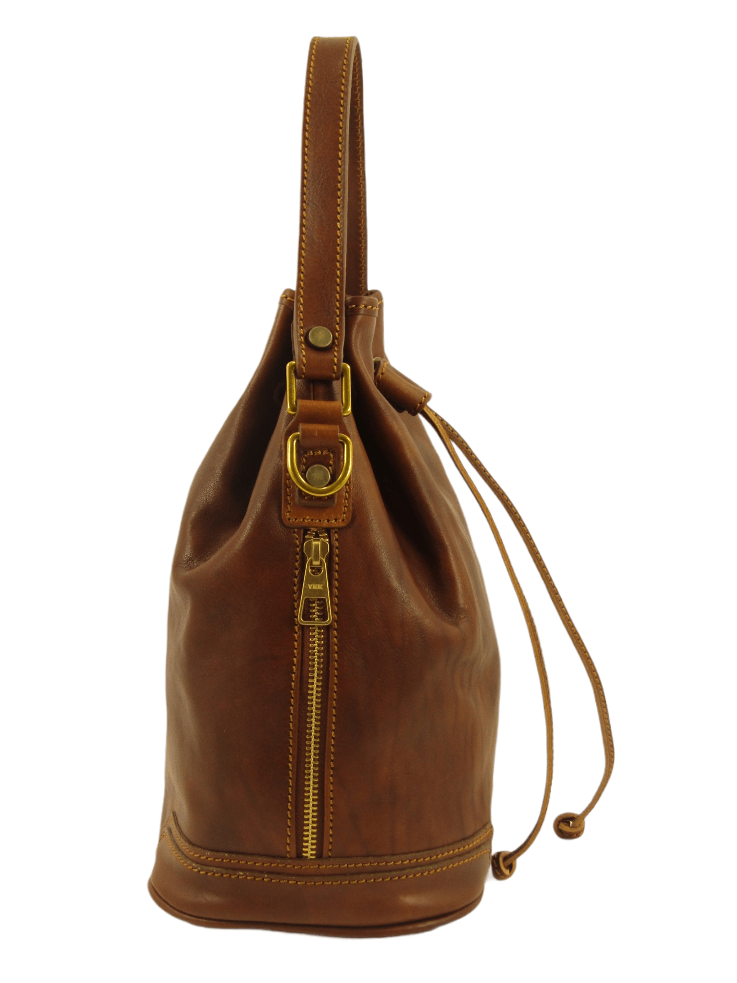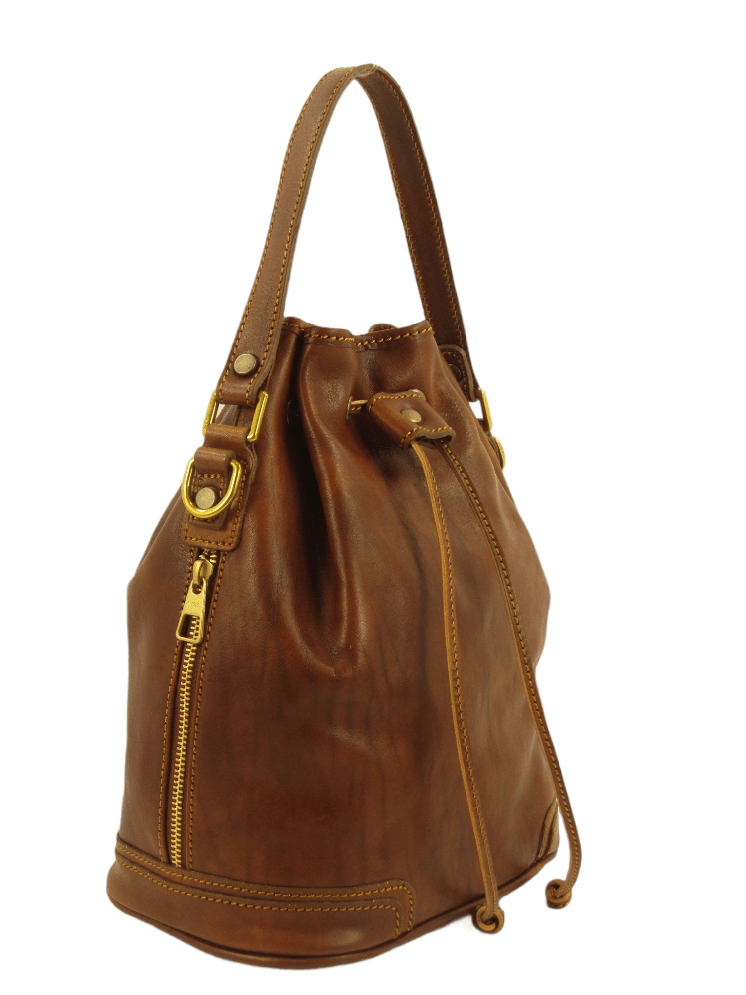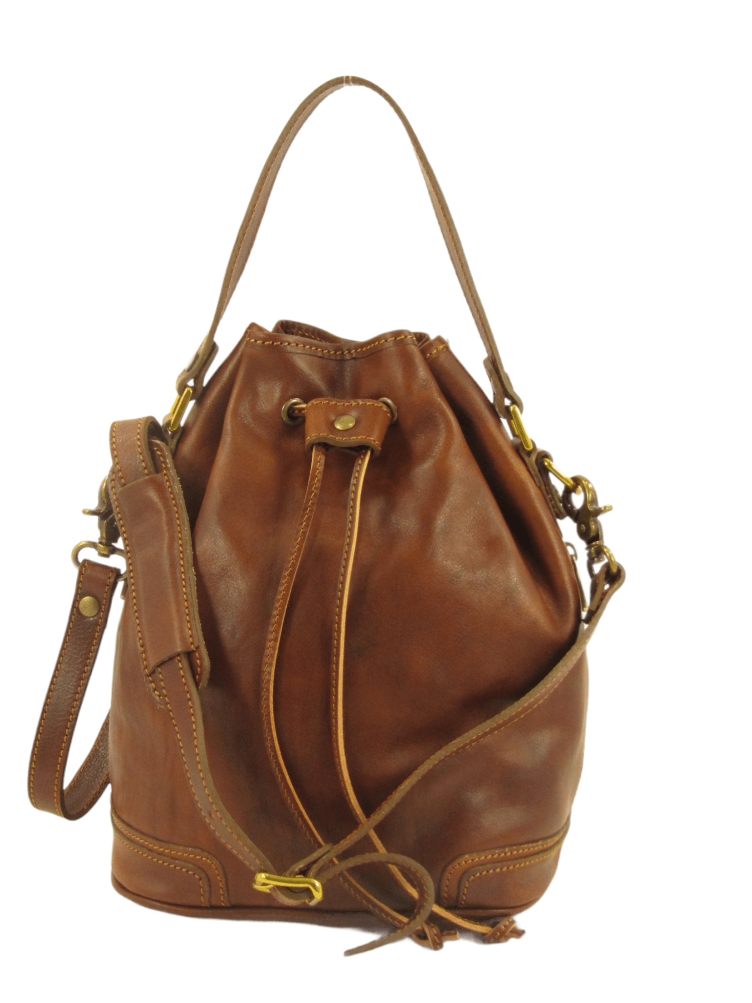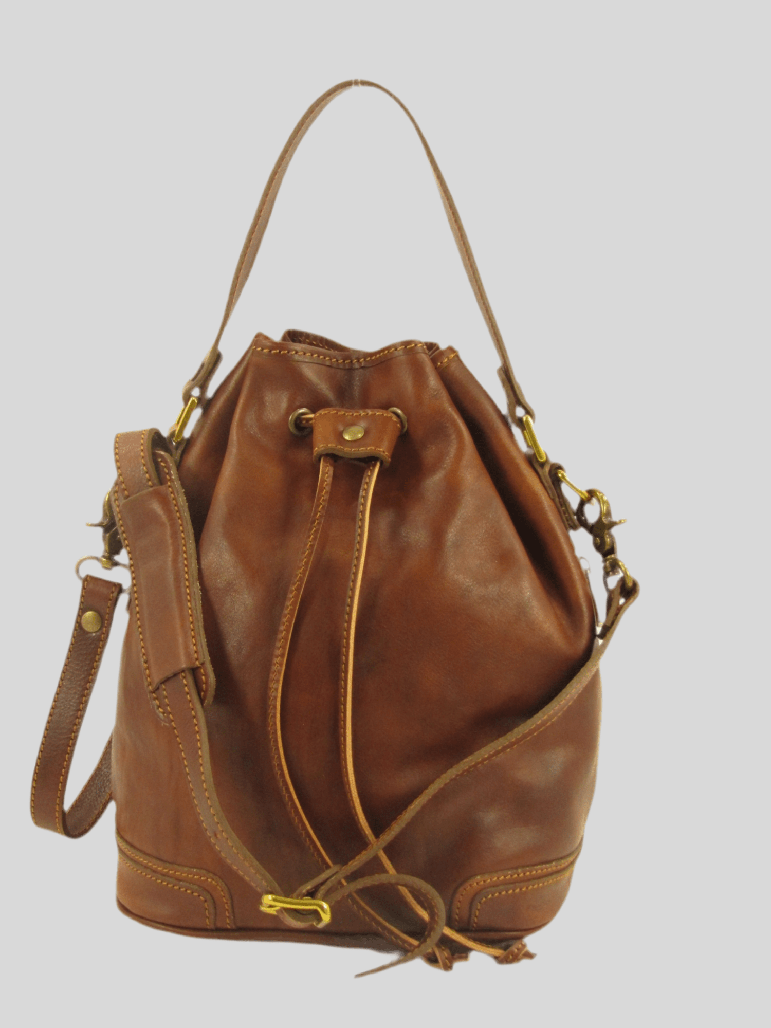 Secchiello in cuoio conciato al vegetale e tamponato a mano, chiusura con laccetto in pelle, borsa bella e comoda, costruita con pellami di pregio in maniera artigianale, accessorio che non teme il passare del tempo ne come linee ne come materiale e costruzione, tracolla in pelle regolabile e rimovibile, interno rivestito ed accessoriato, tasche esterne
