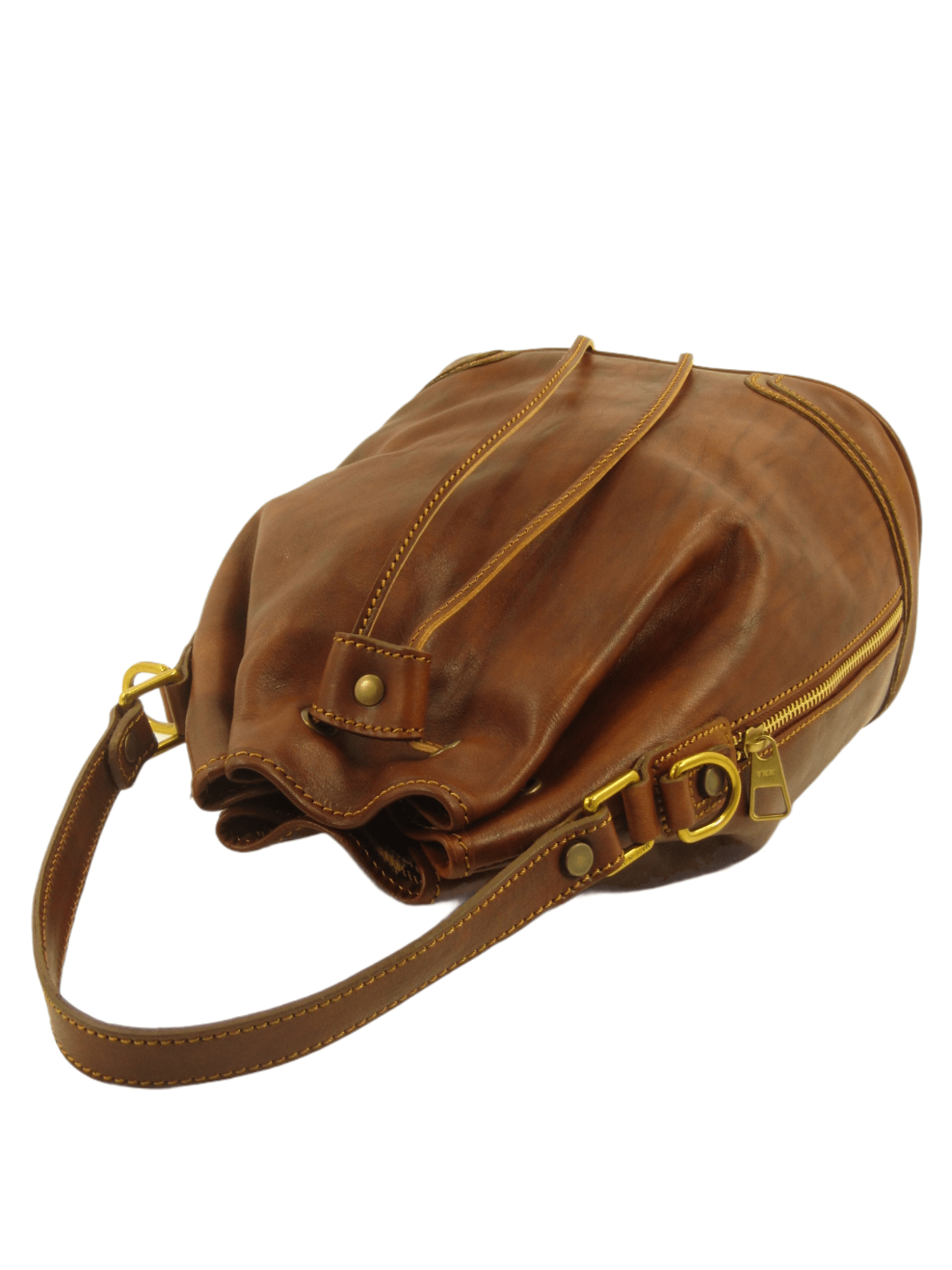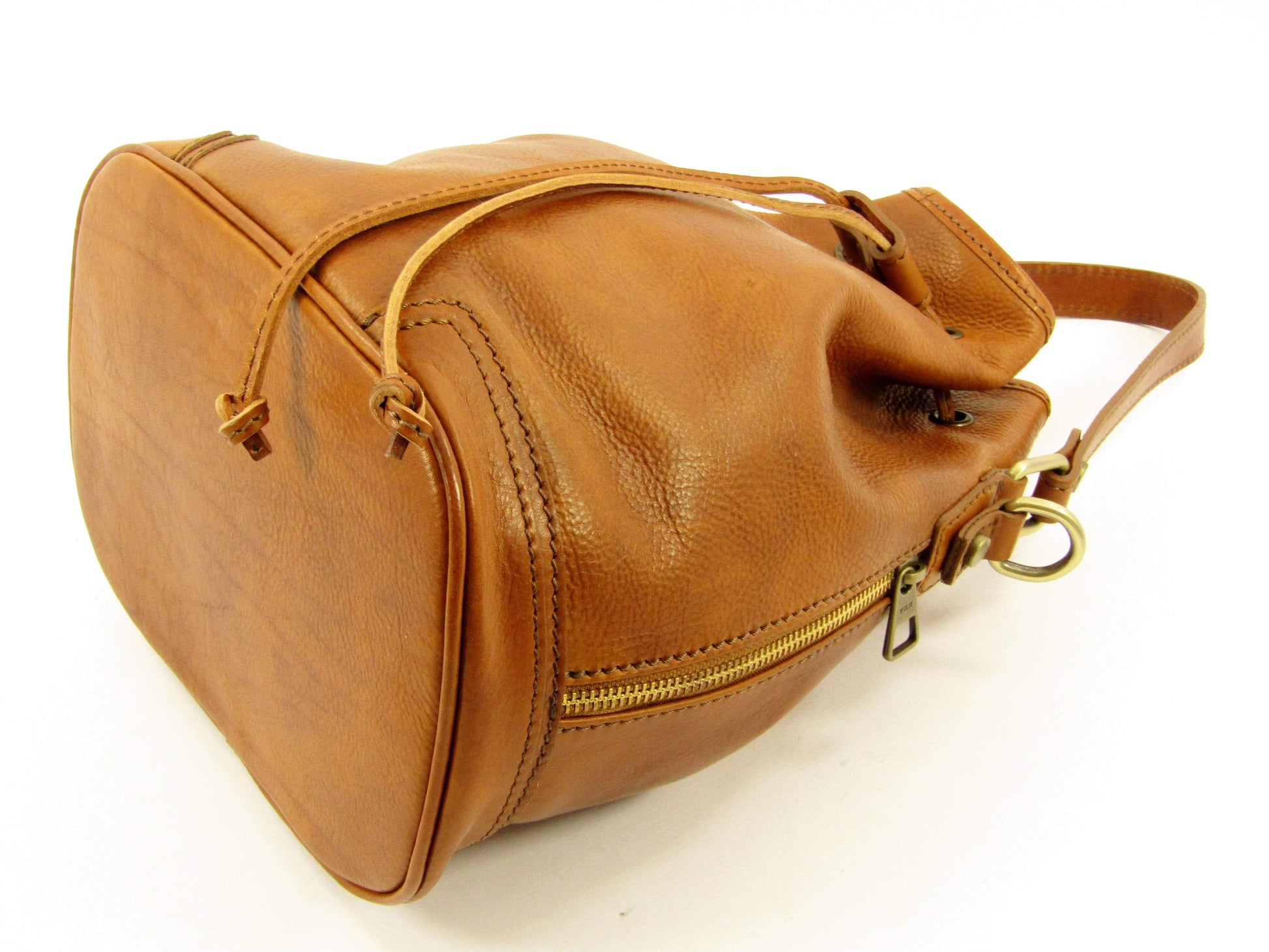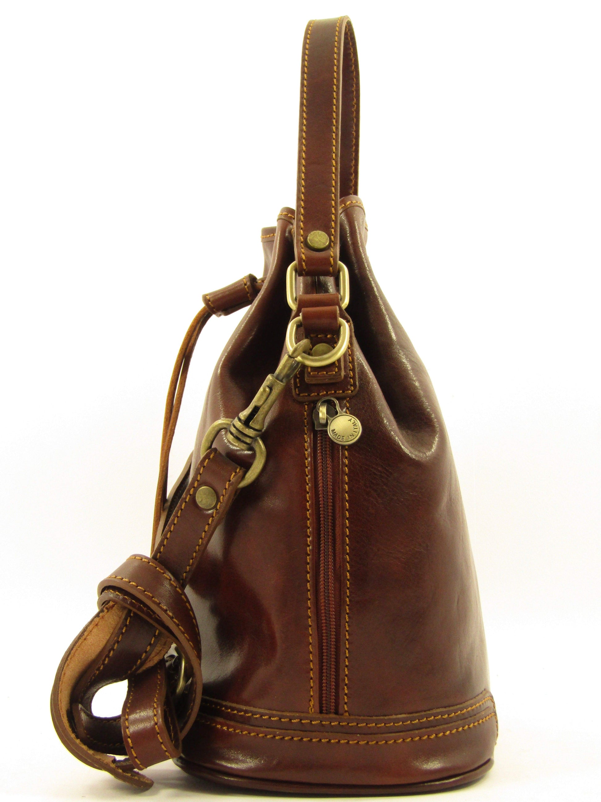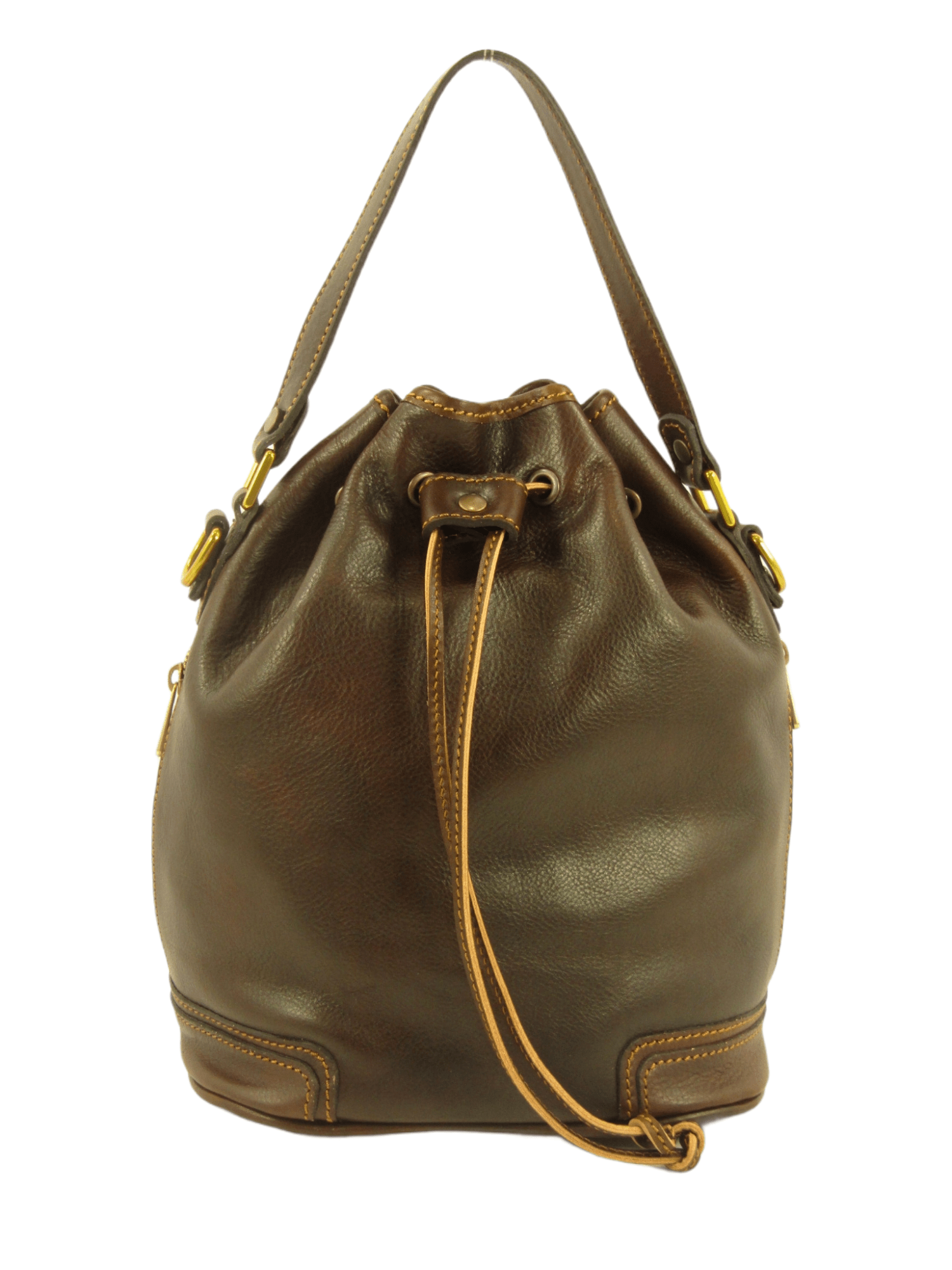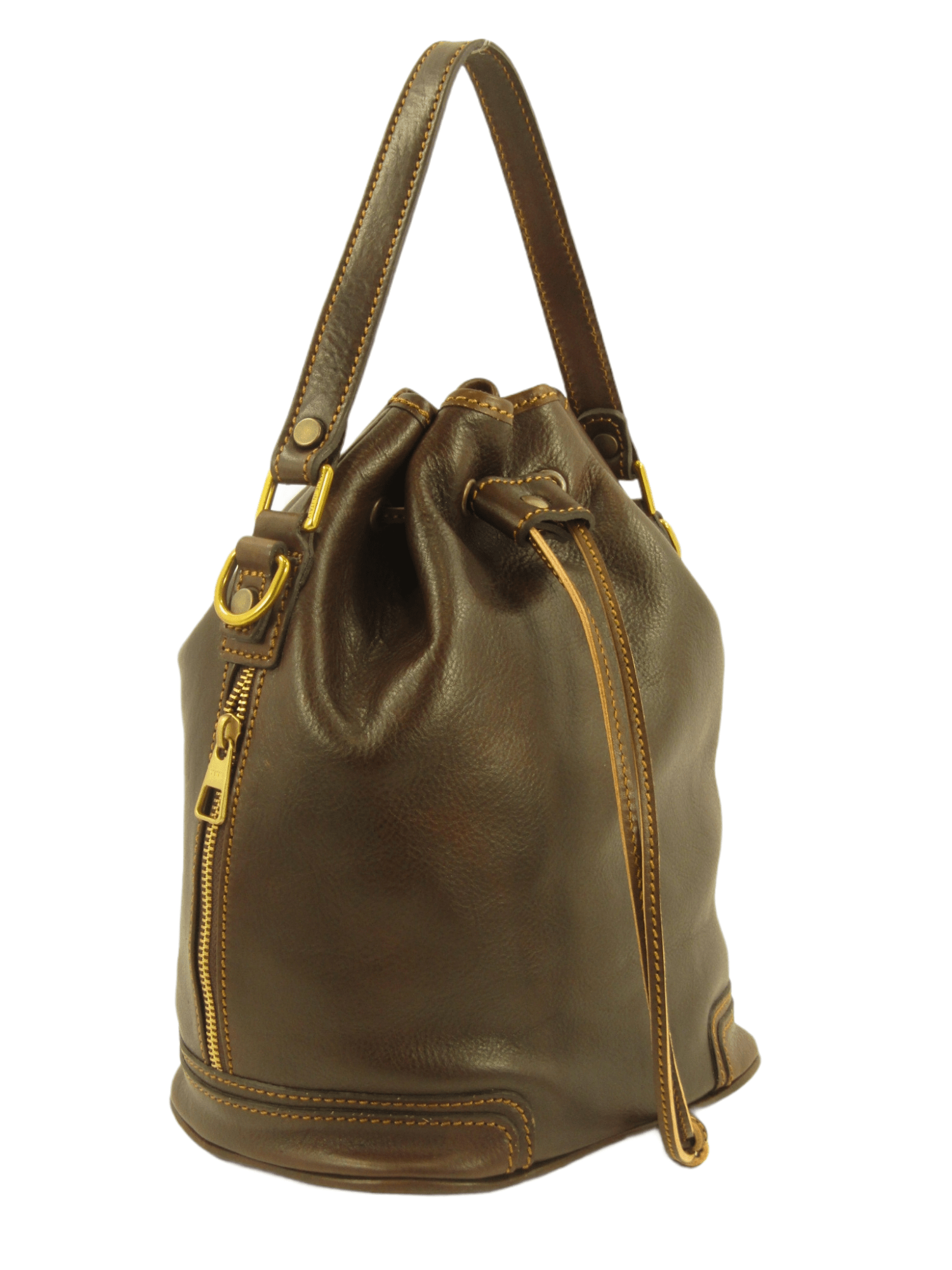 Secchiello in cuoio conciato al vegetale e tamponato a mano, chiusura con laccetto in pelle, borsa bella e comoda, costruita con pellami di pregio in maniera artigianale, accessorio che non teme il passare del tempo ne come linee ne come materiale e costruzione, tracolla in pelle regolabile e rimovibile, interno rivestito ed accessoriato, tasche esterne
