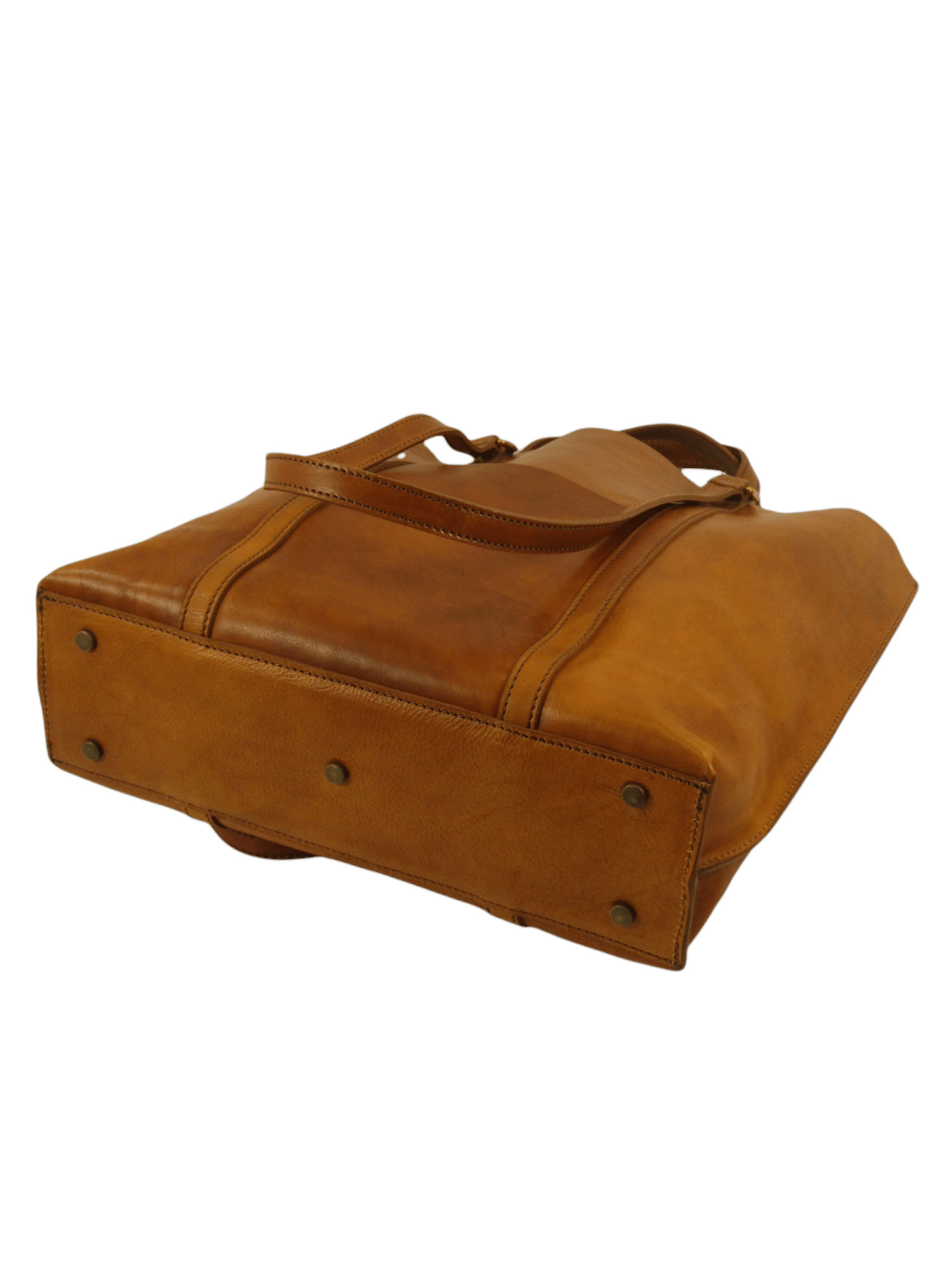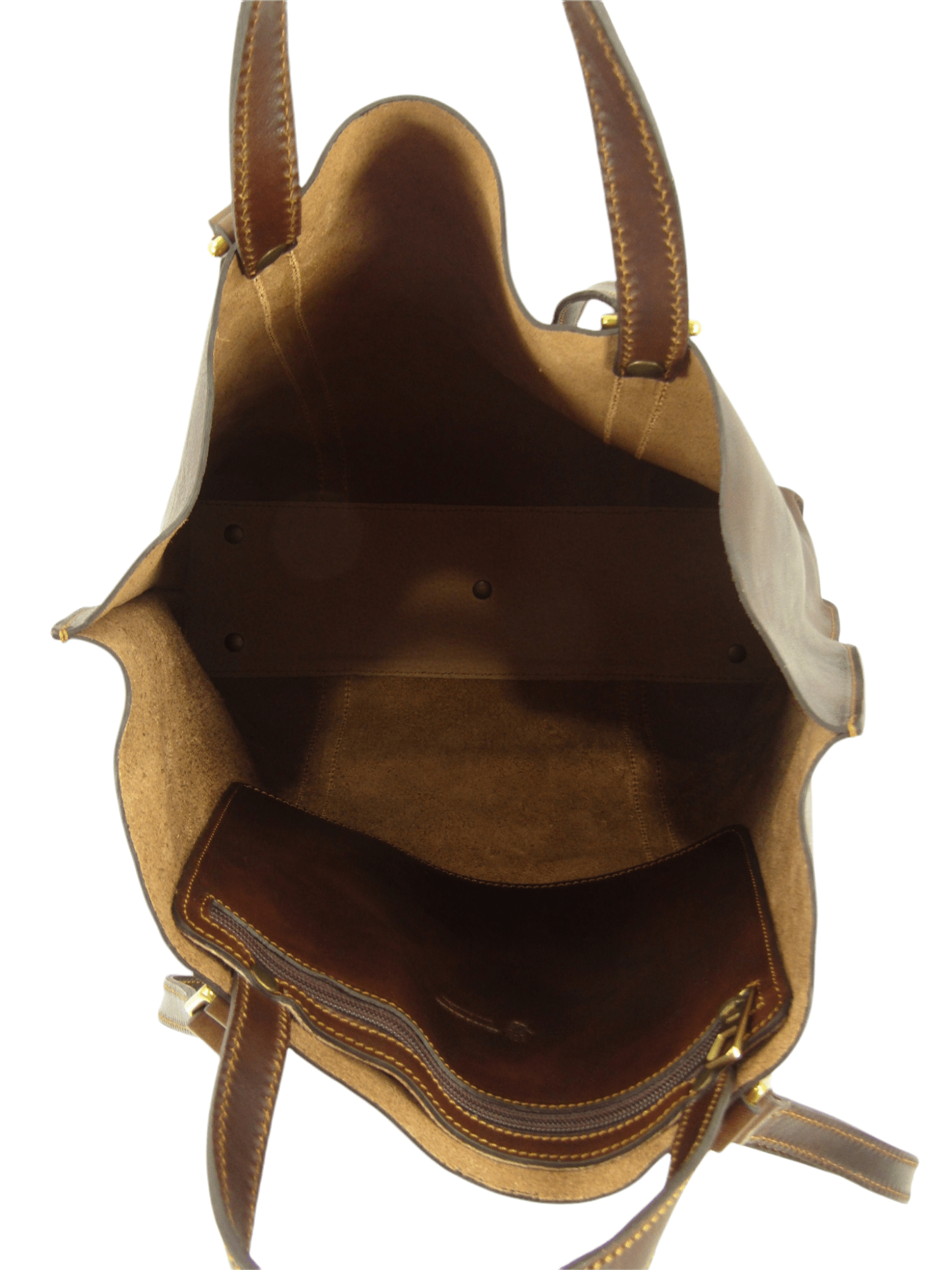 Shopper in cuoio primo fiore conciato al vegetale e tamponato a mano, sfoderata, con tasca interna in cuoio, modello dove la qualità della pella la fa da padrona, essenziale e di grande personalità, il doppio manico permette di portarla come si preferisce, costruita in maniera artigianale con pellami di alta qualità
