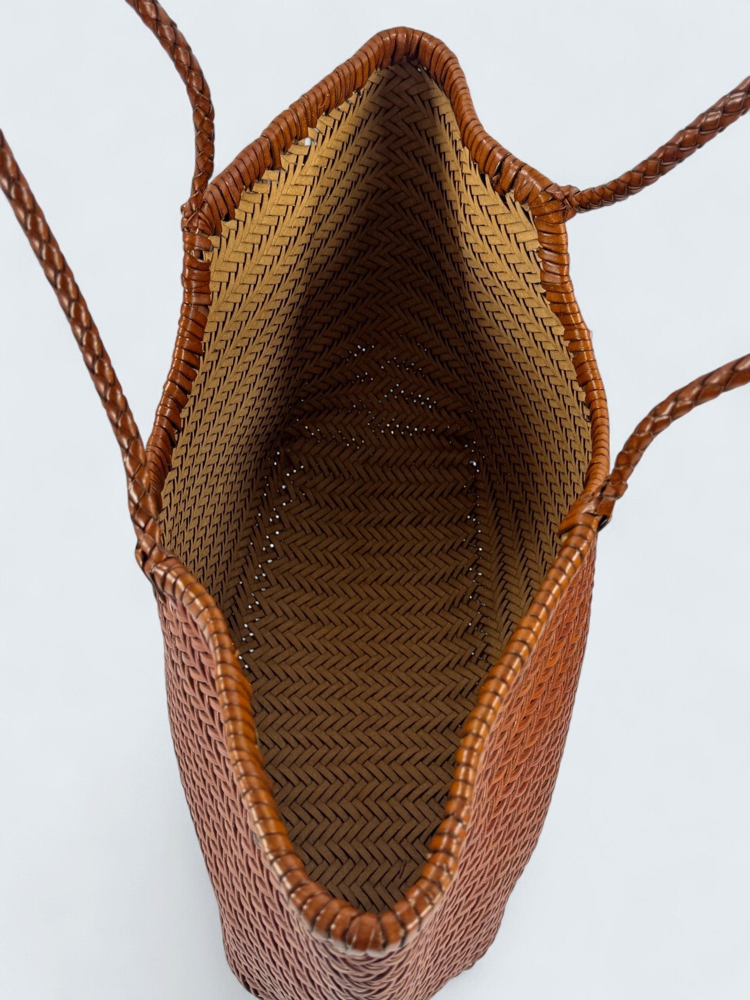 Questa shopper in pelle intrecciata a mano rappresenta l'eccellenza dell'artigianato italiano. Realizzata senza cuciture con pellami di altissima qualità, unisce design raffinato e funzionalità quotidiana.