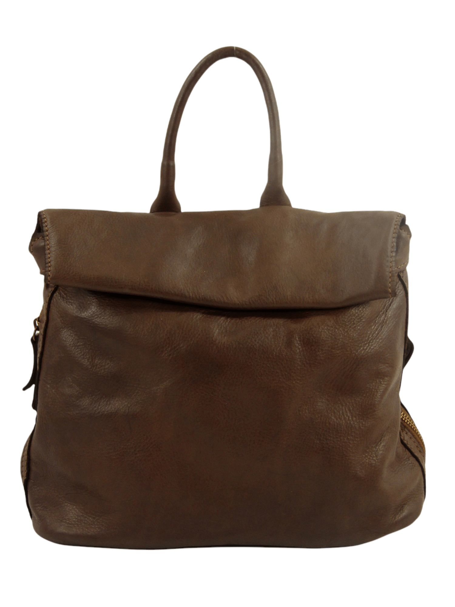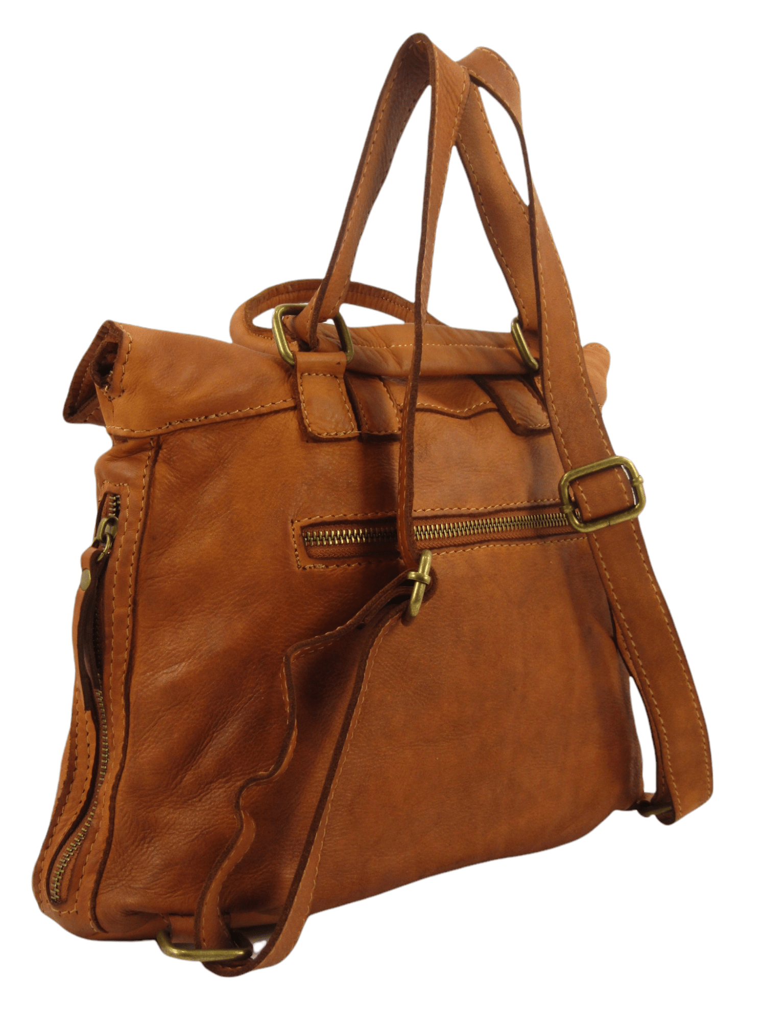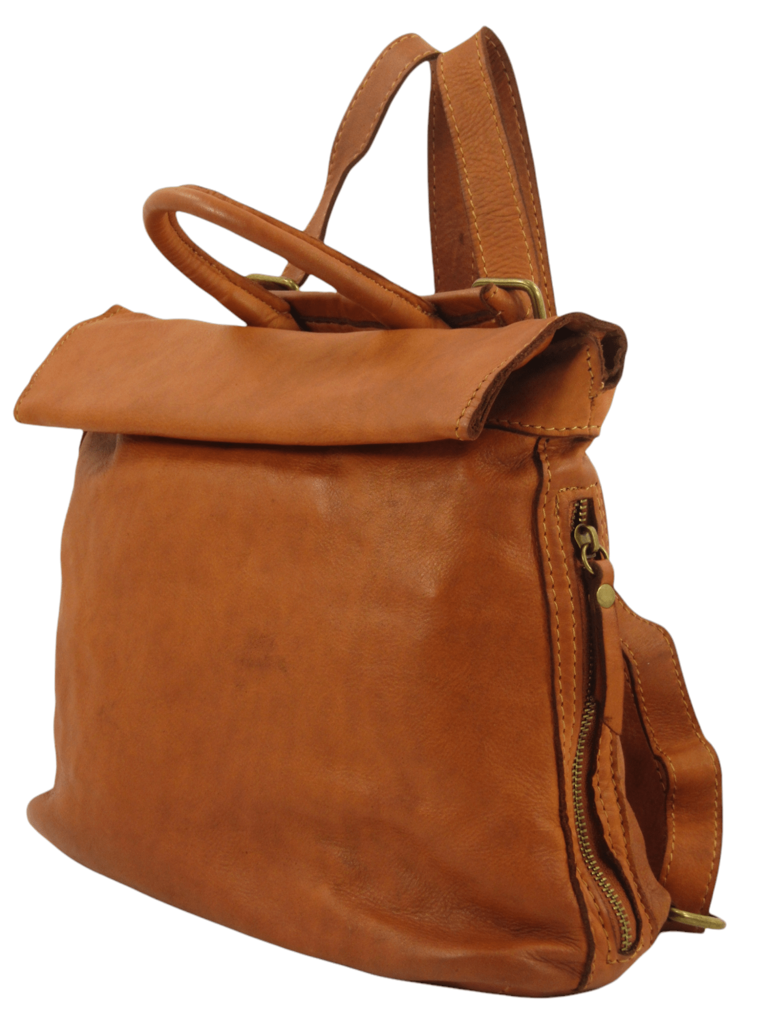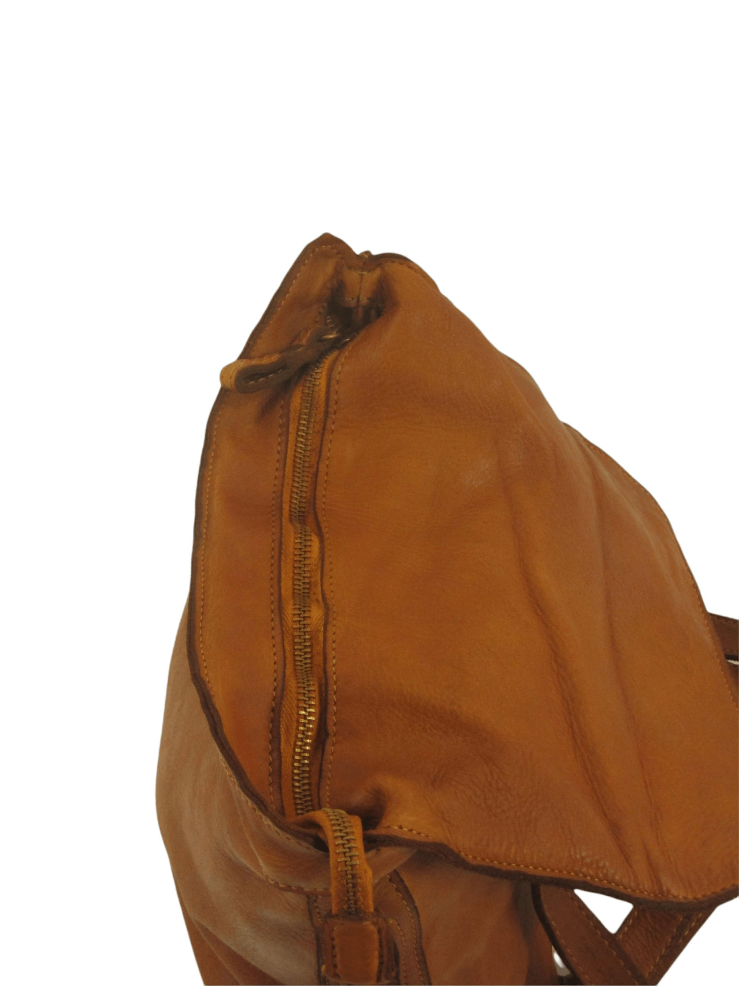 Zainetto reversibile in tracolla costruito in pelle morbida tinta in capo, zaino piccolo e ben organizzato, la trasformazione in tracolla è estremamente facile e veloce, zaino costruito in maniera artigianale con pellami di alta qualità