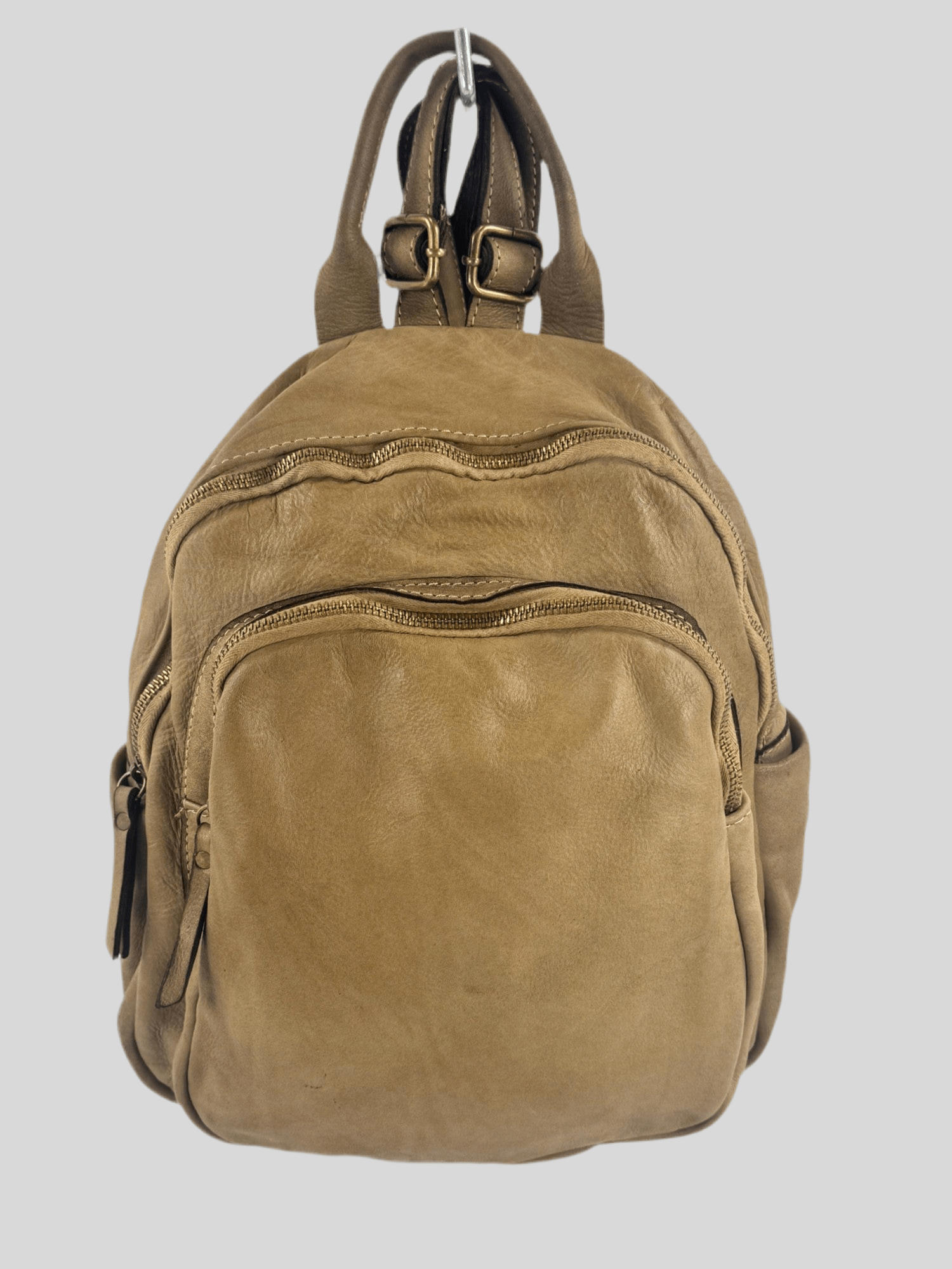 Zainetto in pelle morbida tinta in capo effetto vintage con tasca frontale -Mahzel