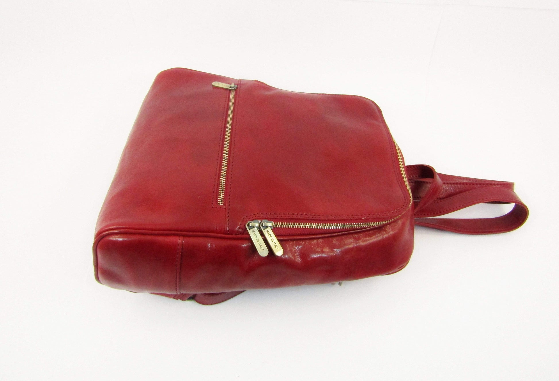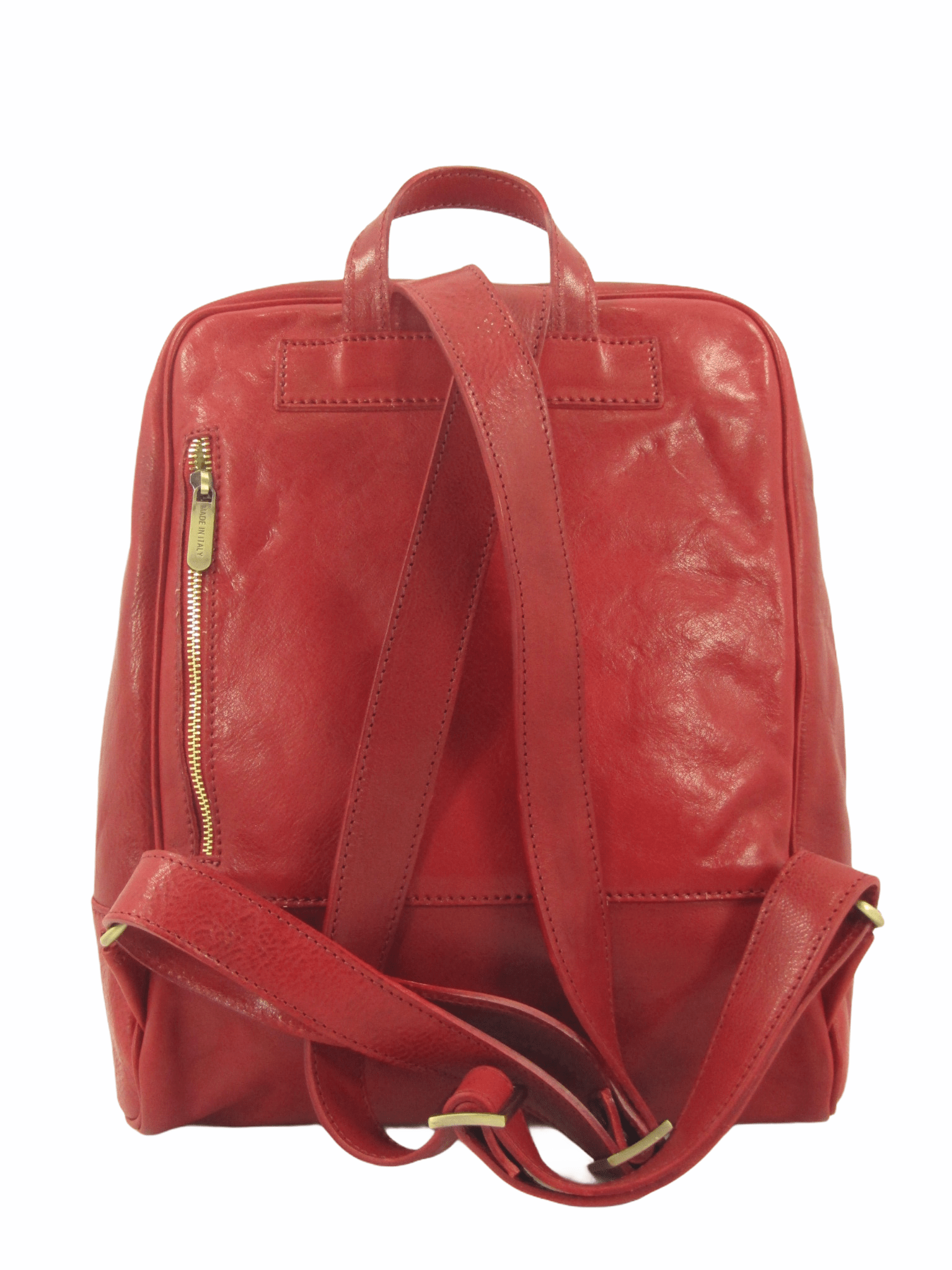 Zaino in cuoio pieno fiore conciato al vegetale e tamponato a mano, chiusura con zip a doppio cursore, interno rivestito accessoriato con tasche aperte porta, tasca grande aperta e tasca chiusa da zip, all'esterno sul frontale tasca chiusa da zip, sul retro tasca chiusa da zip, zaino compatto, contiene schermi da 14 pollici, adatto per il lavoro e per tutti i giorni