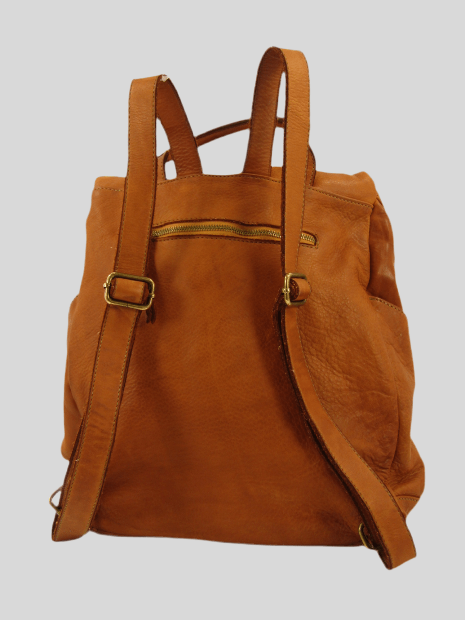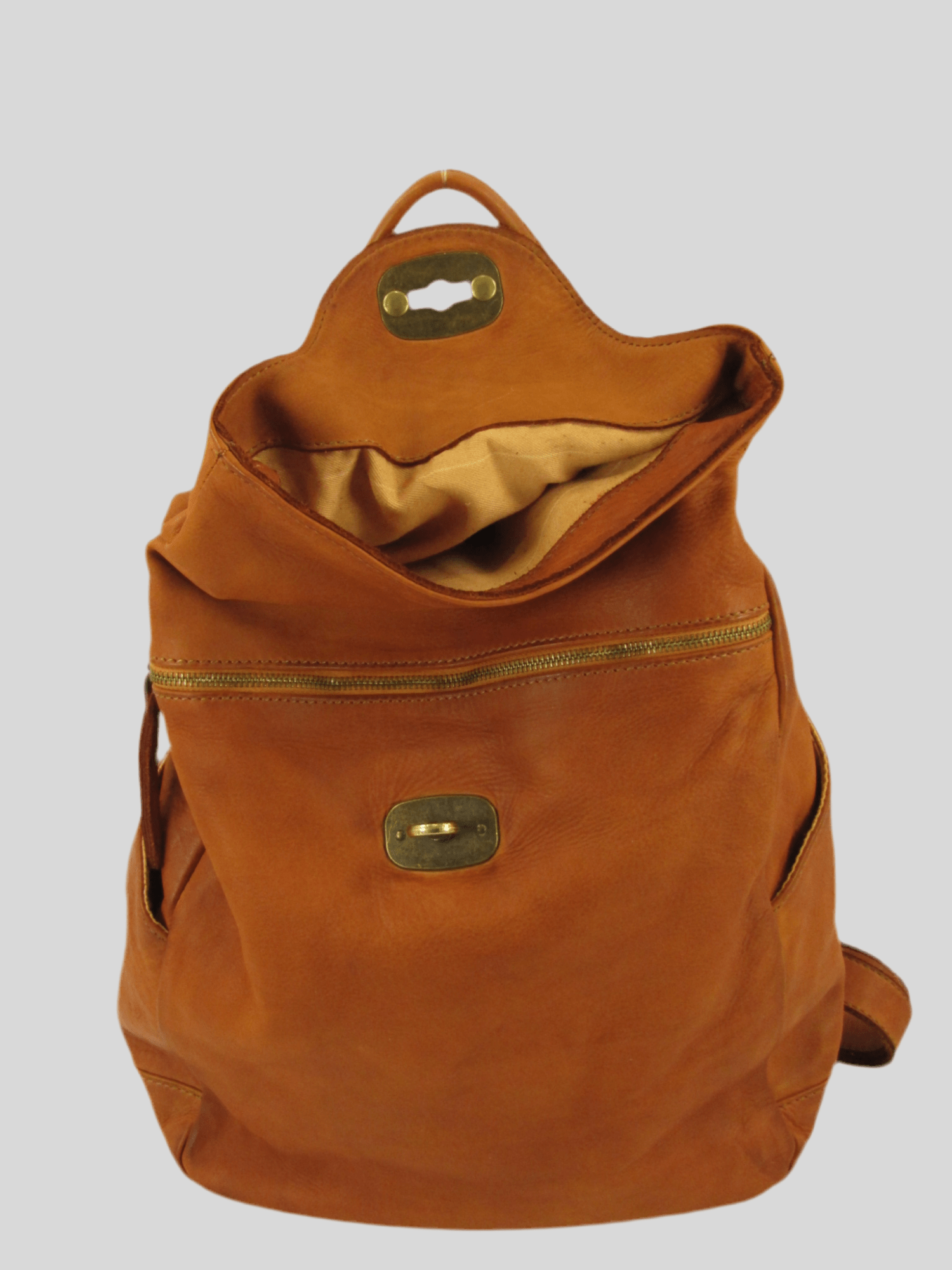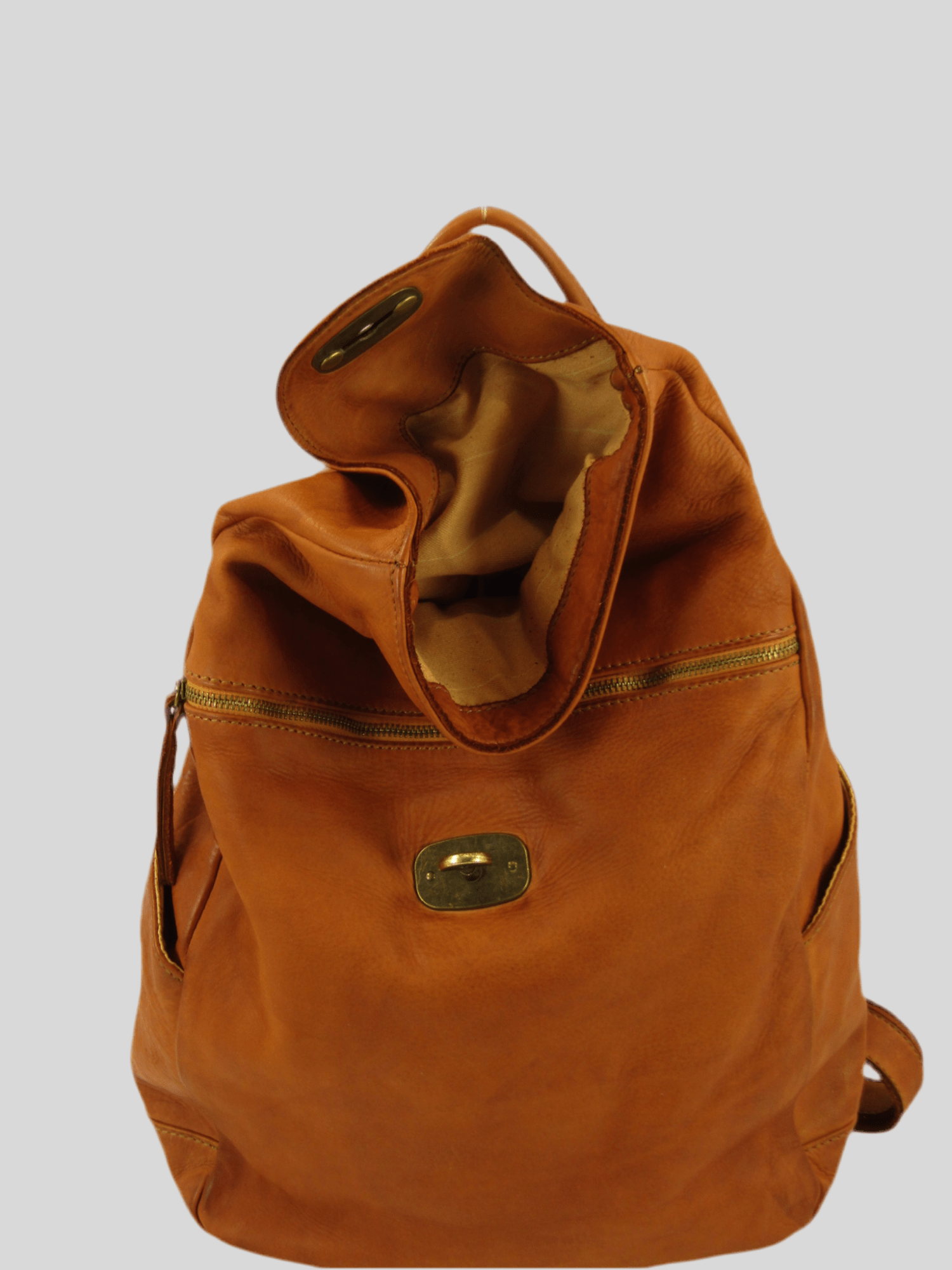 Zaino in vacchetta tinto in capo, chiusura con meccanismo ad incastro, interno rivestito ed accessoriato con tasca chiusa da zip e tasca di cortesia aperta, tracolle in pelle regolabili, tasca sul frontale e sul retro chiuse da zip, zainetto morbido e comodo, la tintura in capo e l alta qualità del pellame ne garantiscono un ottimo invecchiamento