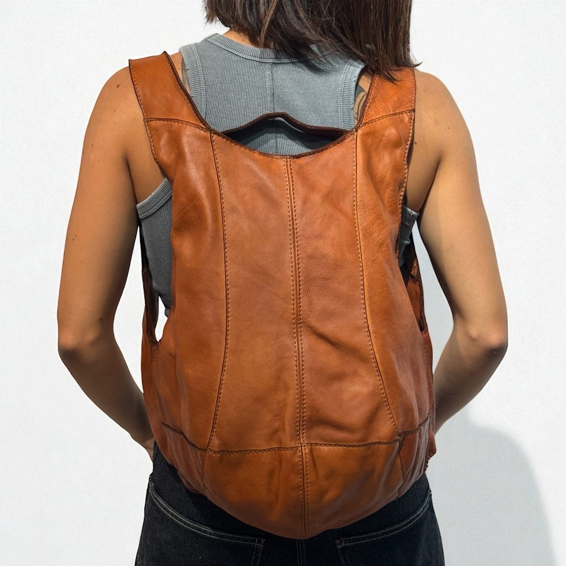 Zaino in pelle tinta in capo, chiusura con zip posta sul retro, interno sfoderato accessoriato con tasca chiusa da zip e tasca aperta, comodo, sicuro, morbido e di tendenza, costruito con pellami di alta qualità in maniera artigianale