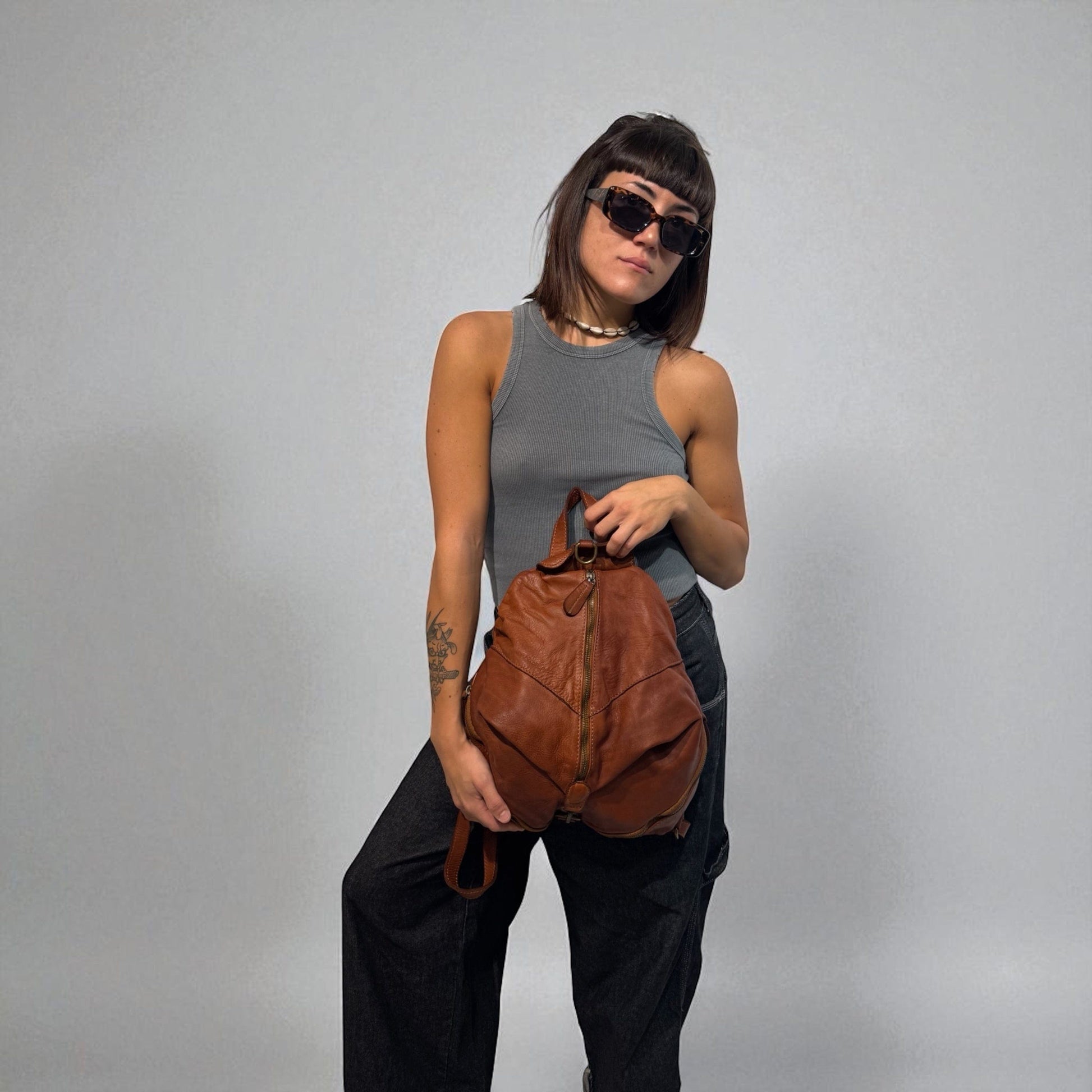 Zaino in pelle morbida tinto in capo con moschettone - Mahzel